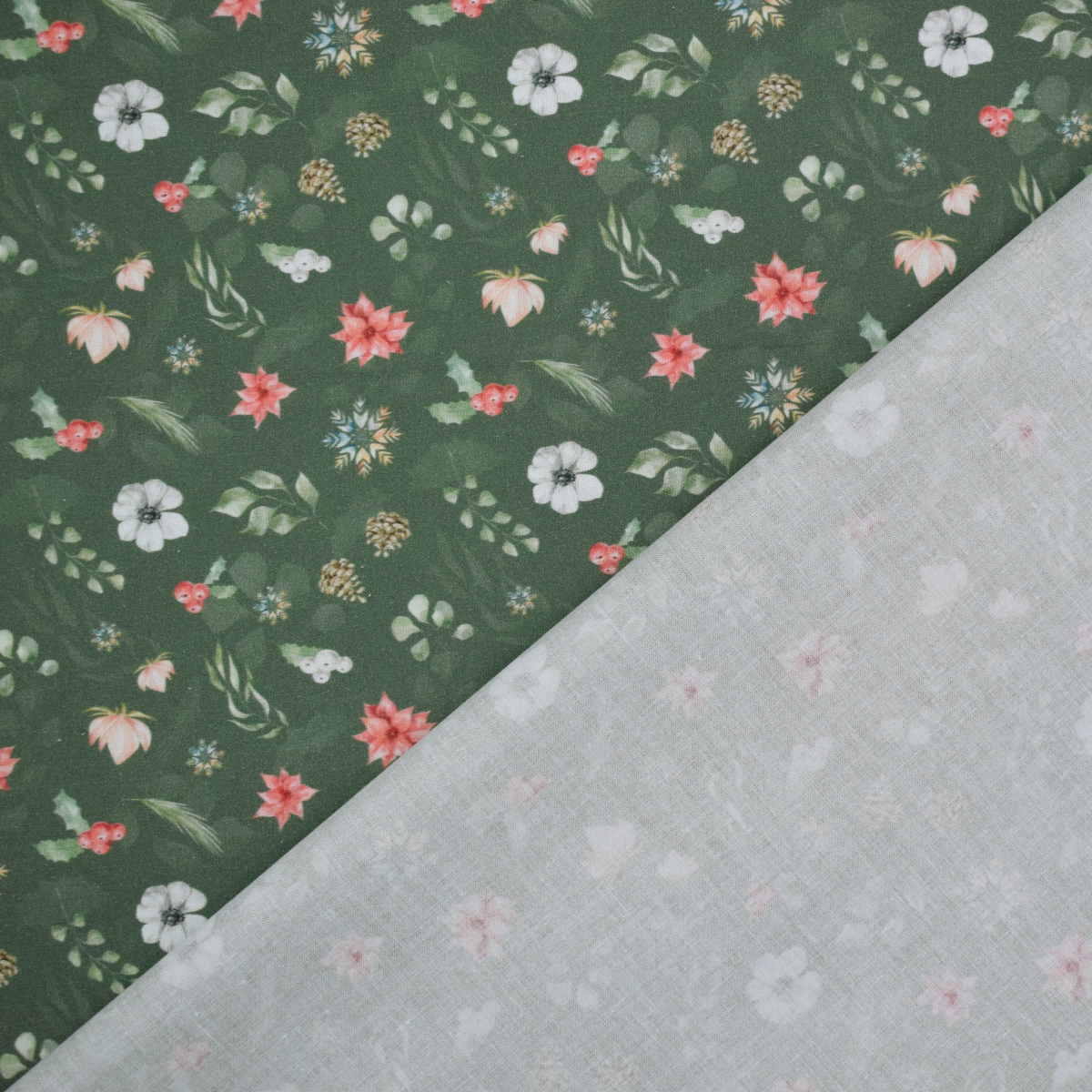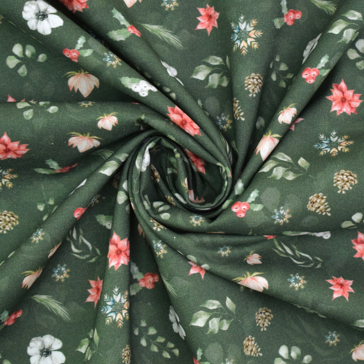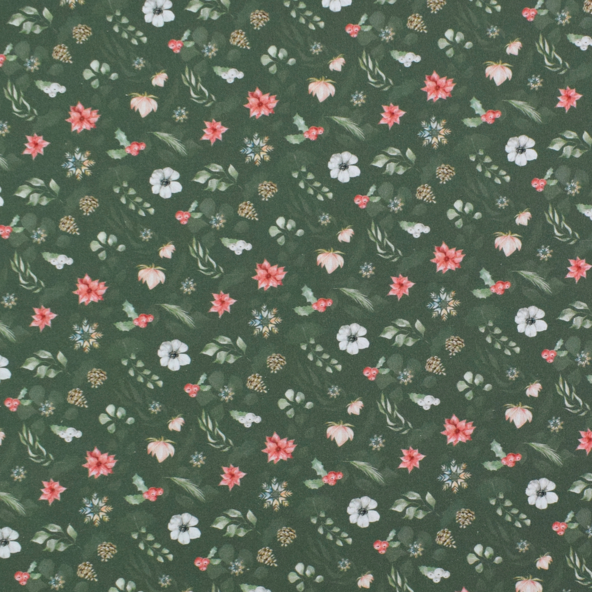 Baumwoll Popeline Winter Flowers, dunkelgrün Art.Nr.: POPPWS000-7004