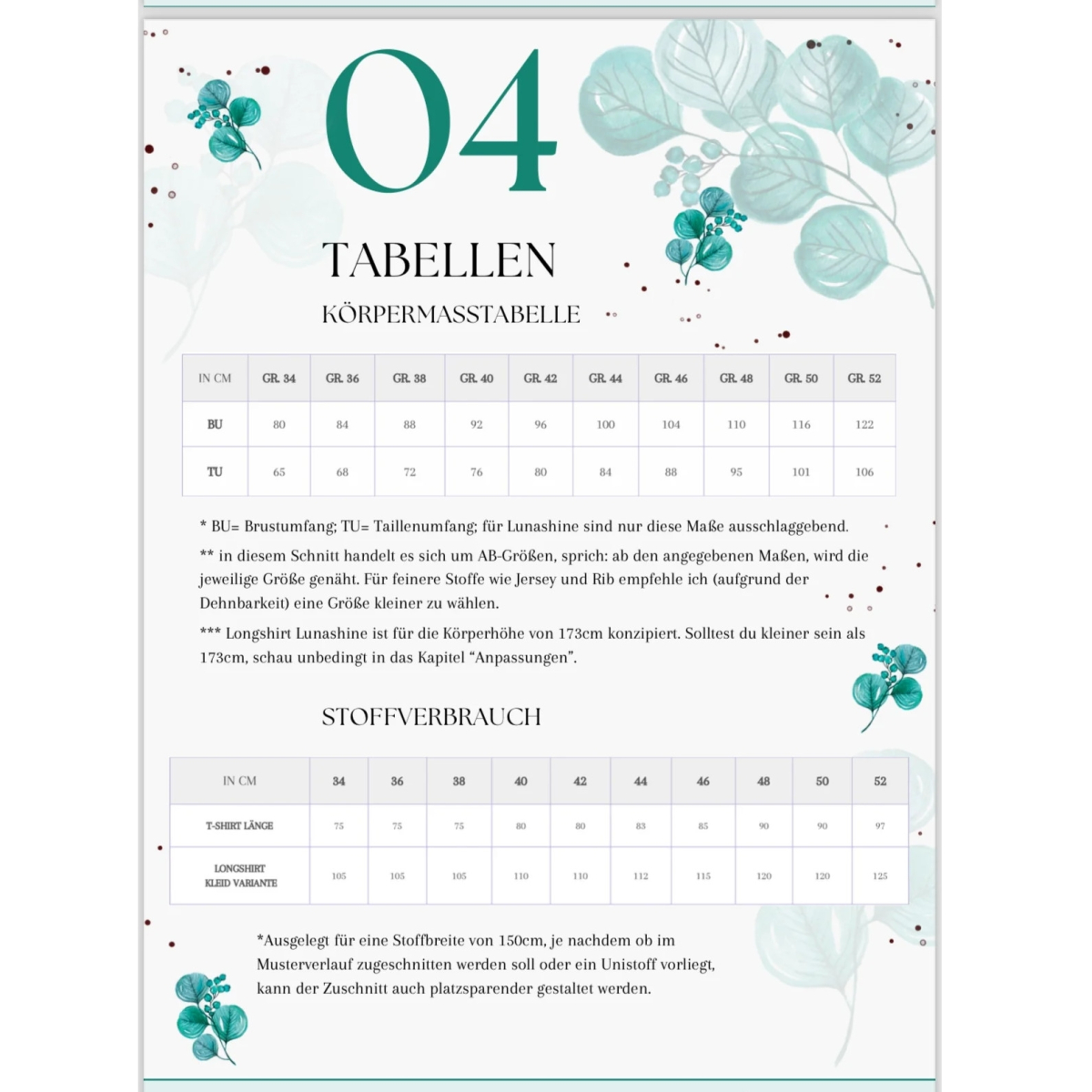 …kurz und knapp: Longshirt Lunashine gehört in jeden Kleiderschrank! Es ist das Schnittmuster für alle Ladys, die es lieben lässig & dennoch feminin durch den Alltag zu gehen. Lunashine kann in der langen Variante als T-Shirt Kleid getragen werden oder zum Longshirt vernäht werden. Der Beleg rundet wortwörtlich das gesamte Longshirt ab und bietet durch diese Art des Saumes optimale Bewegungsfreiheit!
