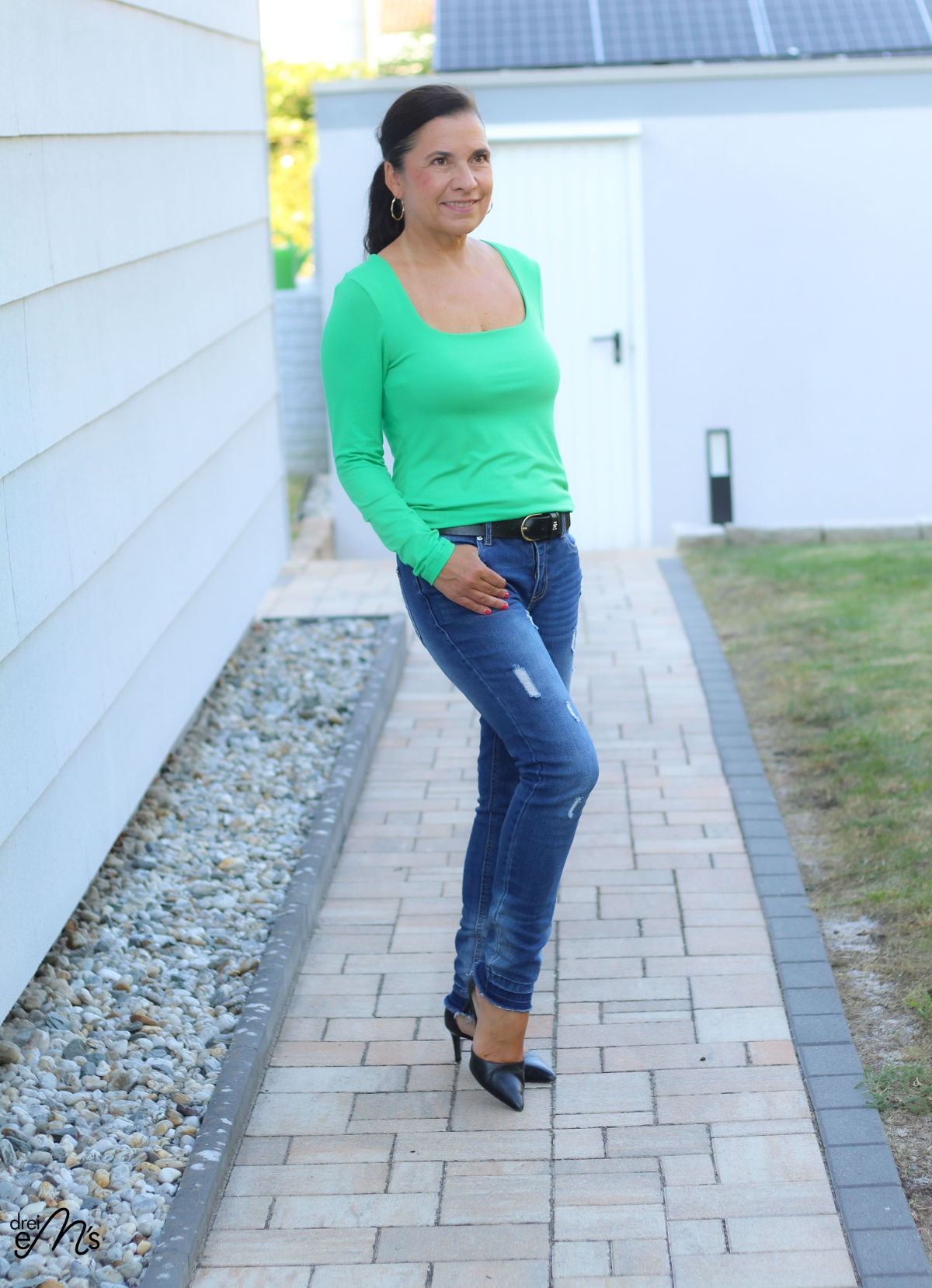 - Eckiger Ausschnitt – wahlweise hoch oder tief