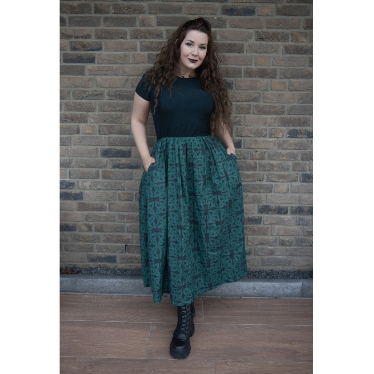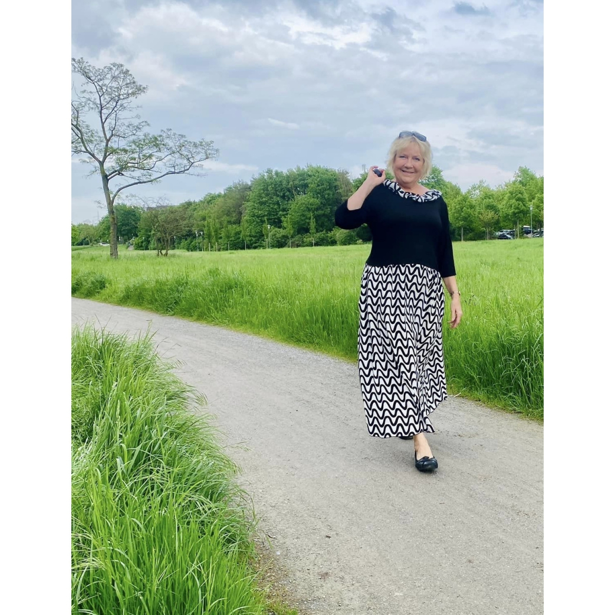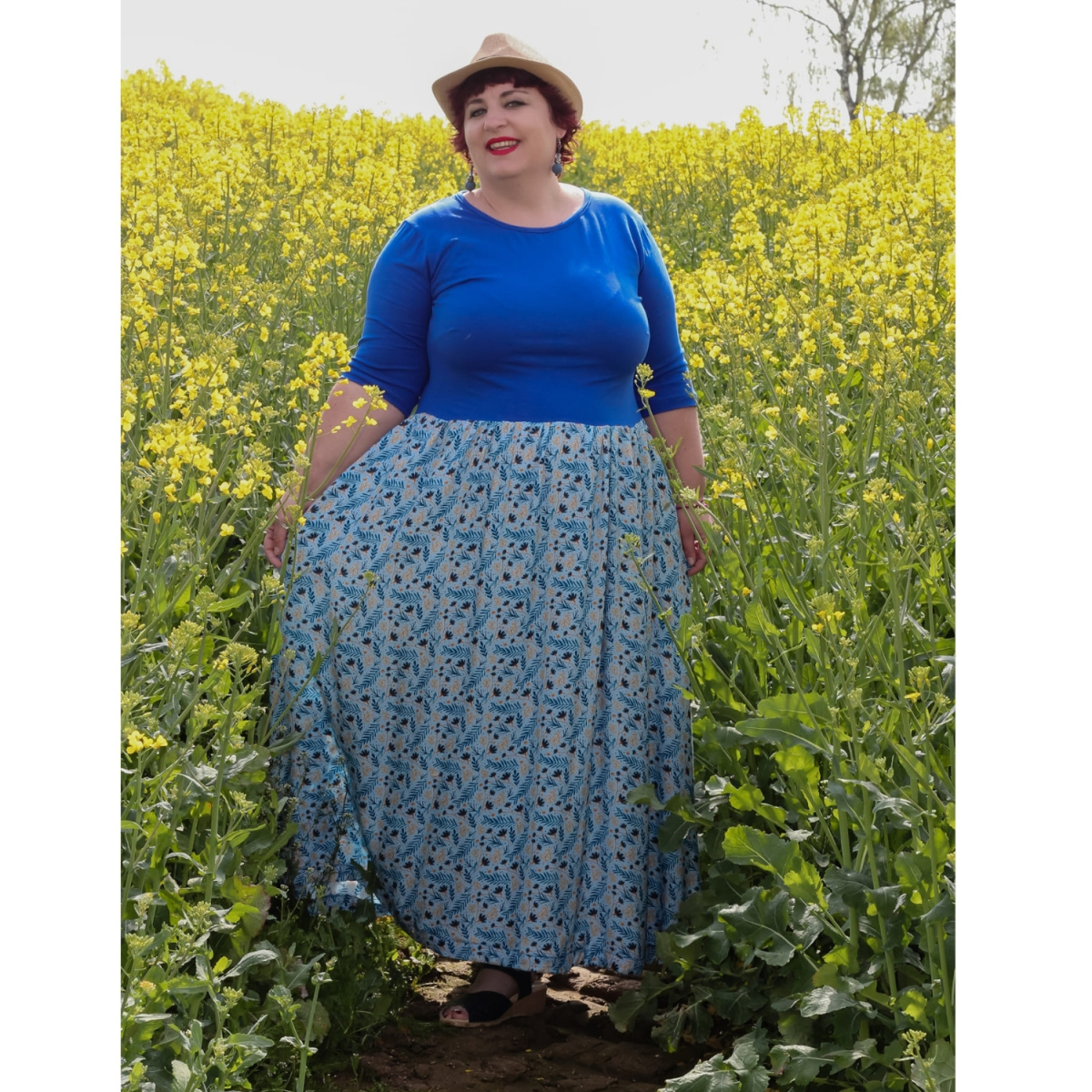 Suzana ist ein luftiges Kleid mit figurnahem Oberteil und locker schwingendem Rock. Das Oberteil wird aus dehnbaren Stoffen genäht, der Rock aus Webware. Das Schnittmuster enthält Taschen. Da der Rock gekräuselt an das Oberteil genäht wird, können (falls nötig) auch verschiedene Größen kombiniert werden. Das Schnittmuster enthält zwei Oberteilvarianten: ein ärmelloses Top und ein Oberteil mit Brustabnähern und verschiedenen Ärmellängen.
