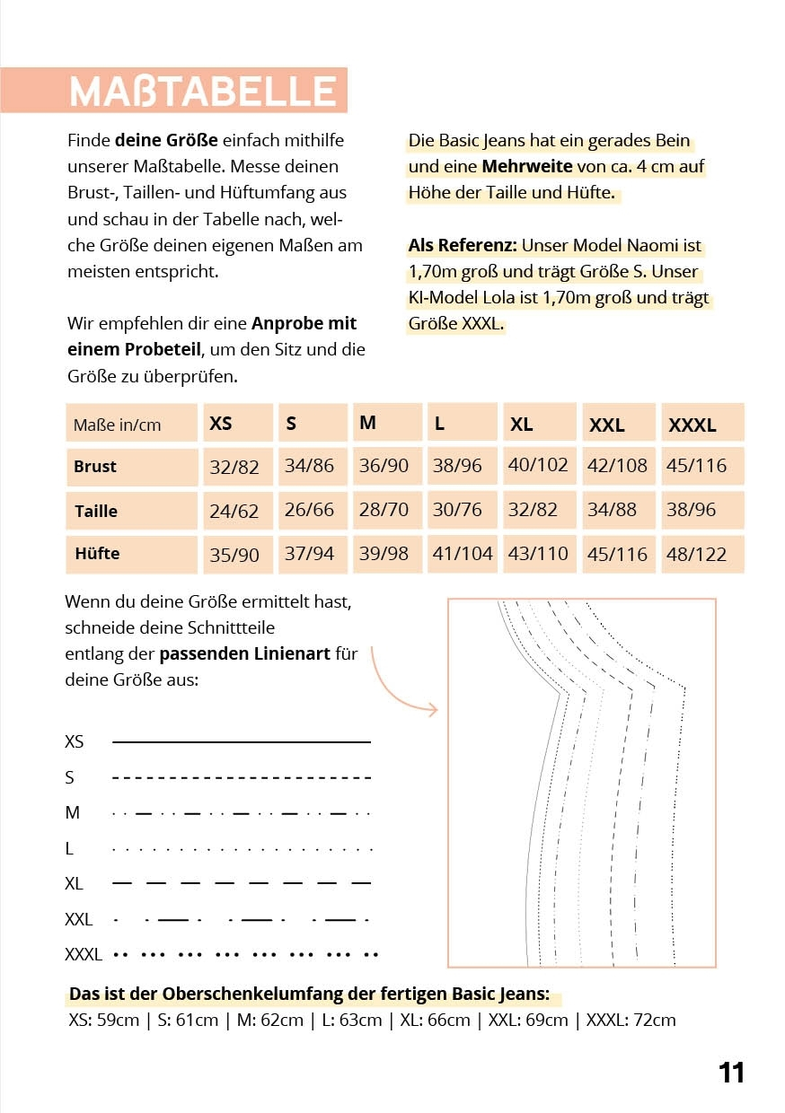 • Jeanshose Schnittmuster in Deutsch und Englisch in den Größen XS-XXXL