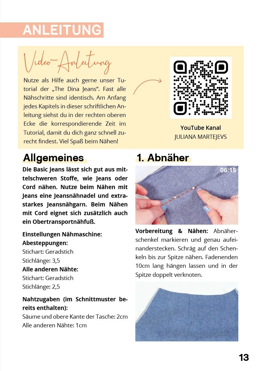 • schriftliche, bebilderte Nähanleitung in Deutsch, Englisch und Französisch
