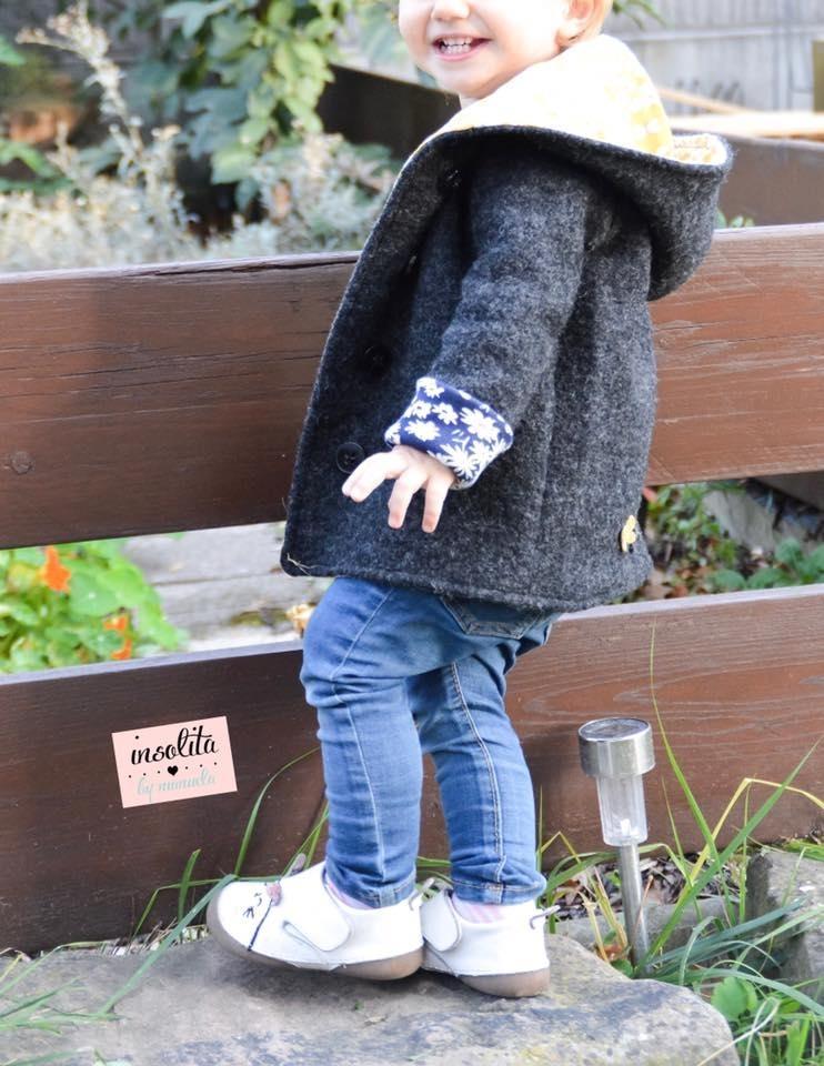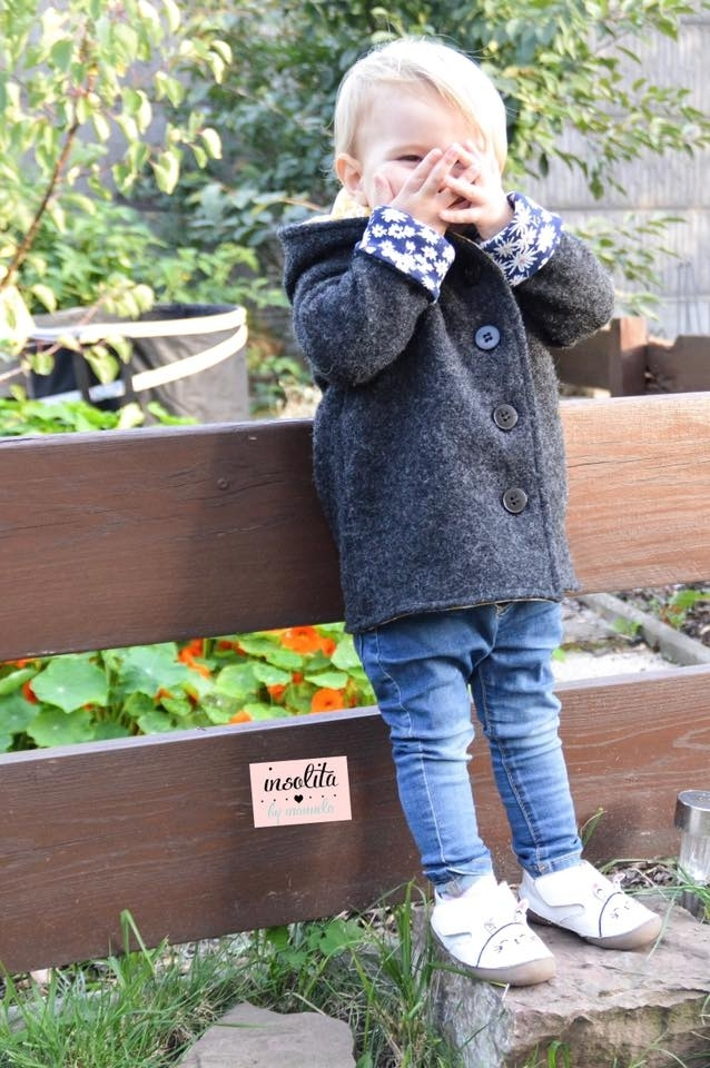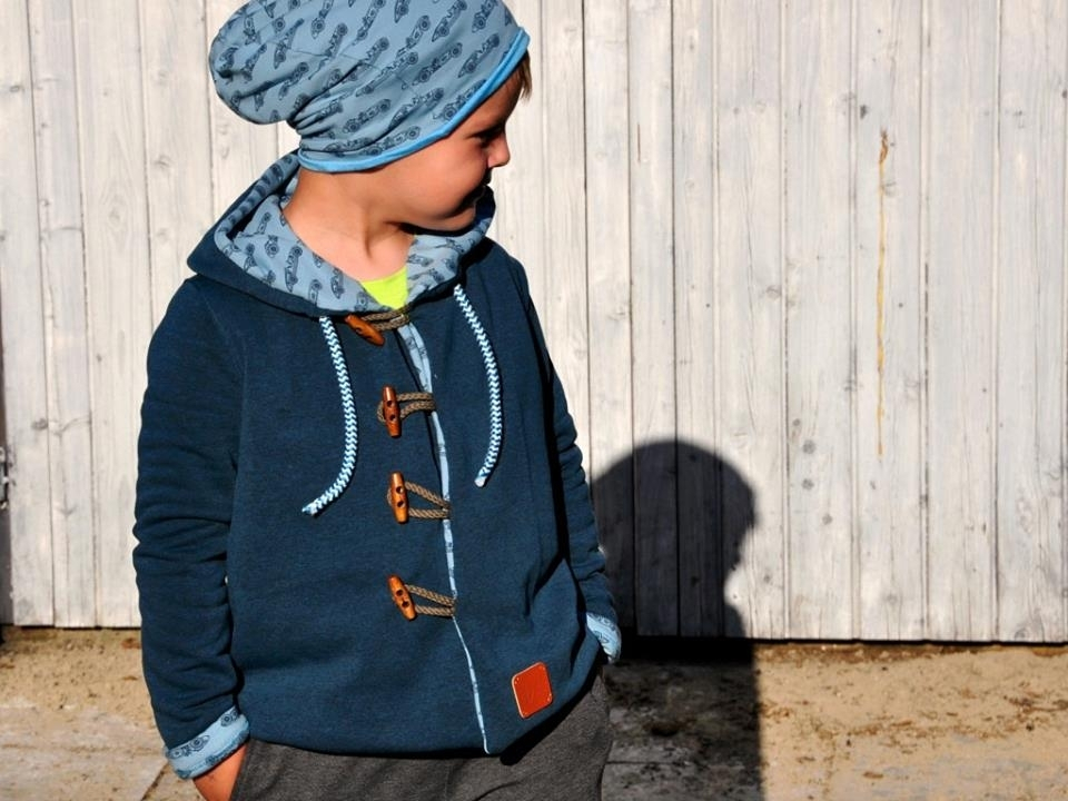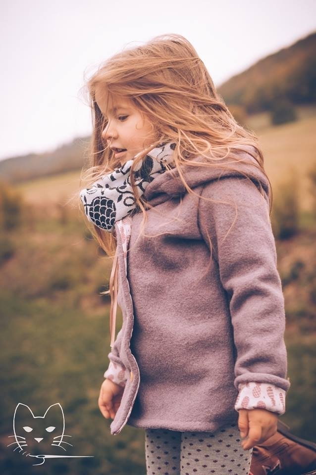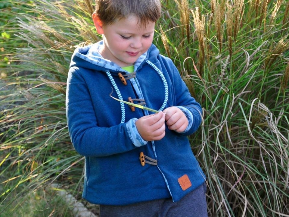 Jovem ist eine schöne, ungefütterte Übergangsjacke für Mädchen und Jungs. Sie hat eine große Kapuze, die Vorderteile überlappen und können mit Knöpfen, Druckknöpfen oder Knebelverschlüssen geschlossen werden. Die Ärmel sind lang und schmal geschnitten und werden unten am Saum hochgekrempelt, so dass die Jacke mitwachsen kann. Jovem wird über langärmelige Jerseyshirts oder dünne Pullover getragen und ist lang genug, um den unteren Rücken warm zu halten.
