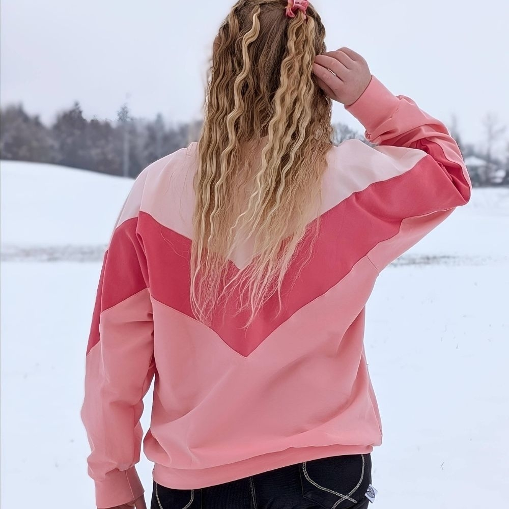 Der lässige Colourblocking-Sweater Neira ist dreiteilig und oversize geschnitten. Er besticht durch seine einzigartige Teilung und eignet sich hervorragend als kuscheliger Begleiter für die kühleren Stunden. Die Ärmel sowie der Bund können wahlweise mit Gummizug im Saum oder mit Bündchen aus Bündchenware genäht werden.