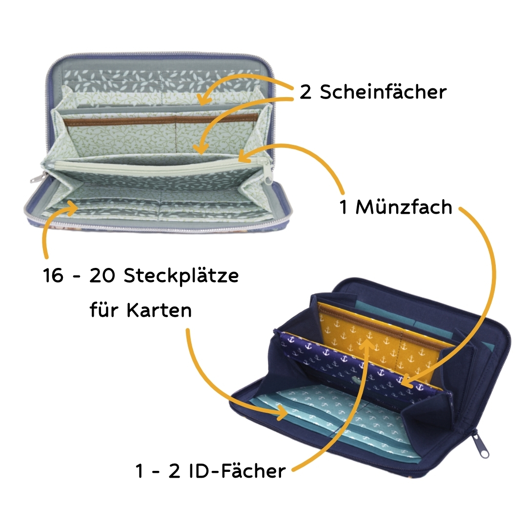 Ebook zum Nähen der Geldbörse Stella Big, die große Schwester der Mini Geldbörse Stella.
