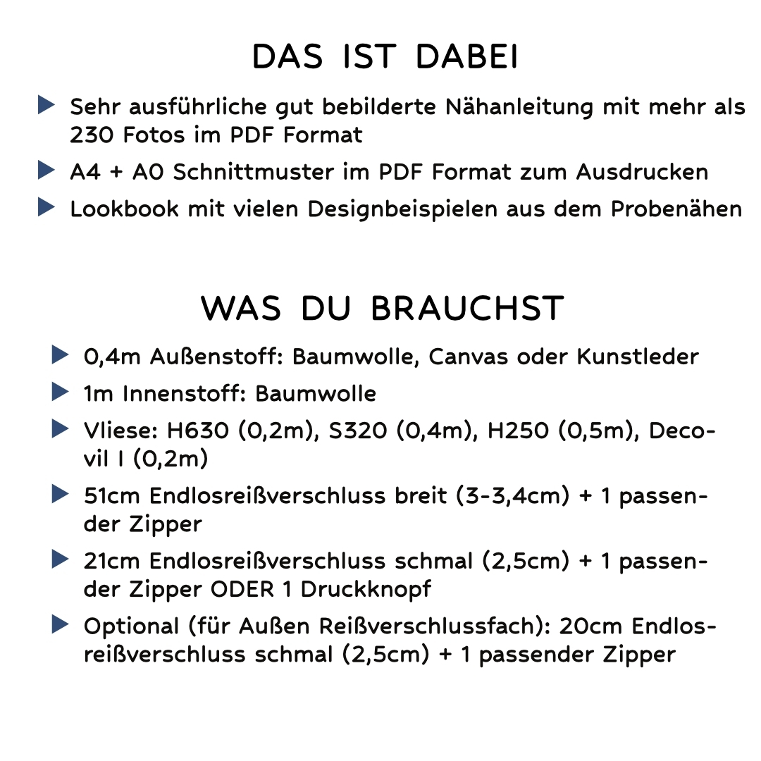- Sehr ausführliche gut bebilderte Nähanleitung im PDF Format