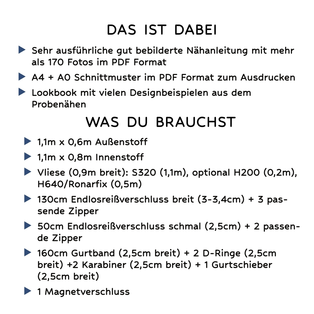 - Sehr ausführliche gut bebilderte Nähanleitung im PDF Format