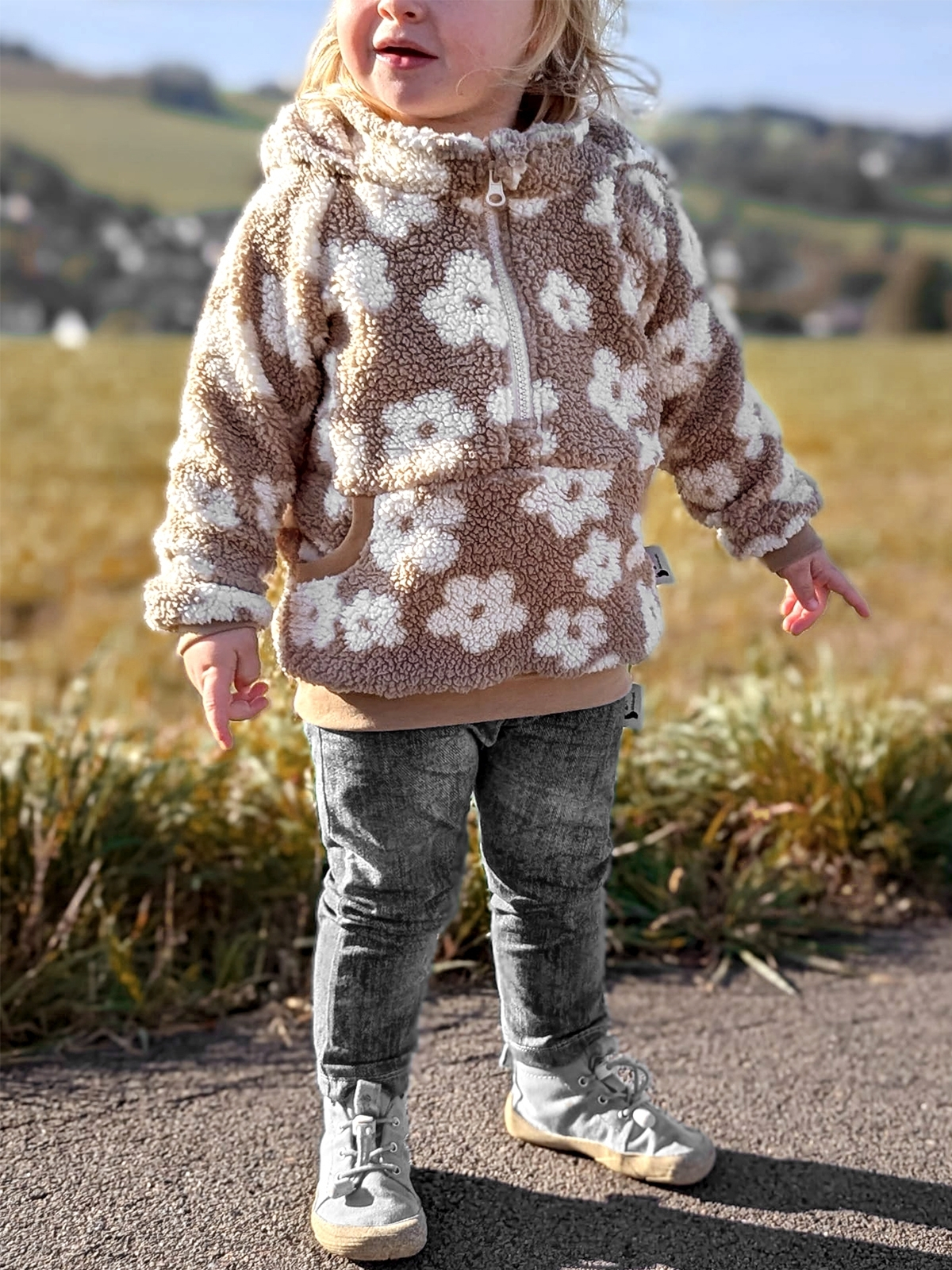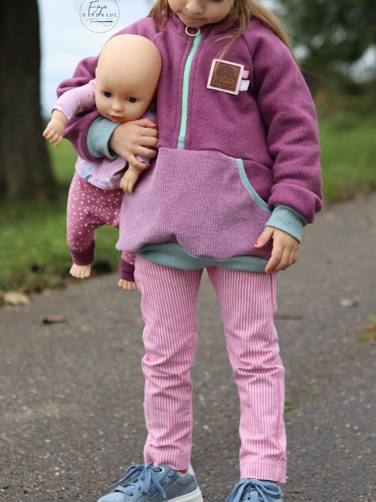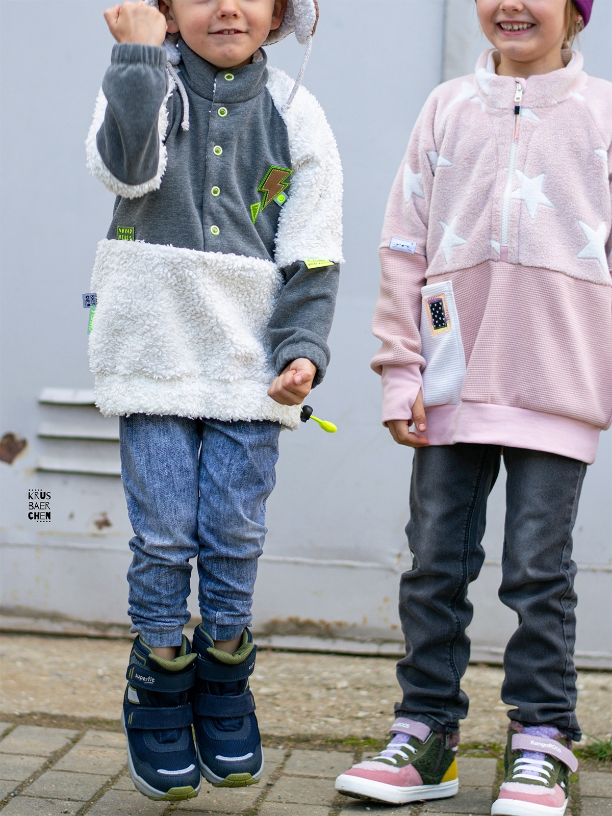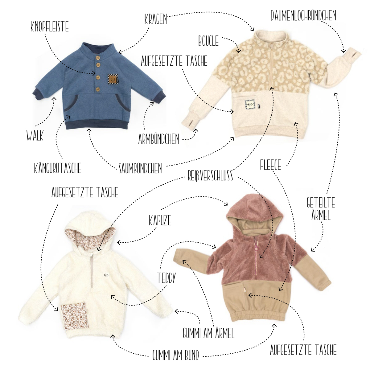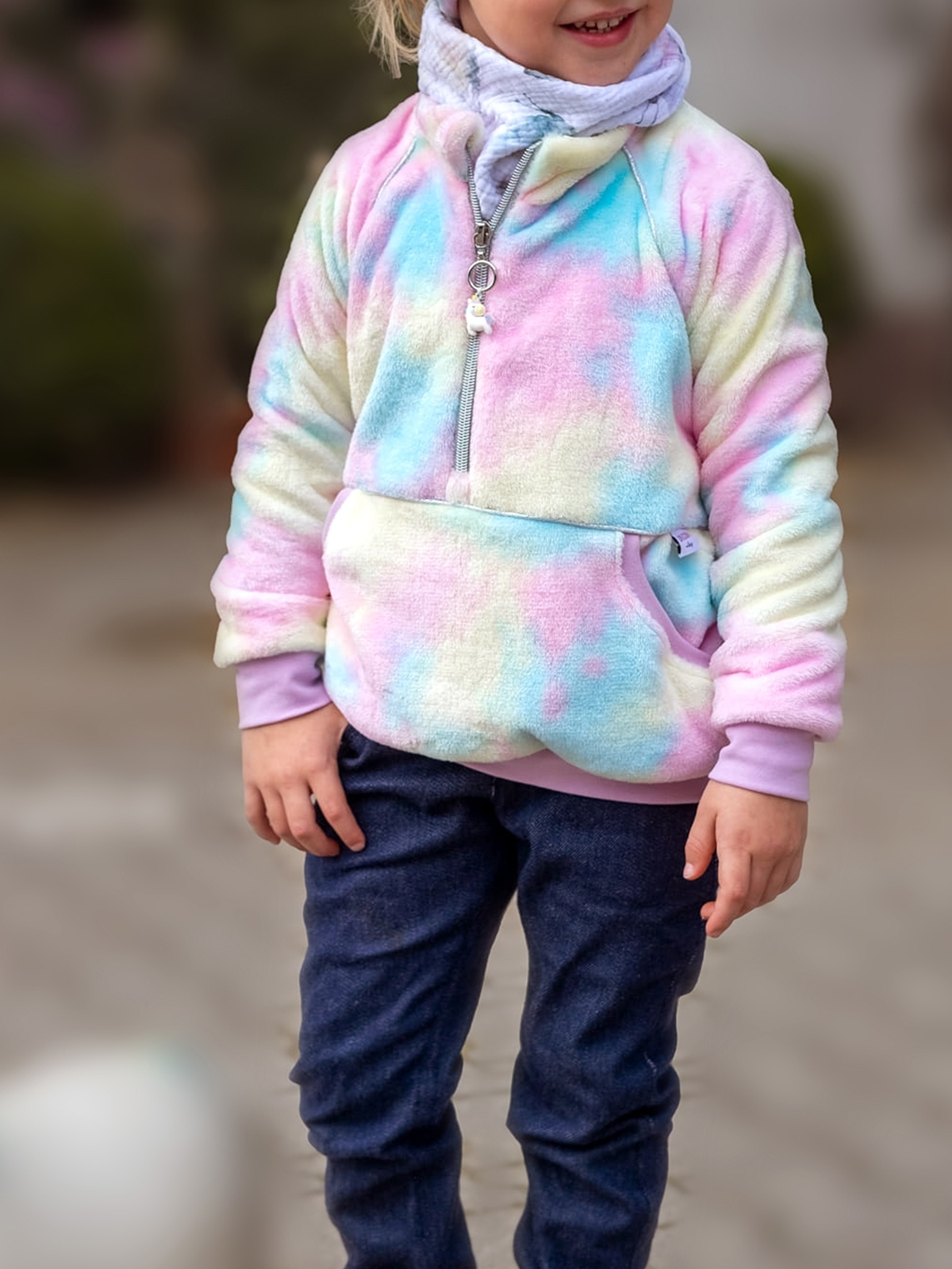 Der Kuscheltroyer ist für Jungs und Mädchen gleichermaßen geeignet. Du kannst ihn mit Reißverschluss oder Knopfleiste, mit optionaler Kapuze und verschiedenen Taschenvarianten nähen. Zum Drüberziehen über Pullover und Co. ist der Kuscheltroyer ein super Begleiter für die kalten Tage. Die Anleitung ist für AnfängerInnen geeignet.