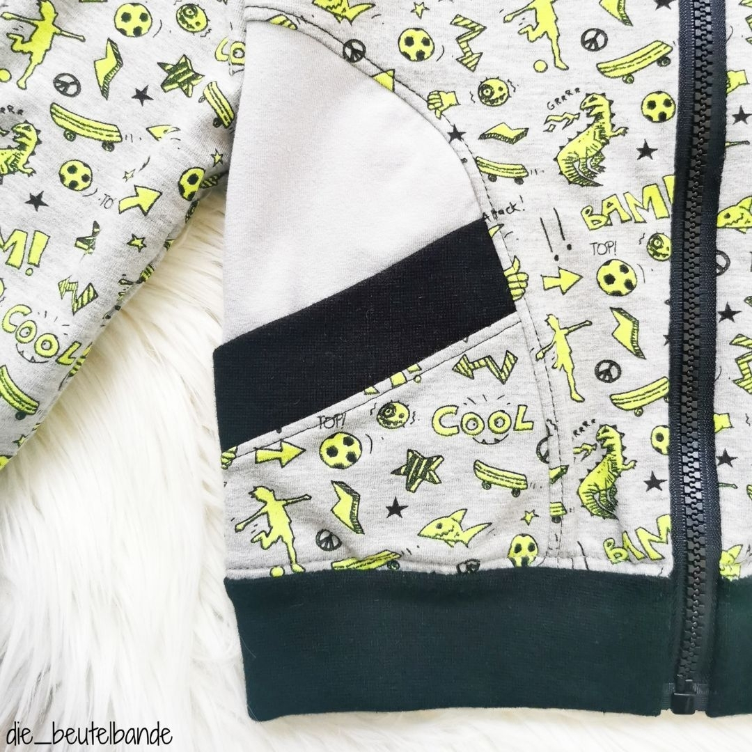 Mit dem Schnittmuster Jenni + Mike nähst Du eine coole Jacke im „College“-Style bzw. Baseballjacke für Kinder. Die Jacke wird in diesem Ebook nicht abgefüttert. Möchtest Du die Jacke abfüttern, findest Du ein kostenloses >>Add Ondazu. Die Jacke kann einmal mit einem normalen Saum genäht werden oder mit einem Saumbündchen an der Taille, was für einen noch cooleren Touch sorgt.