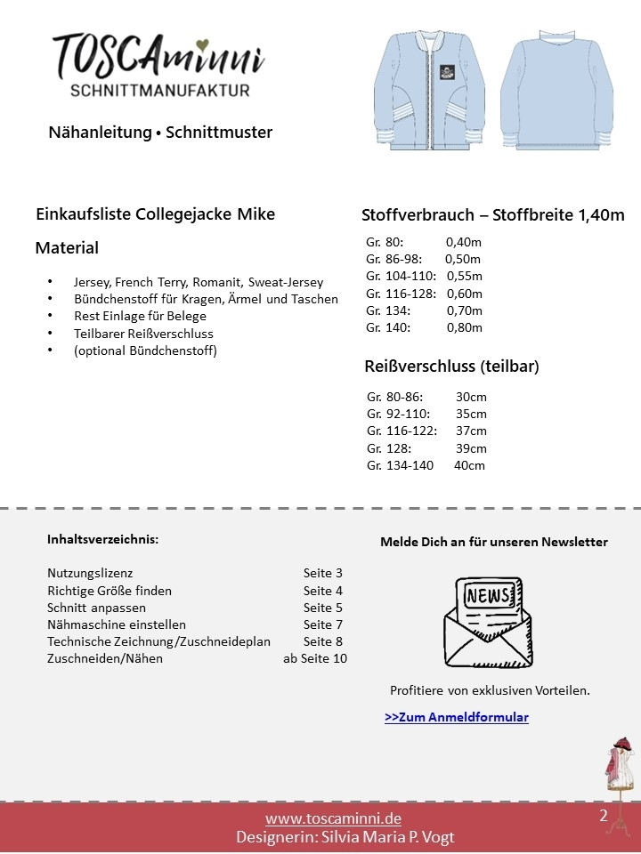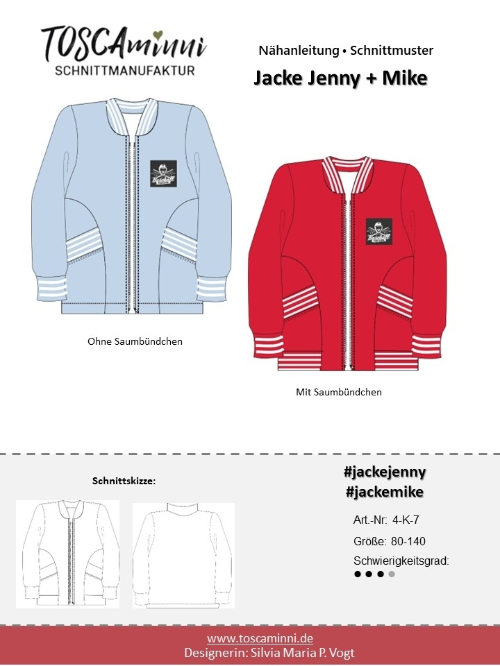 E-Book TOSCAminni Schnittmanufaktur Collegejacke Jenni + Mike Kids Art.Nr.: TOMI-88