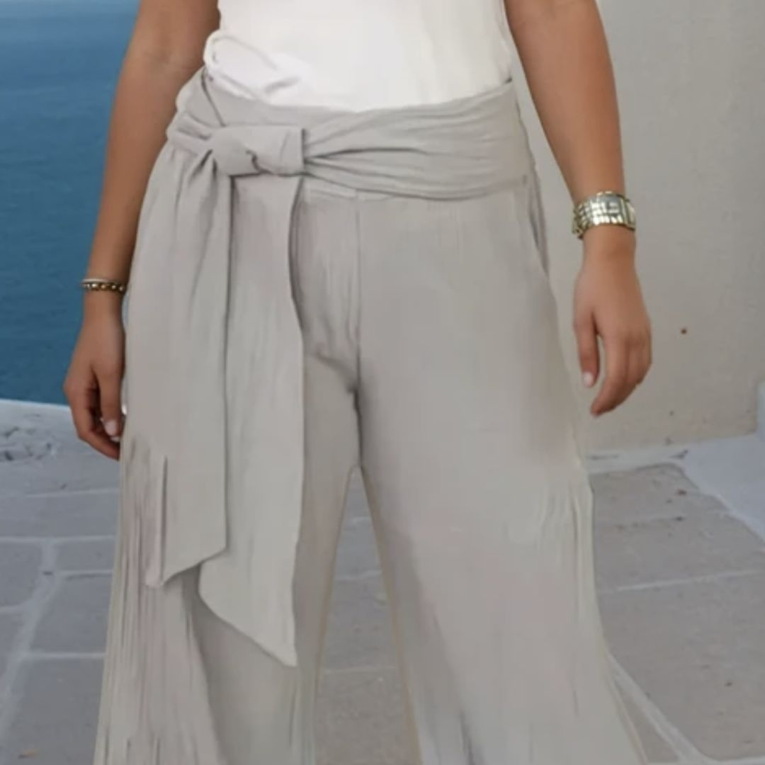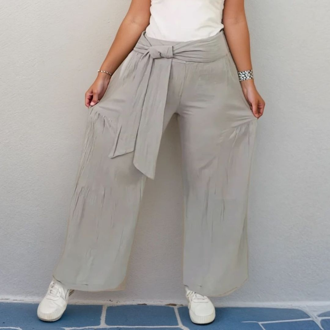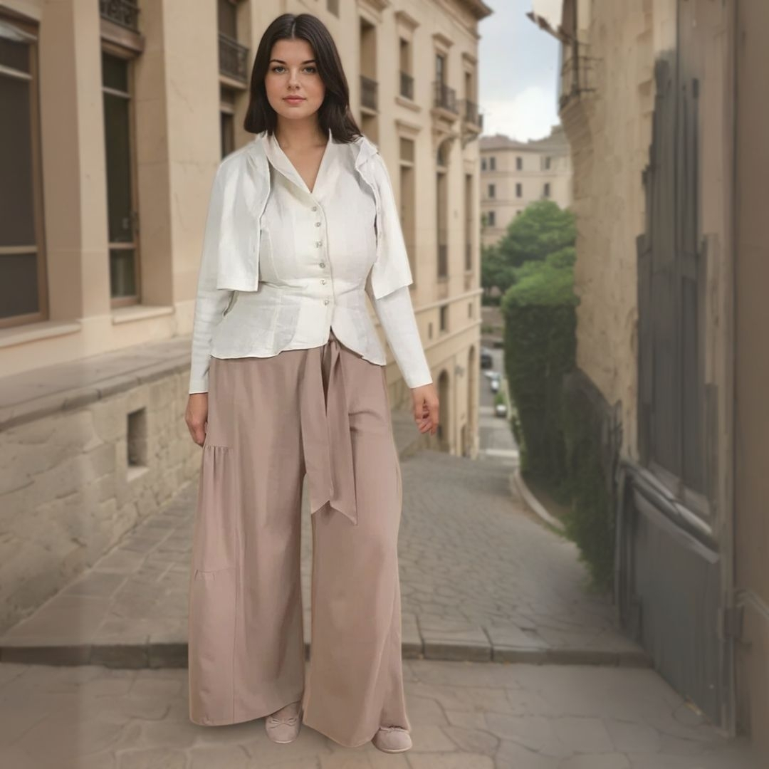 Mit dem Schnittmuster für die Musselinhose Sonja nähst Du Dir eine lässige Hose im Palazzostil. Besonderer Hingucker sind die gerafften Seitenteile- ein breiter Stoffgürtel sorgt für die nötige Eleganz.