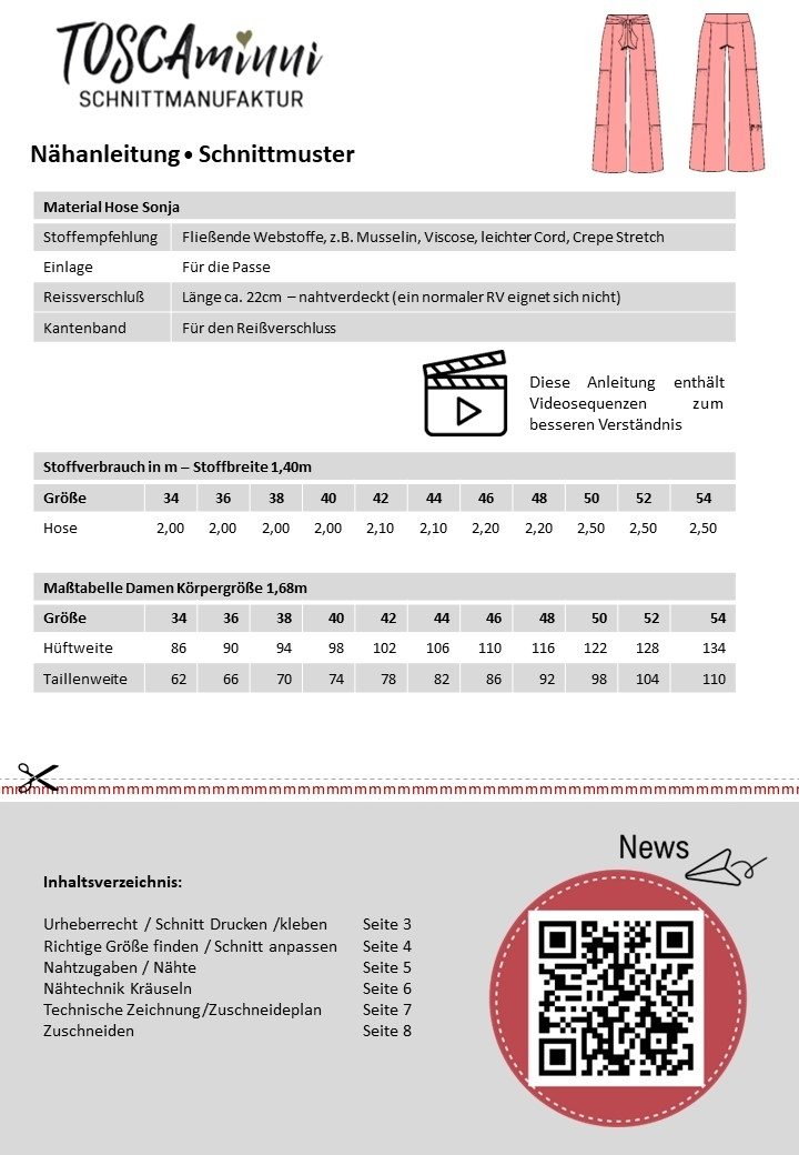 Schnittmuster Musselinhose Sonja Gr. 34-54 | Beamerdatei