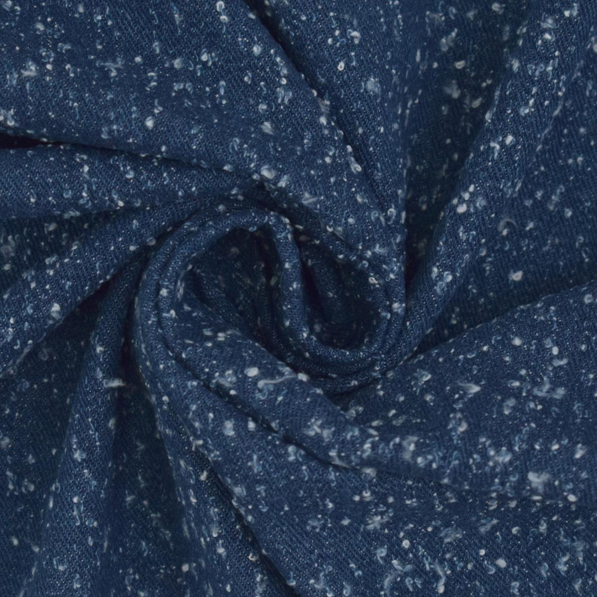 Dieser Jeansstoff mit einer außergewöhnlichen Struktur, die sich durch erhabene Knötchen auf der rechten Seite des Stoffes zeigt, eignet sich ideal für modische Bekleidung wie Jacken, Blazer oder auch für praktische Taschen oder Rucksäcke im angesagtem Denim-Look!