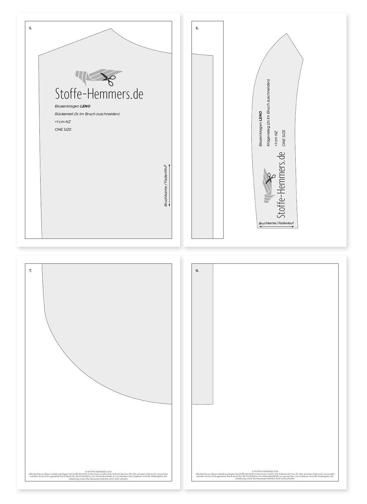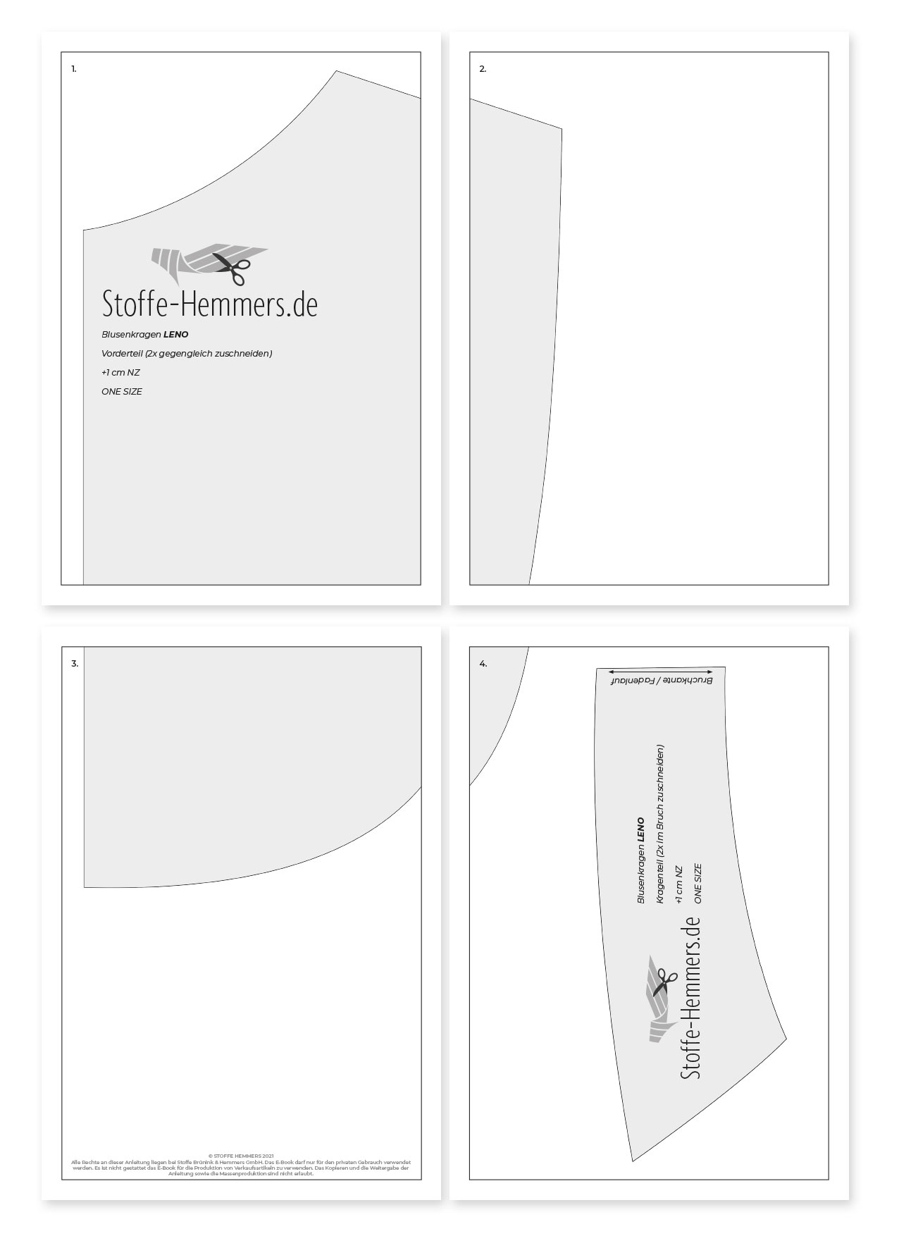 • Der Blusenkragenschnitt Leno benötigt beim Zuschnitt eine Nahtzugabe von 1 cm.