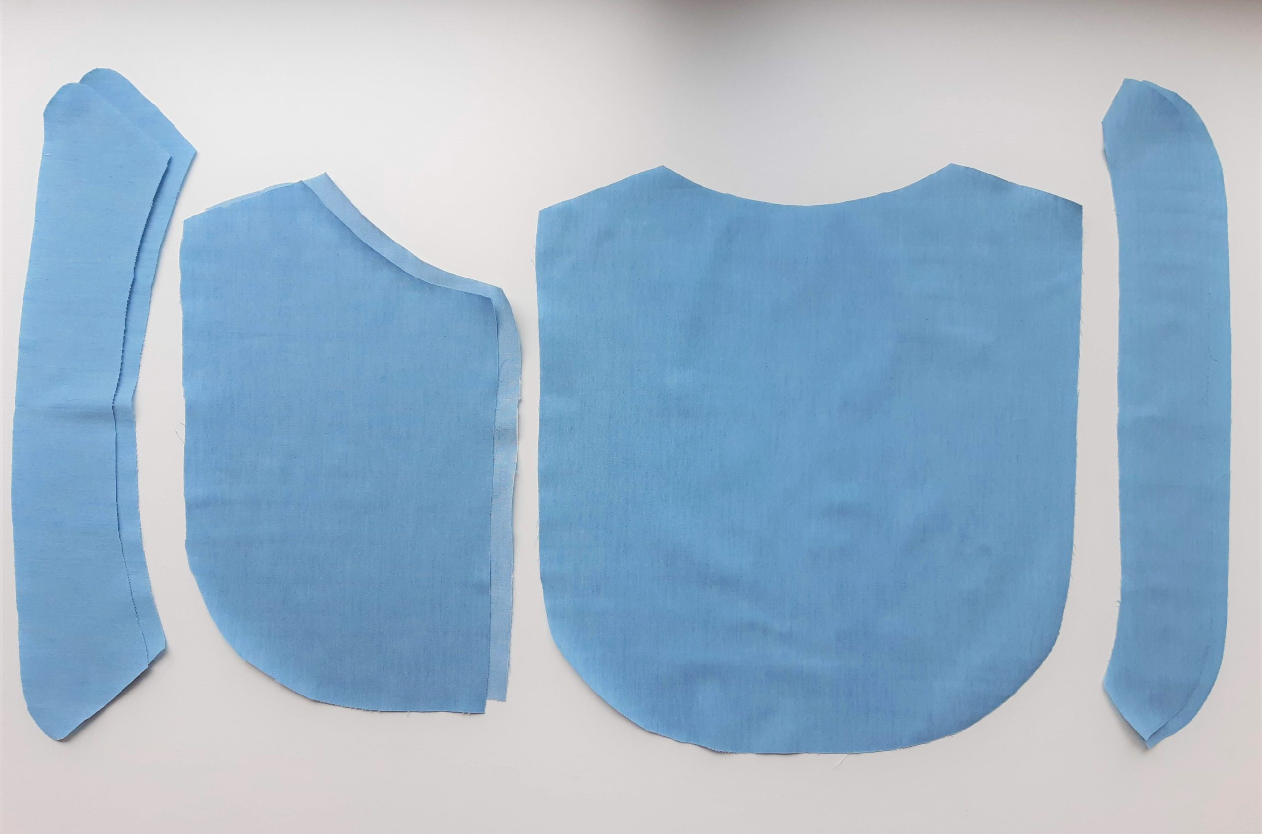 1. Lege das Rückenschnittteil und beide Vorderschnittteile vor dir aus.