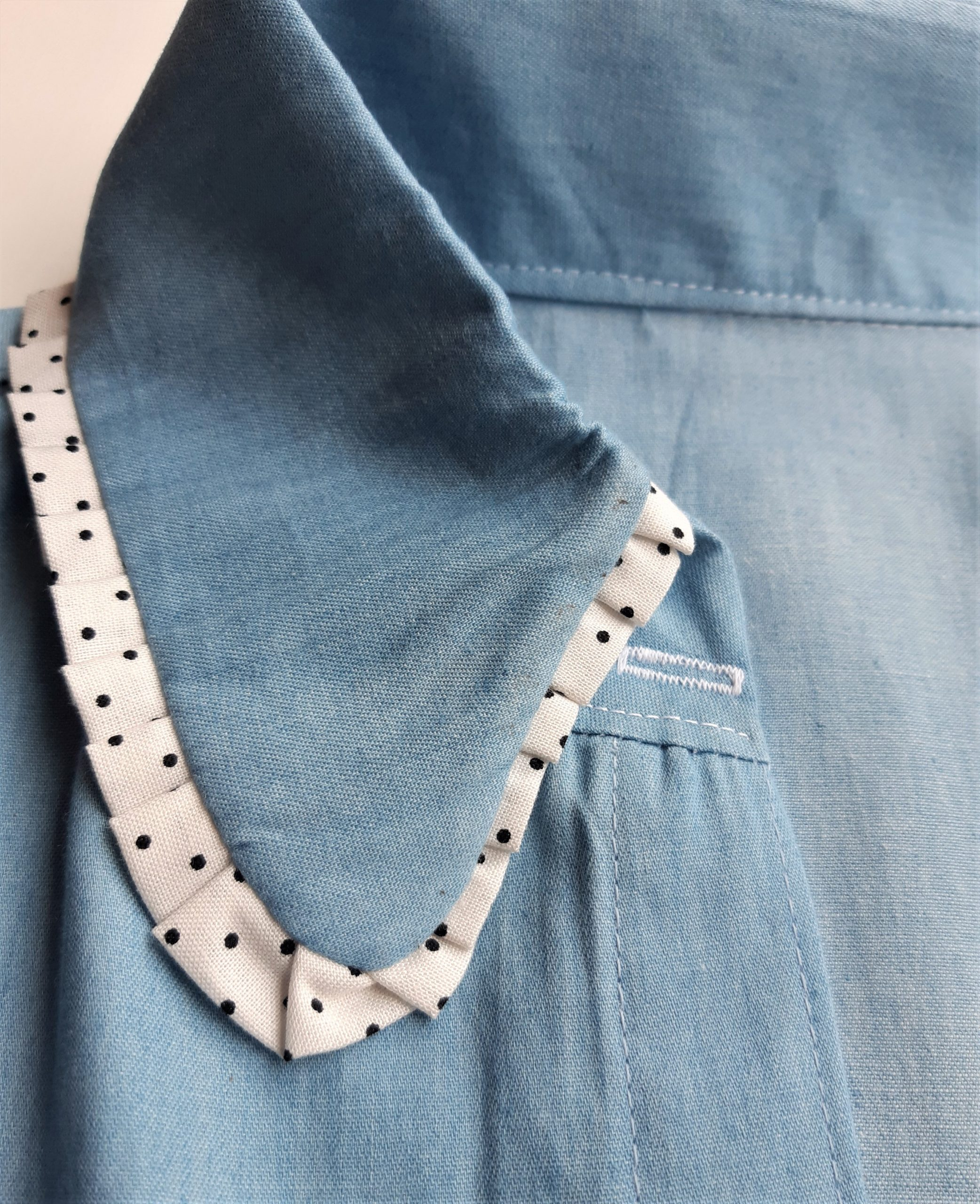 TIPP für alle Detailverliebten: Du hast jetzt die Möglichkeit eine Zackenlitze, Spitzenband, Paspelband oder ähnliches mit in den Kragen einzuarbeiten.