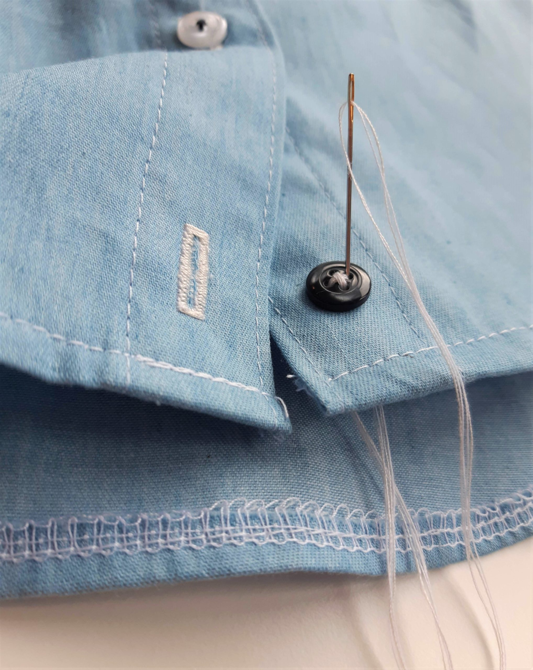 2. Beginne mit dem ersten Knopfloch im Kragensteg.