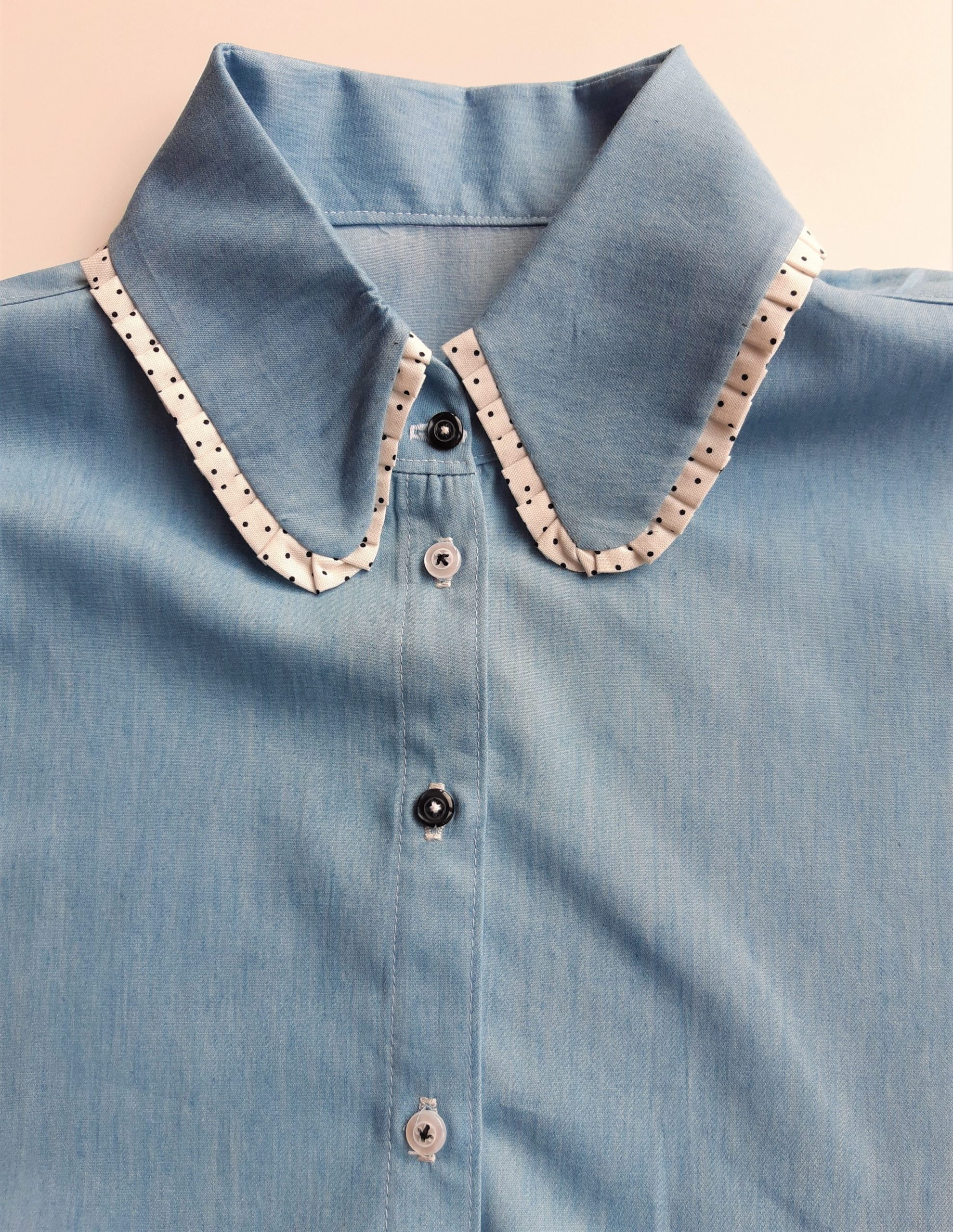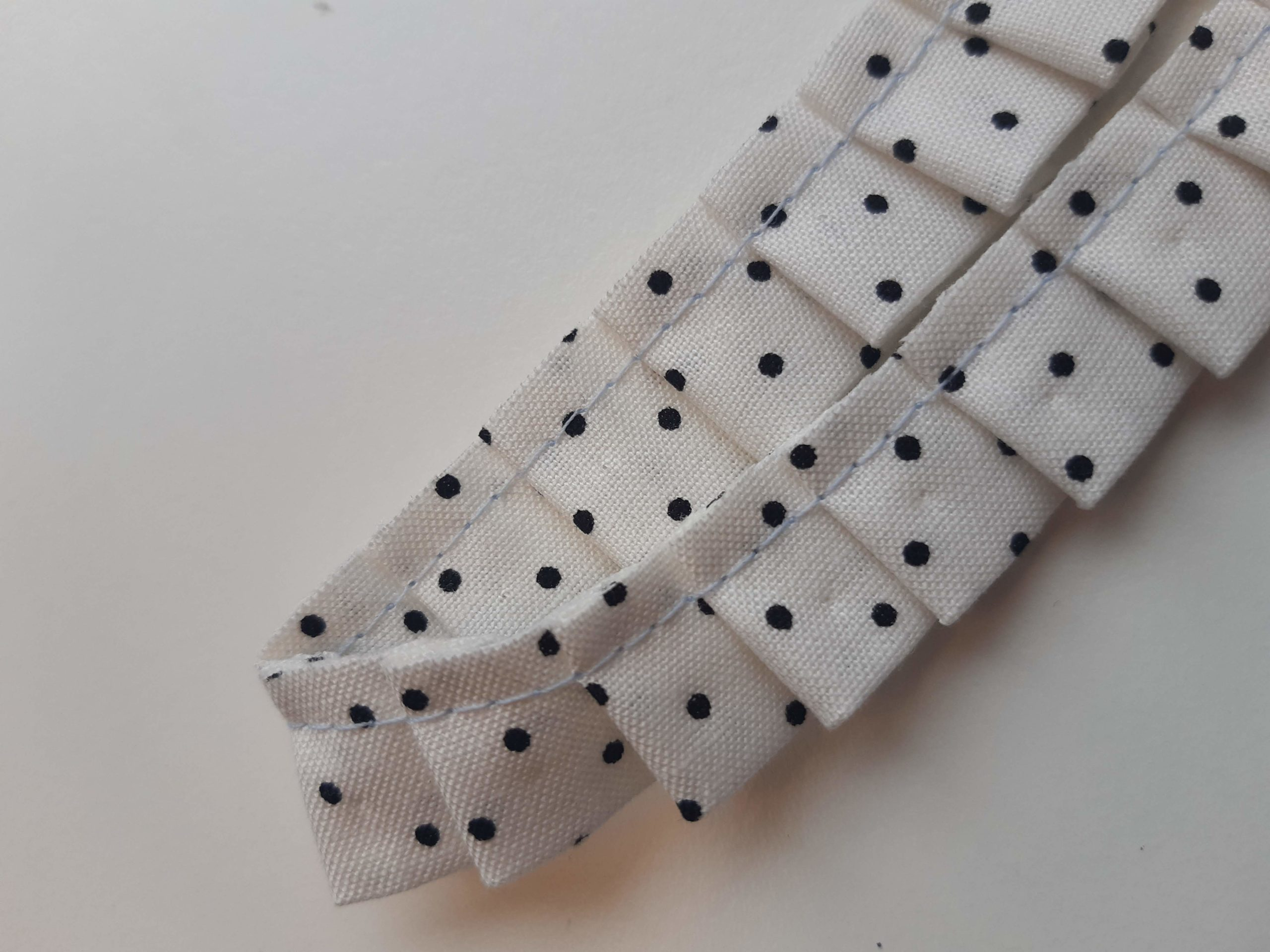 In meiner Nähanleitung zeige ich euch einen abgerundeten Kragen mit eingefasstem Faltenband. An Stelle des Faltenbands könnt ihr auch ein Spitzenband, ein Paspelband oder eine Zackenlitze verwenden.