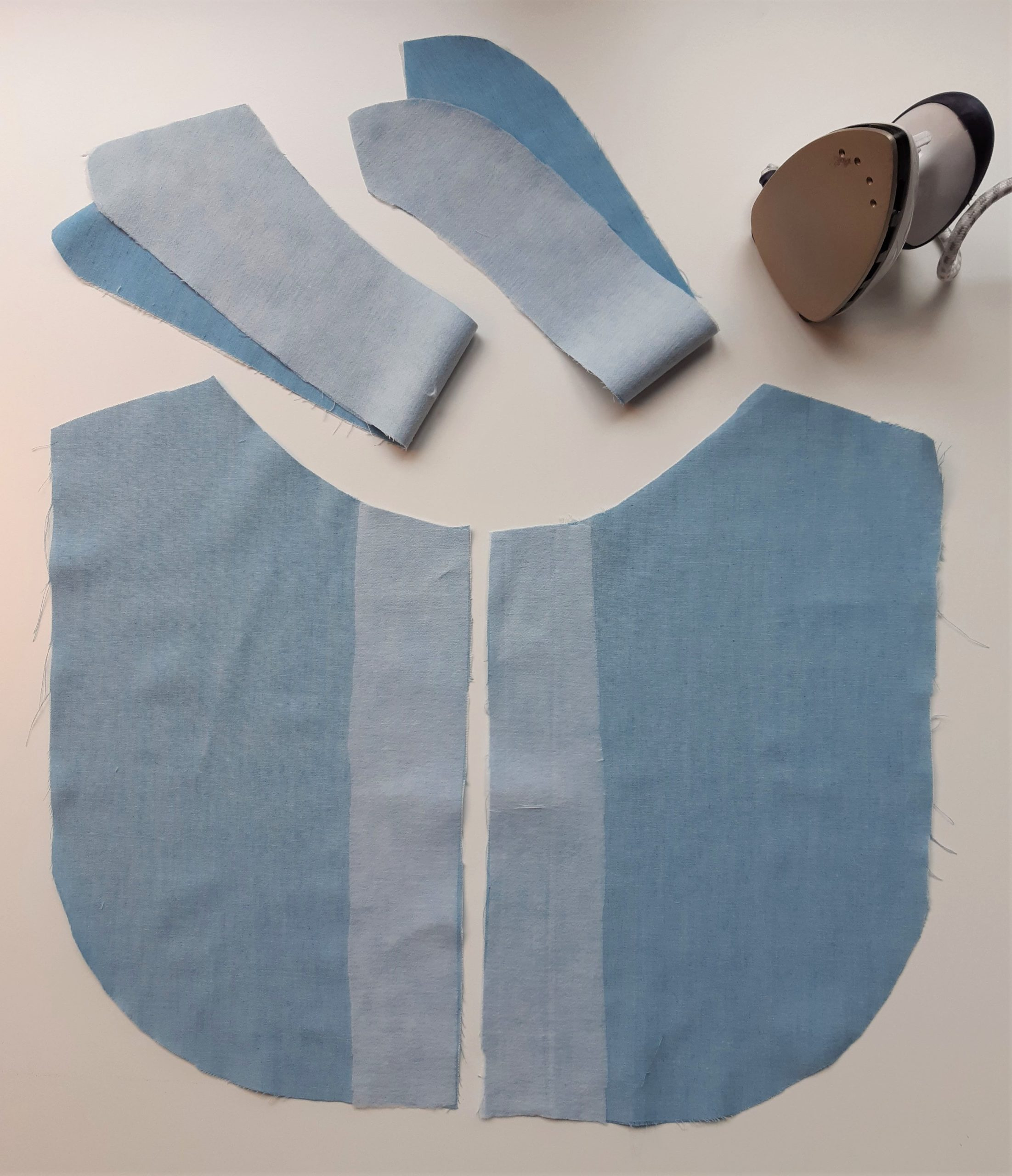 1. Nimm dir den vorbereiteten Kragen und deine 2 Stegschnittteile zur Hand.