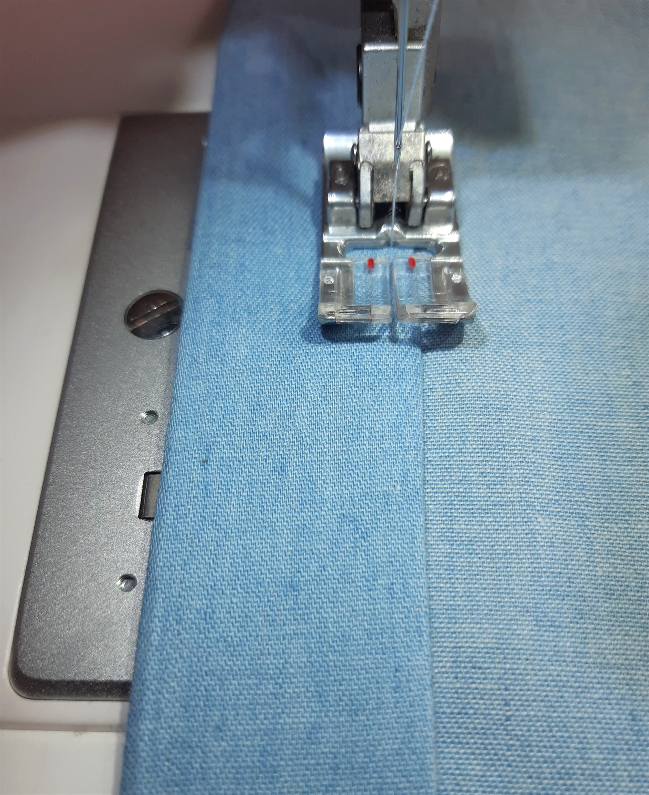5. Steppe die 3 Stofflagen an der Stegkante zusammen.