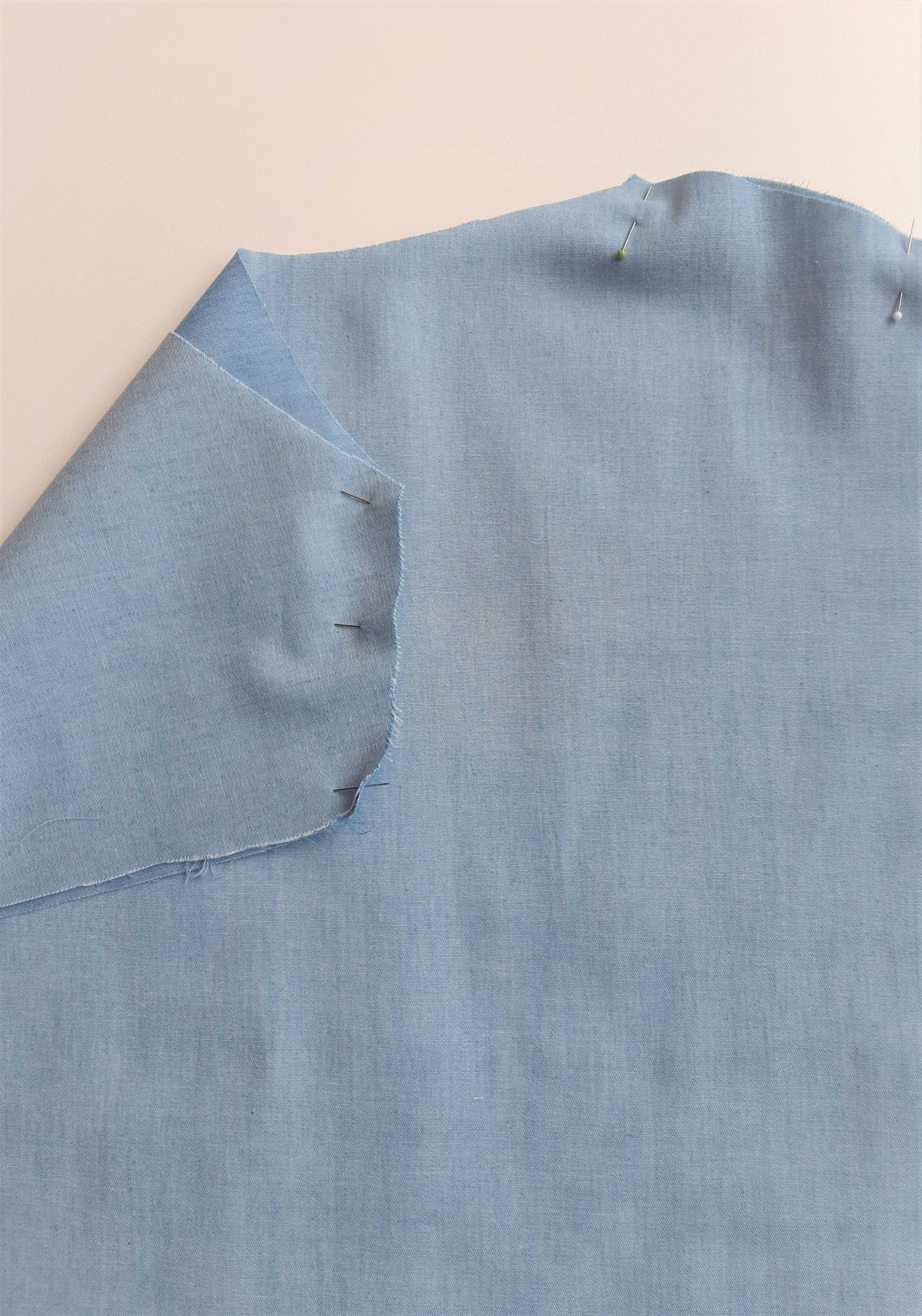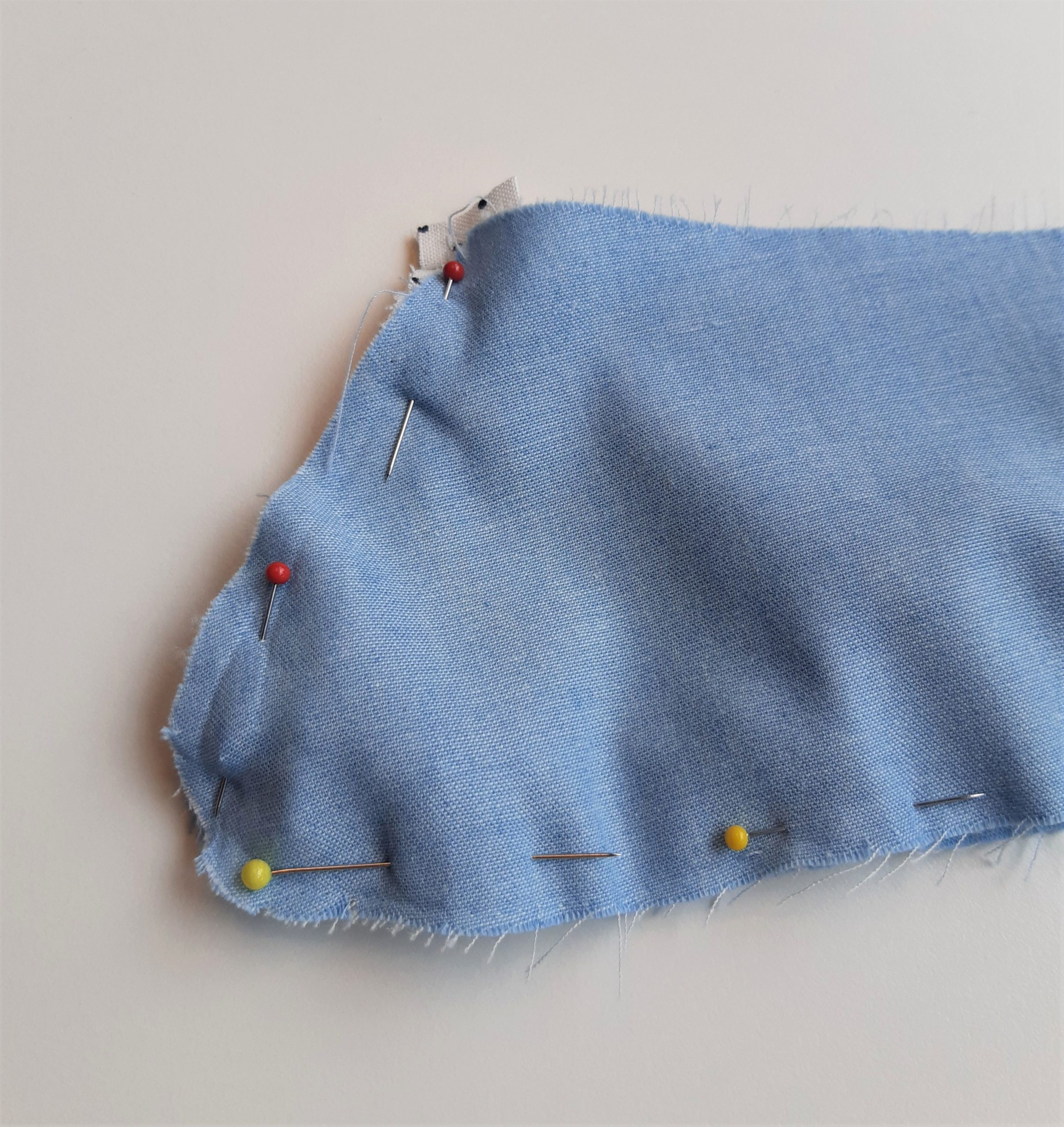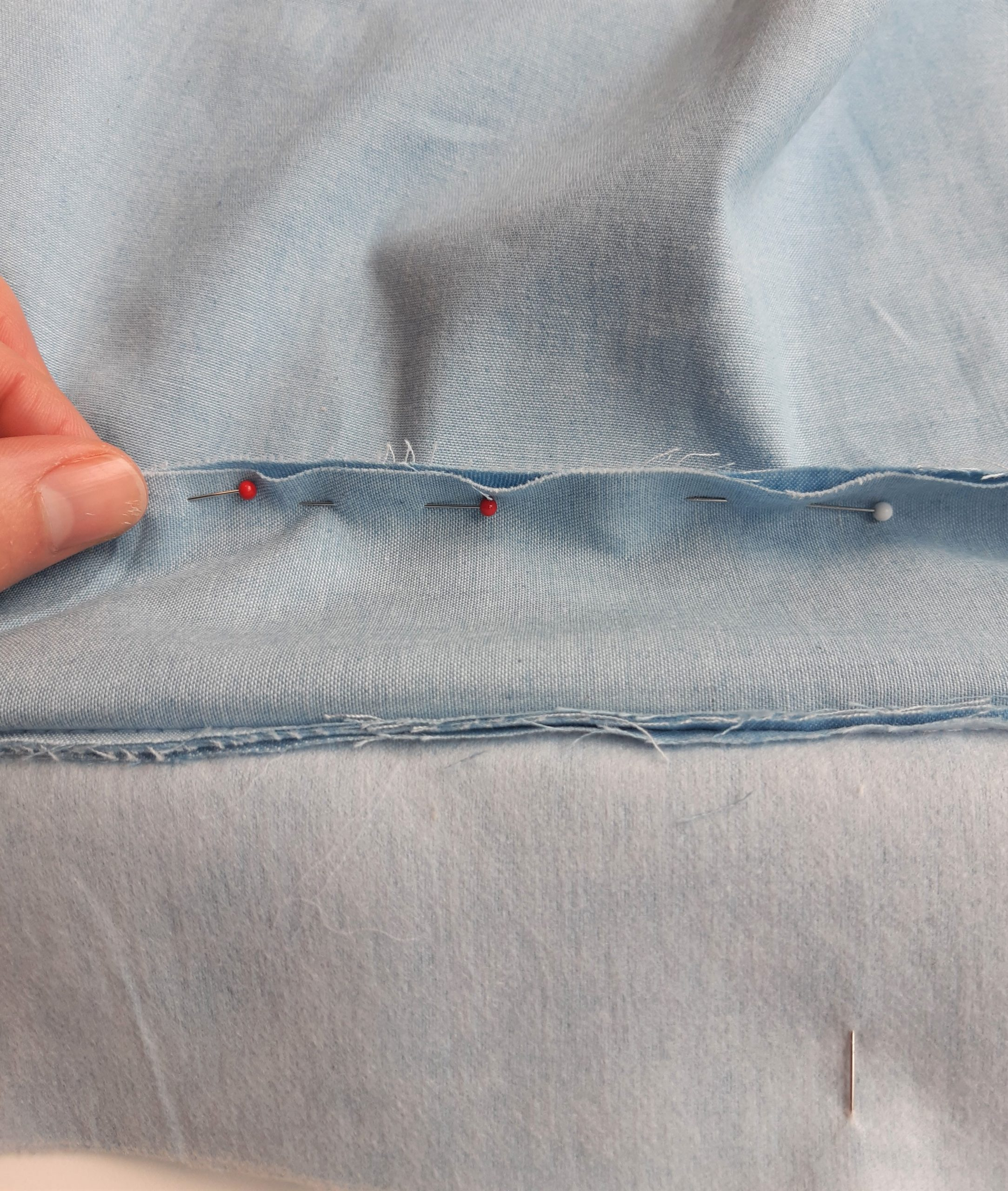 4. Fixiere die Kante mit Stecknadeln am Halsausschnitt und an der Saumkante.