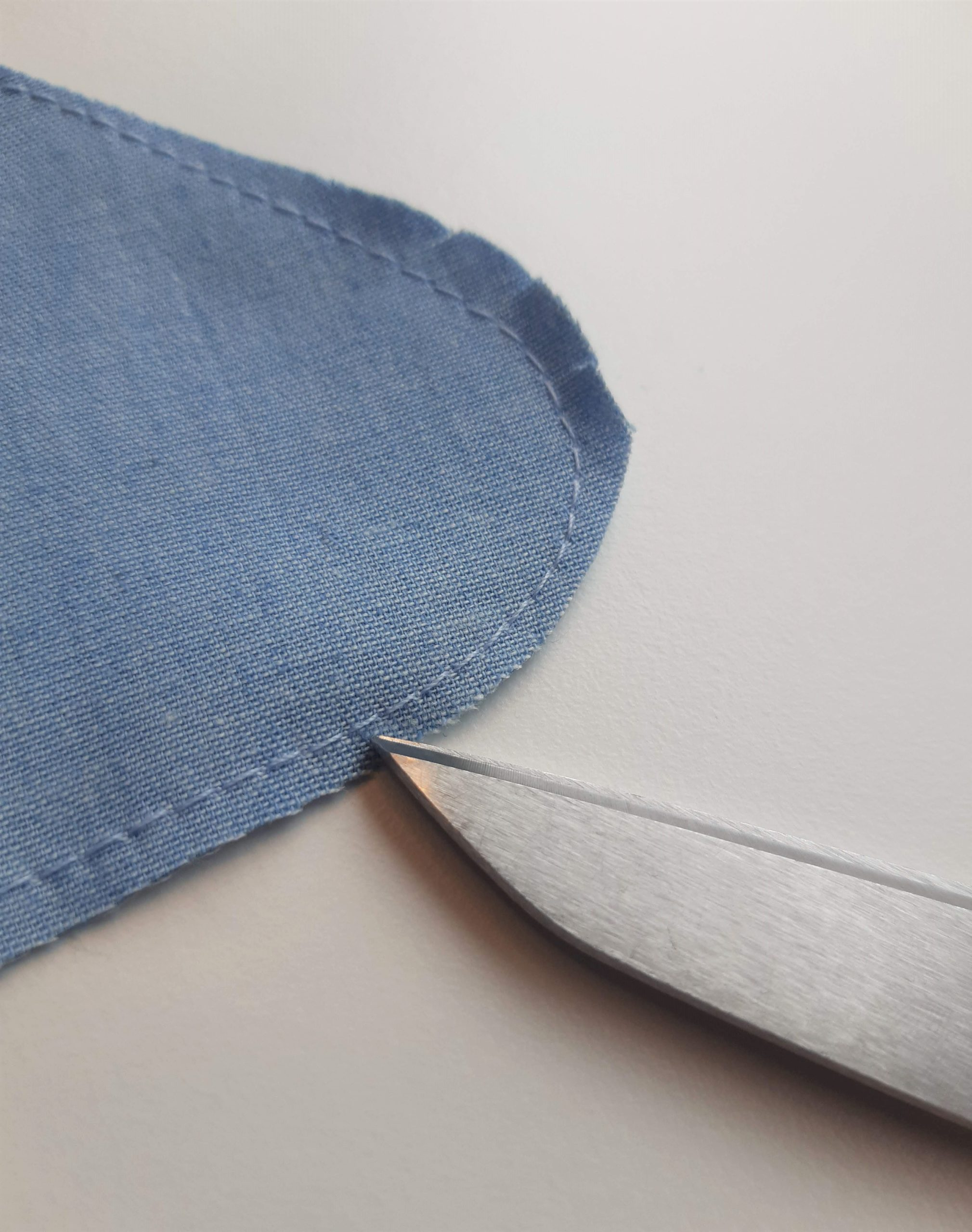2. Kürze die Nahtzugaben und schneide in den Rundungen einige Millimeter schräg ein.