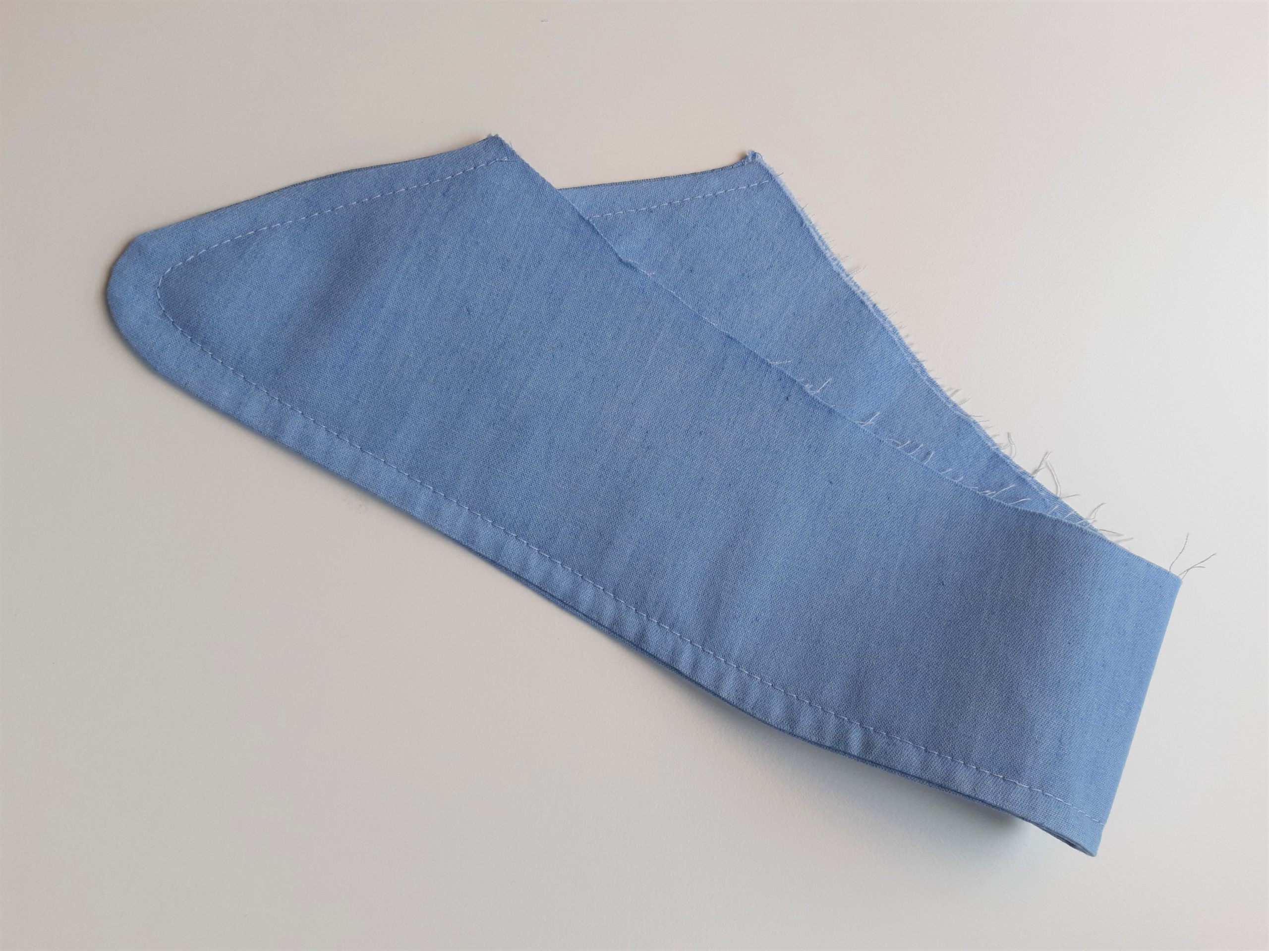 Achte später beim Annähen des Kragens darauf, dass die verstärkten Stoffseiten außen liegen.