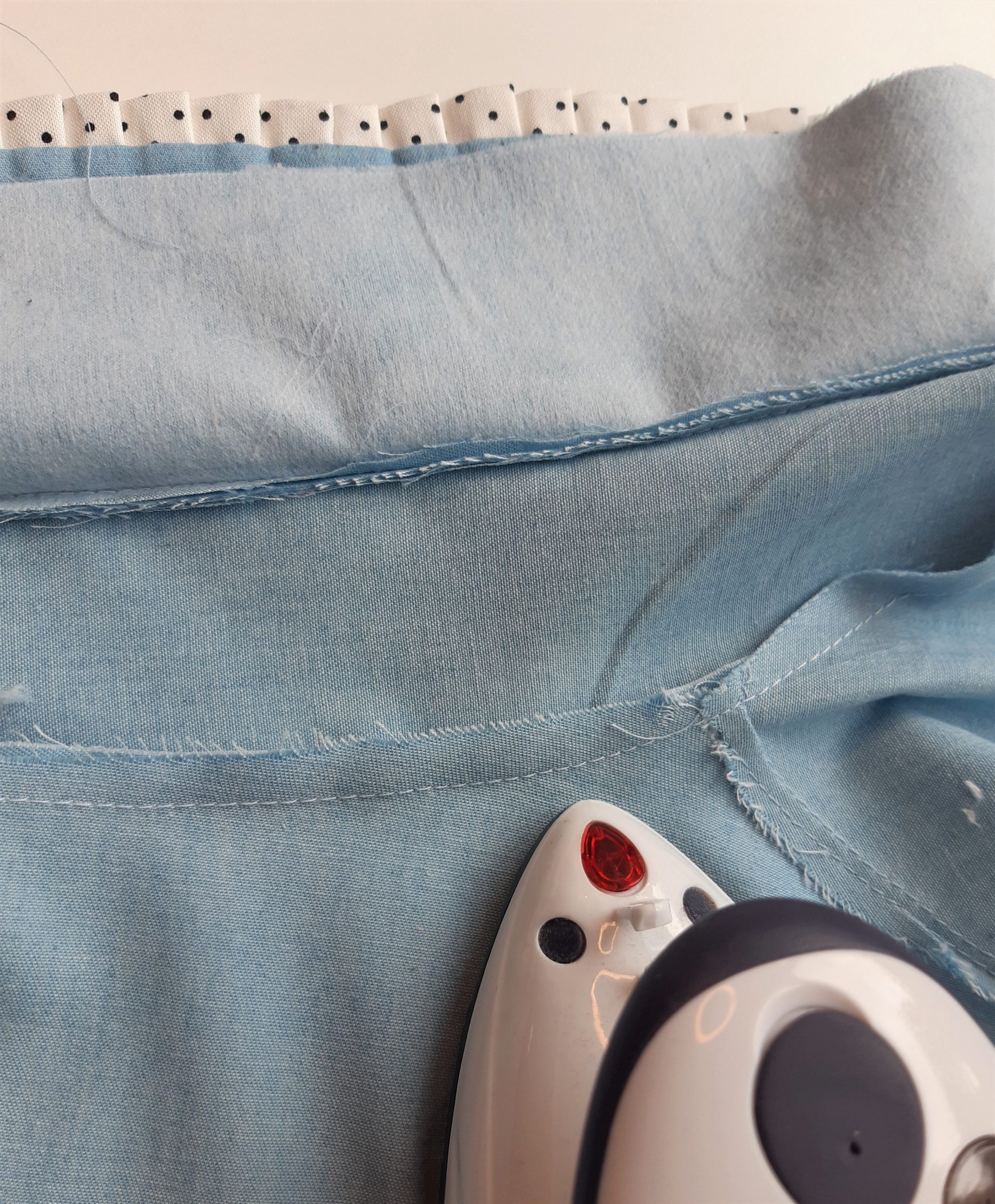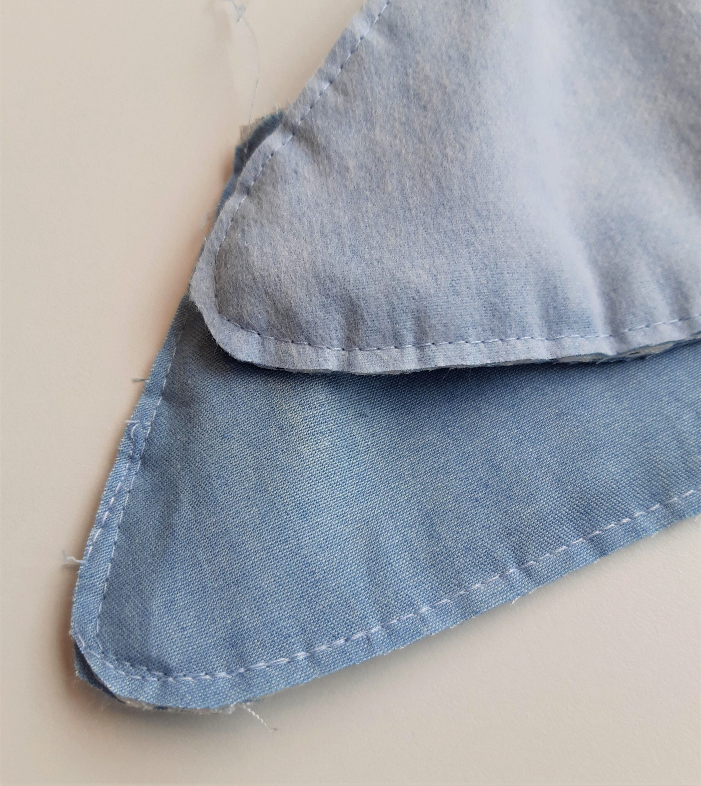 3. Wende den Kragen, arbeite die Rundungen gut aus und bügele.