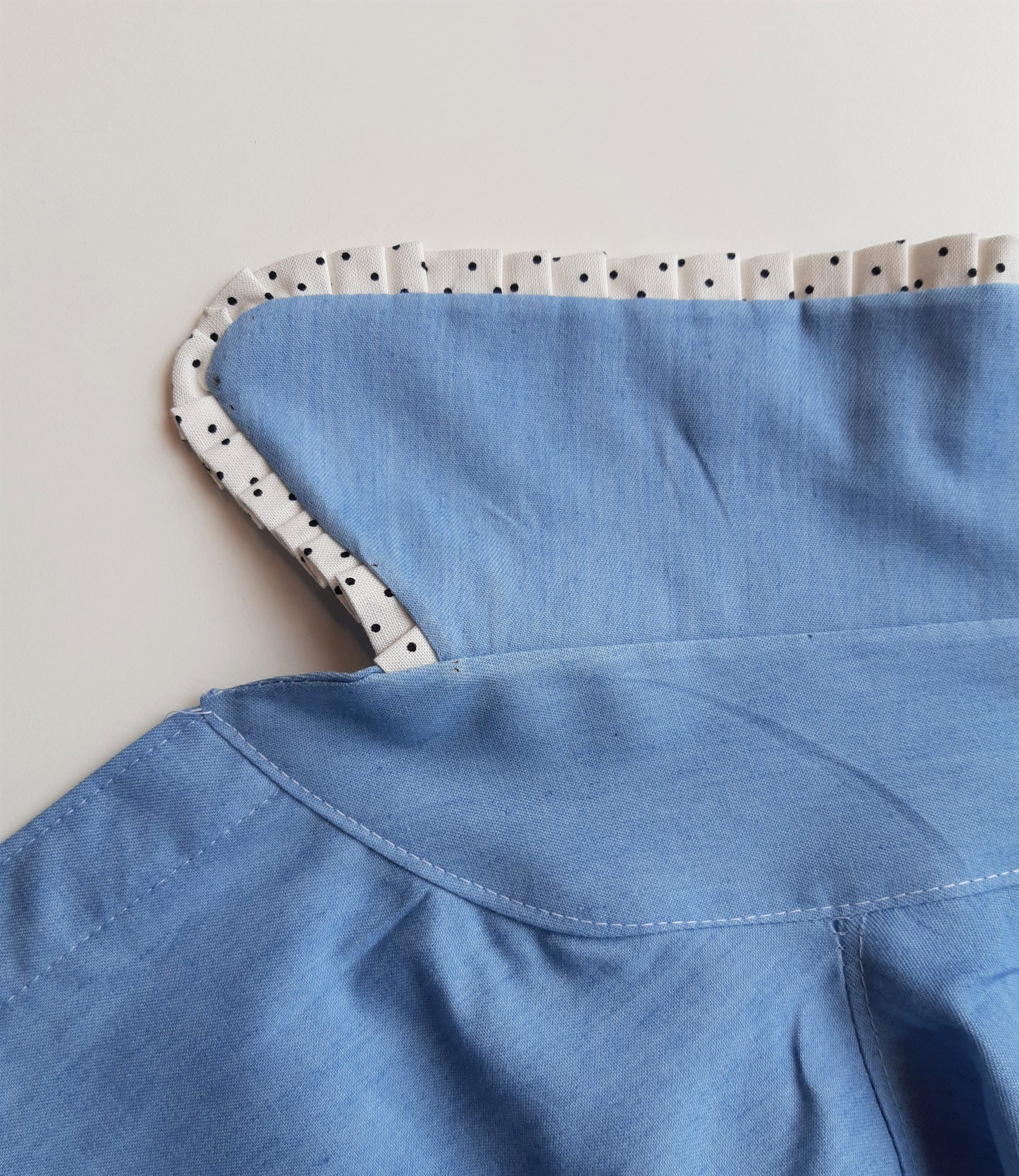 6. Kürze die Nahtzugaben, wende den Kragensteg und bügele ihn sorgfältig.