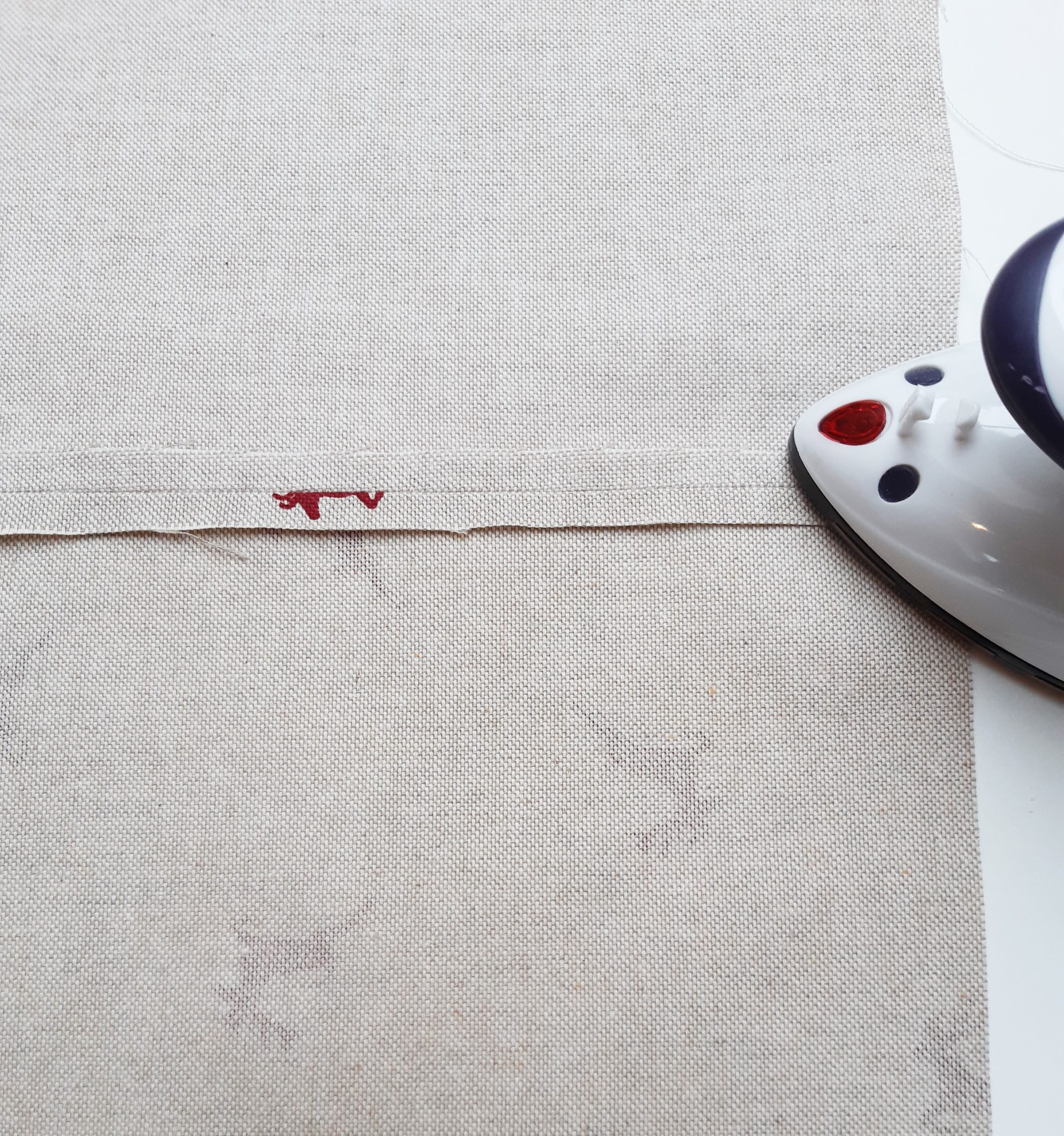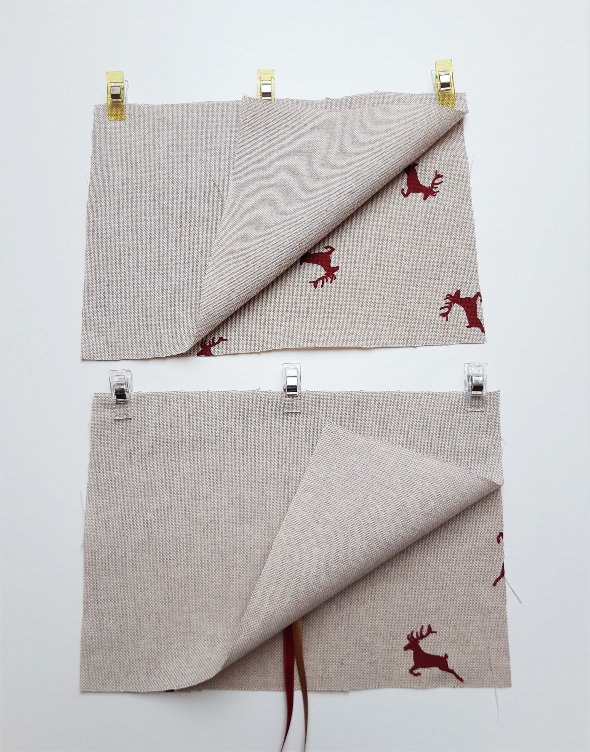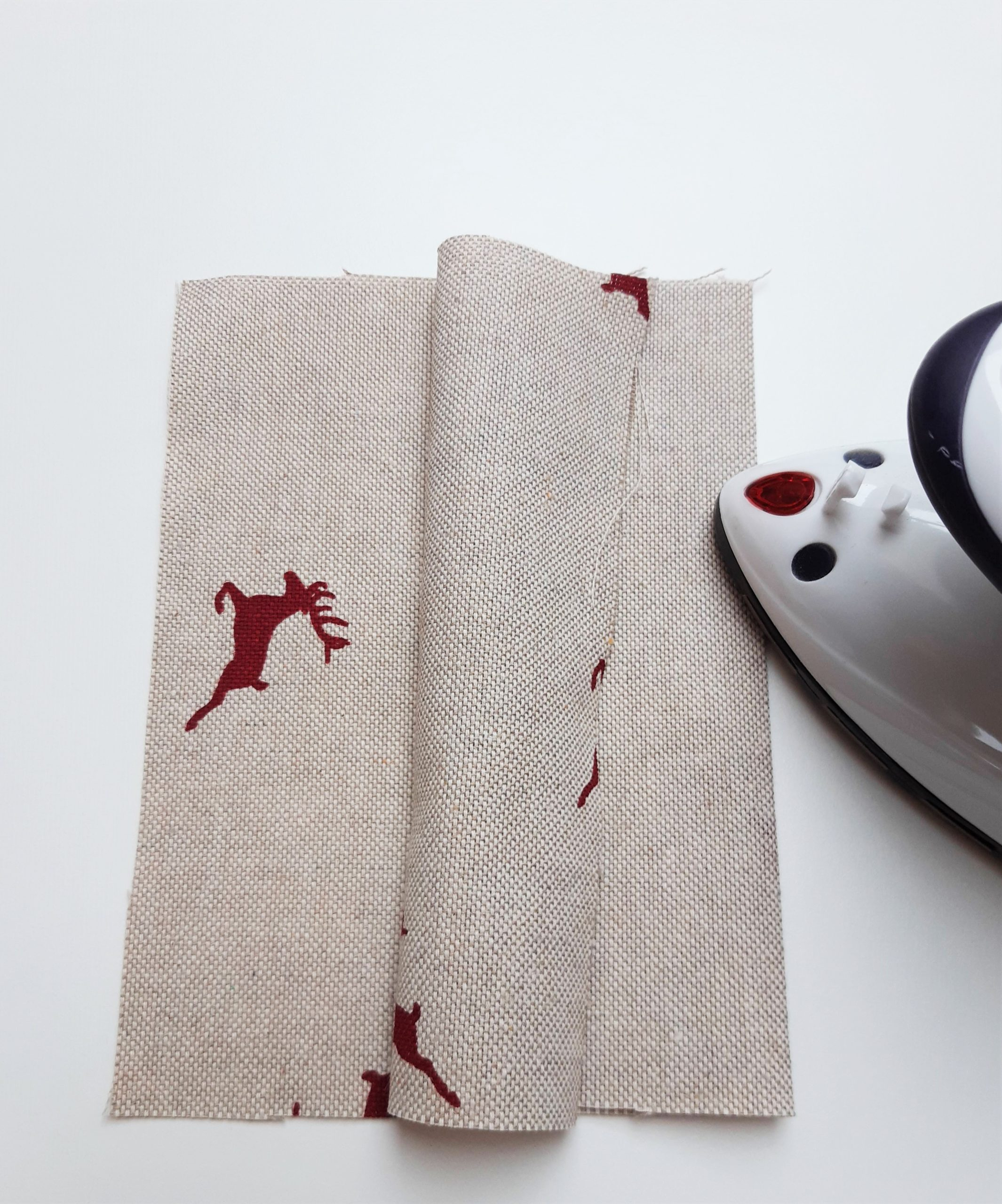 2. Bügele alle Ränder der beiden Zuschnitt um 1 cm nach innen.