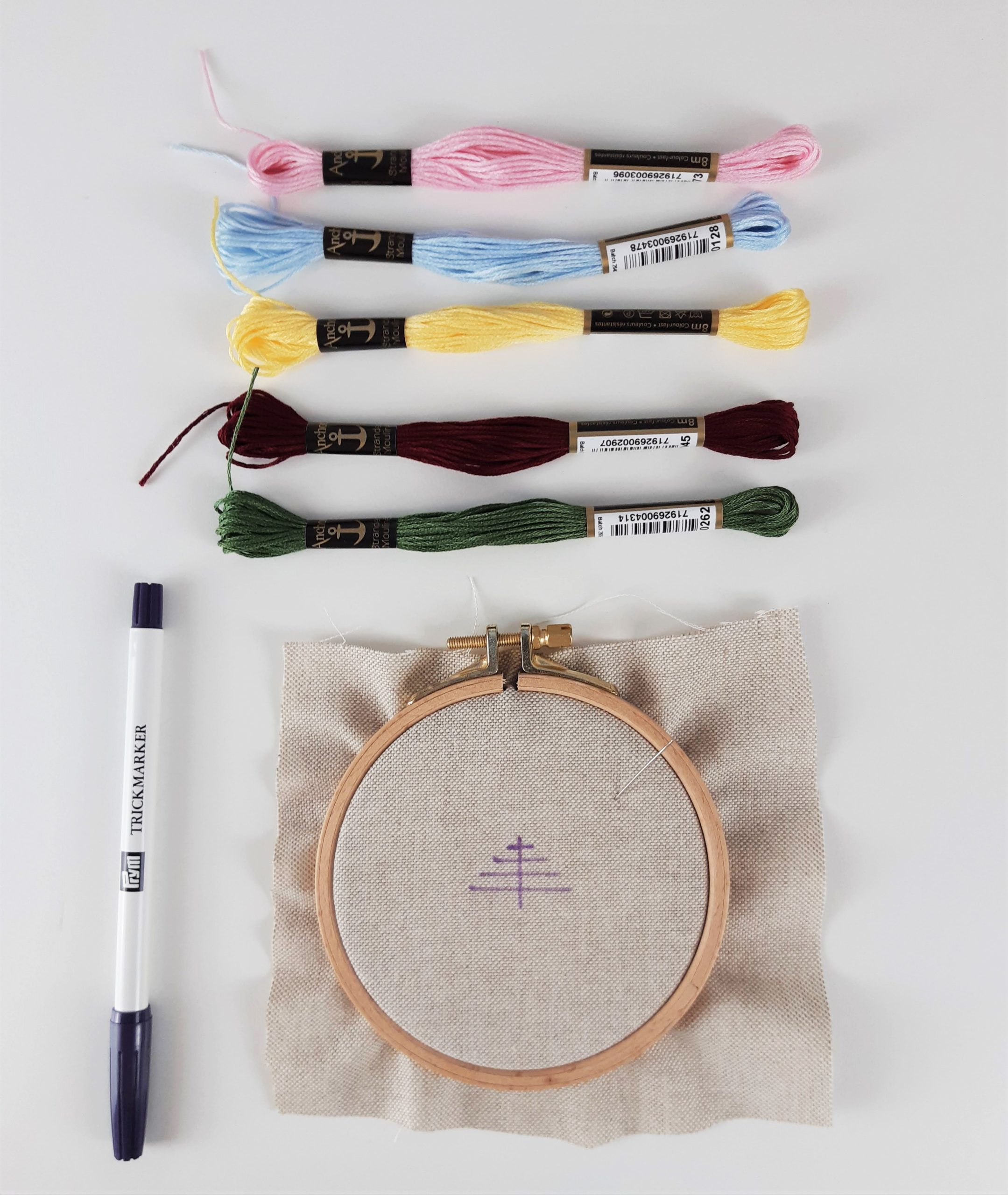 1. Wickel zunächst das Seidenband auf und fixiere es mit einer Stecknadel oder Klammer fest.