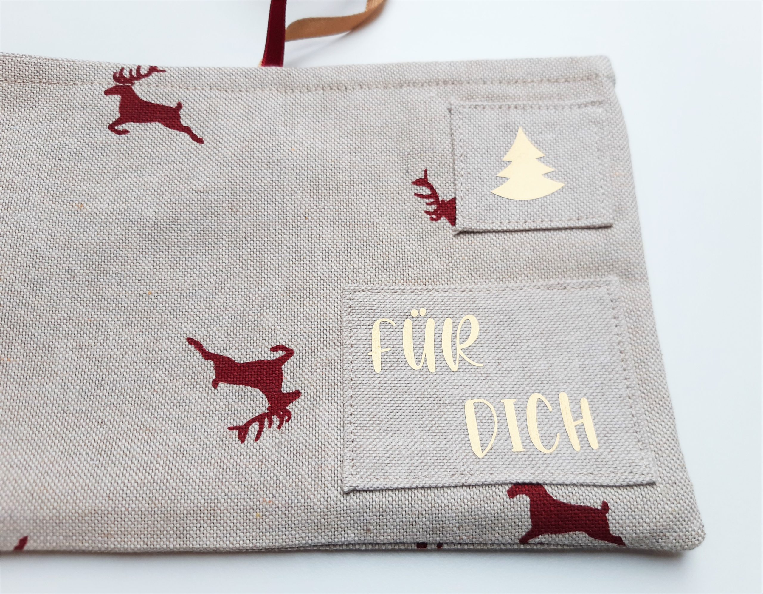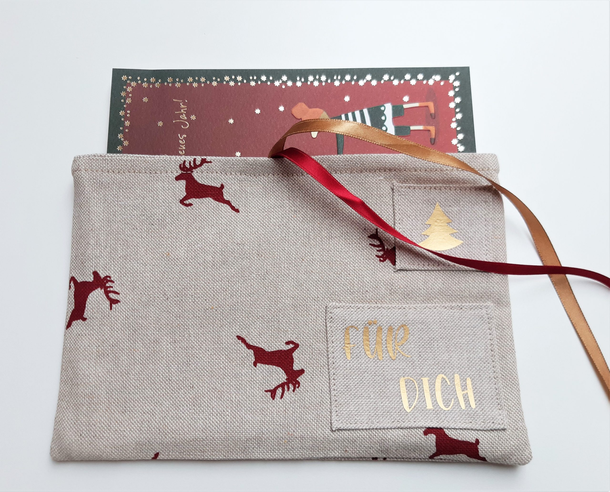 Zaubere weihnachtliche Grüße für deine Familie und deine liebsten Freunde – und zwar mit einer 20 x 13 cm großen selbst genähten Briefhülle. Eine ganz besondere Geschenkverpackung für Karten, Briefe, Gutscheine oder Geldgeschenke.