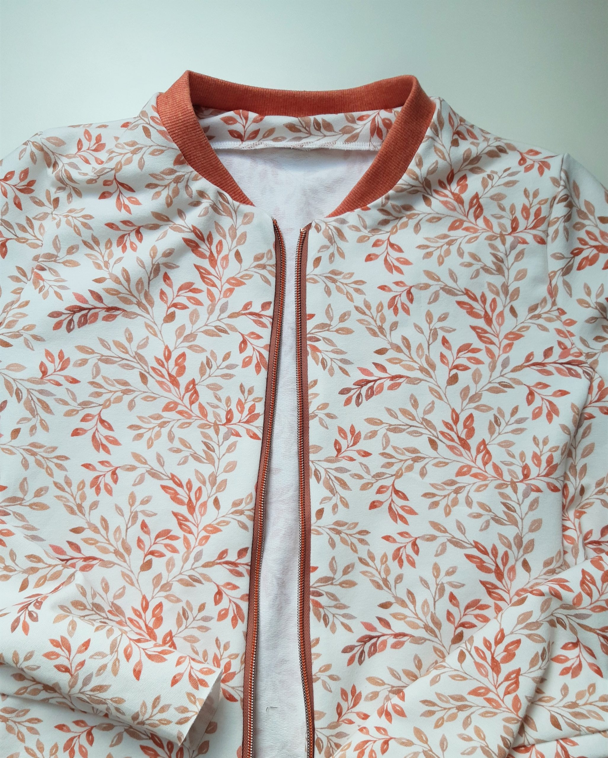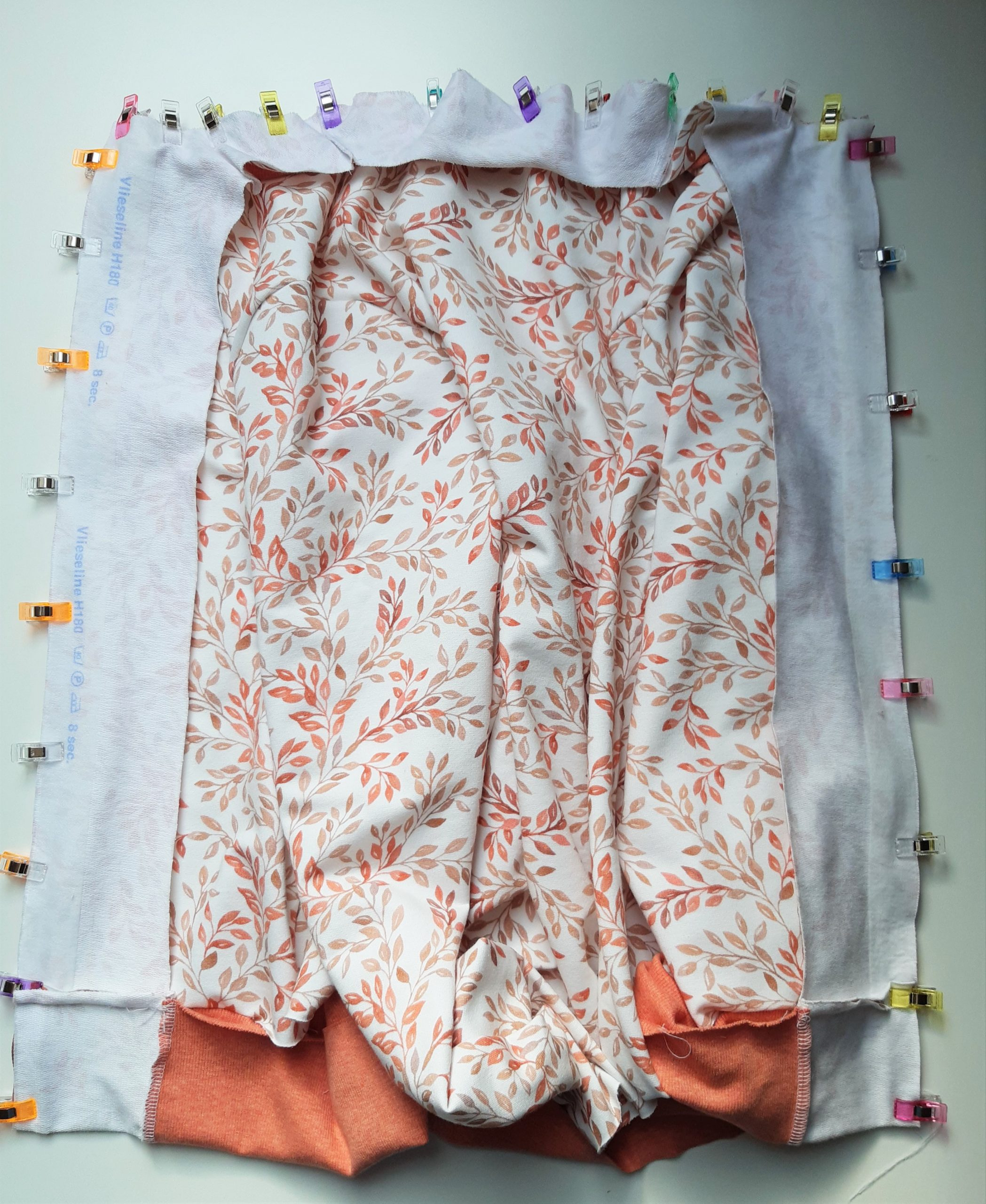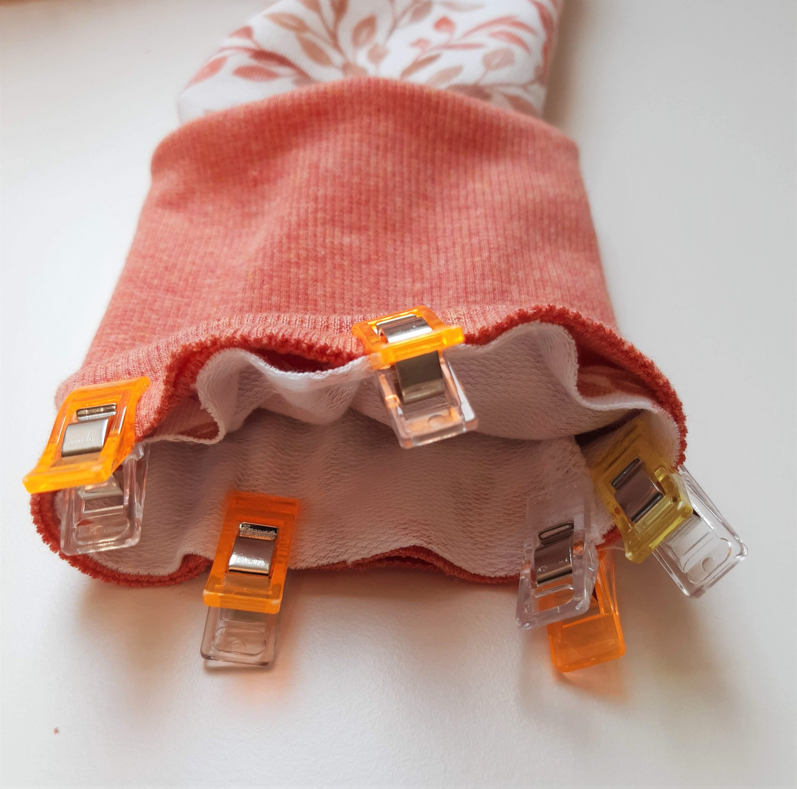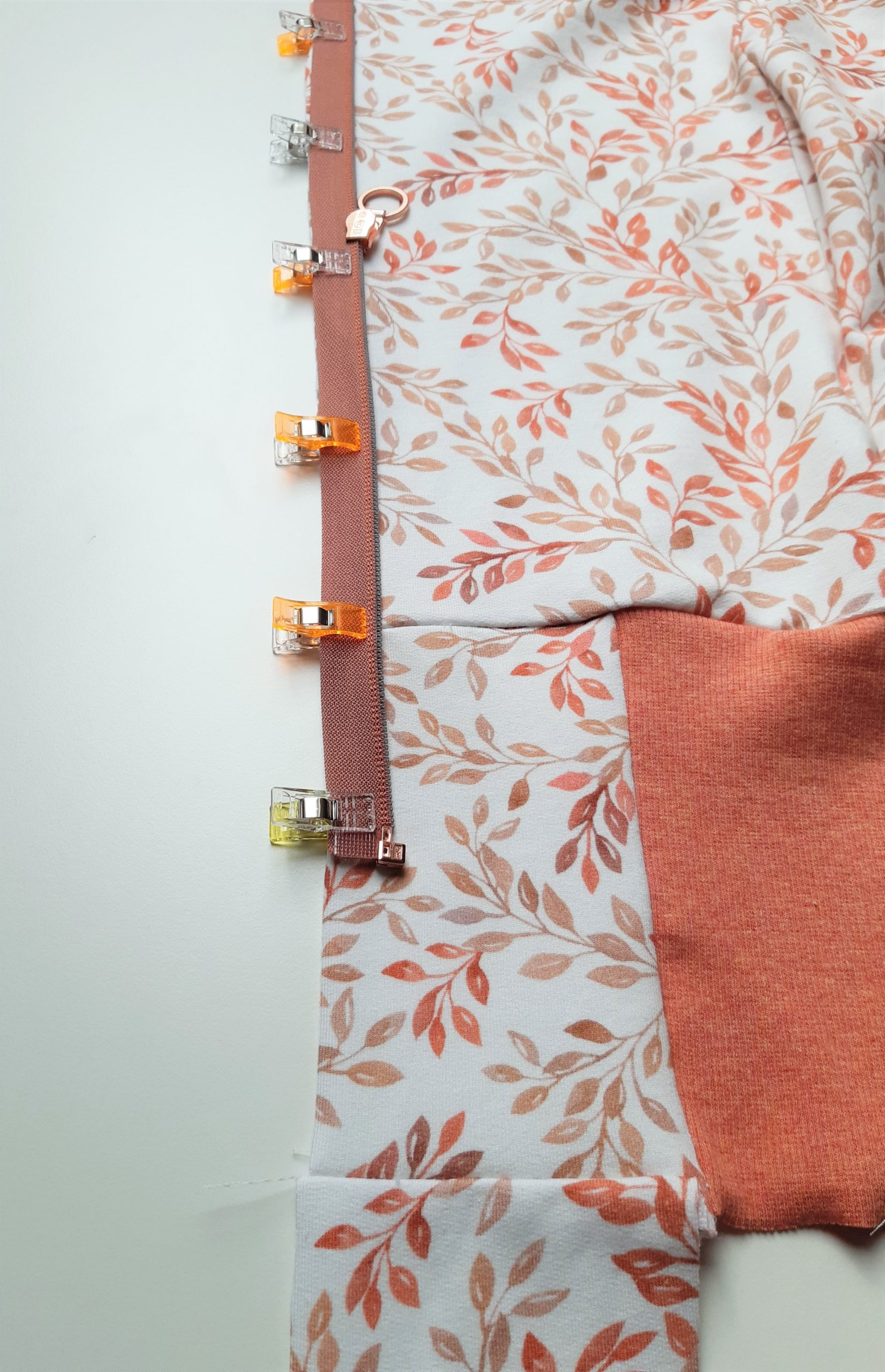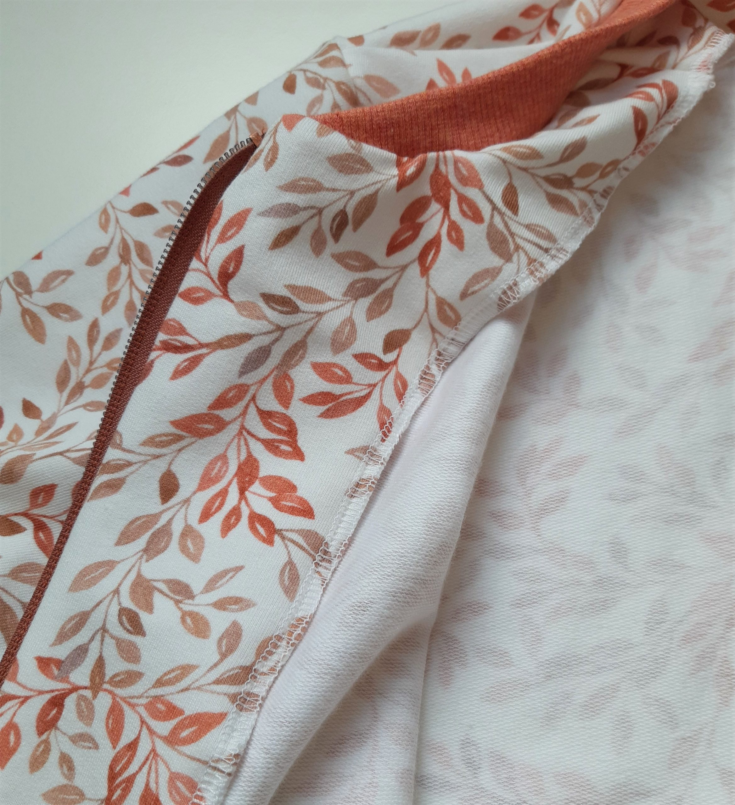 In meinem Nähbeispiel nähe ich die Collegejacke in der langen Version aus einem French Terry in der Größe 38. Ich habe mir die Ärmel sowie die Ärmelbündchen etwas verlängert.
