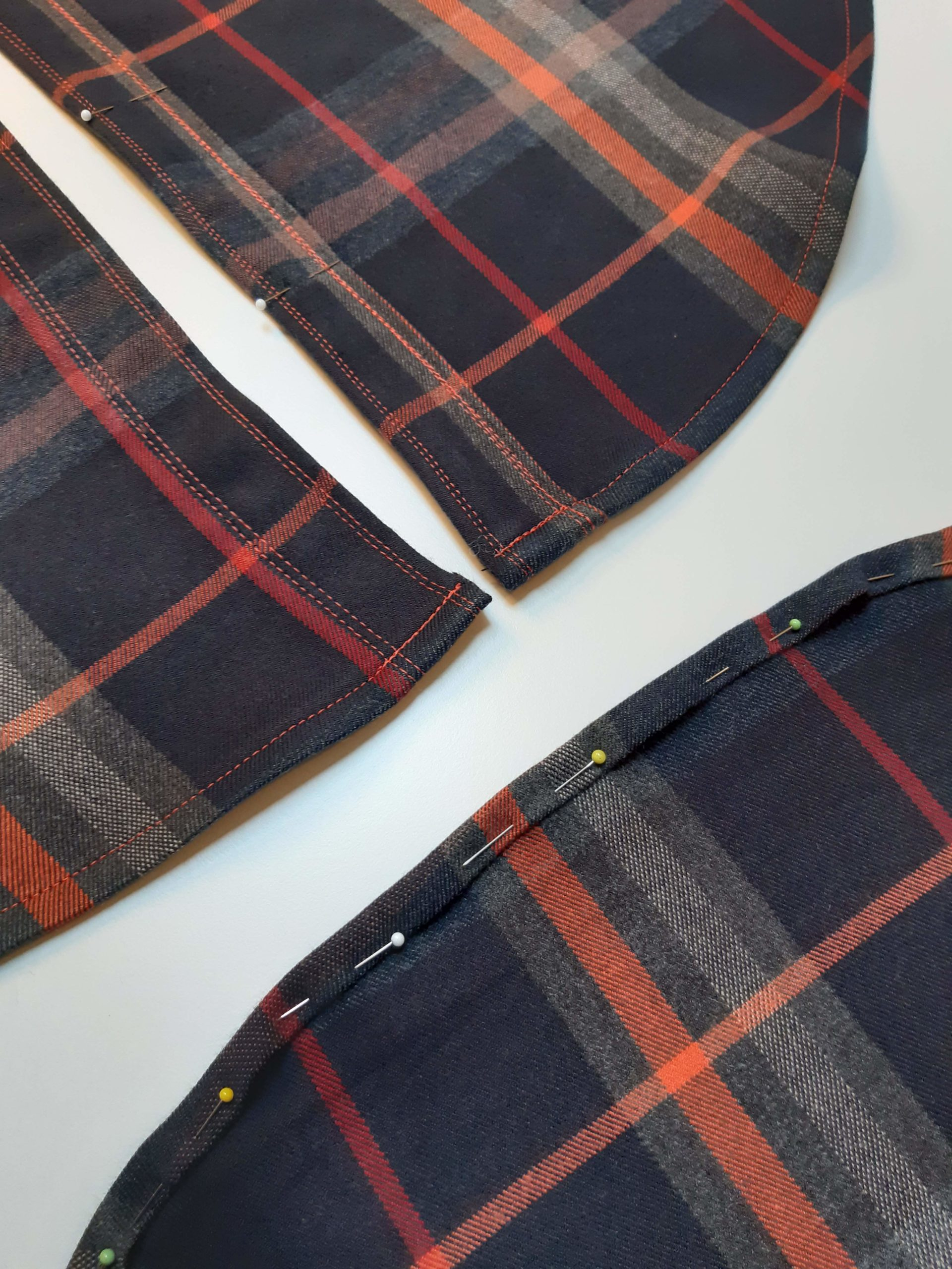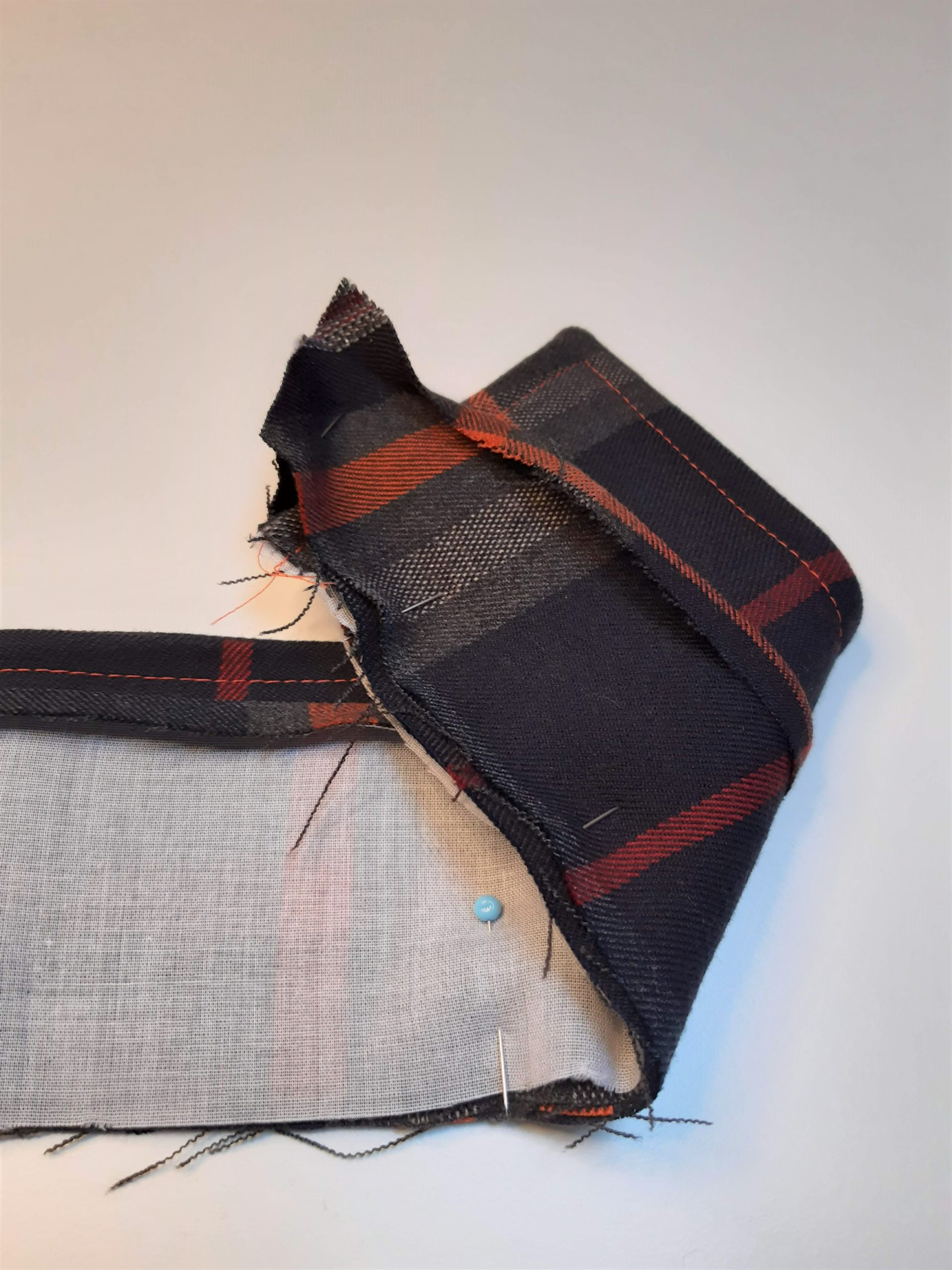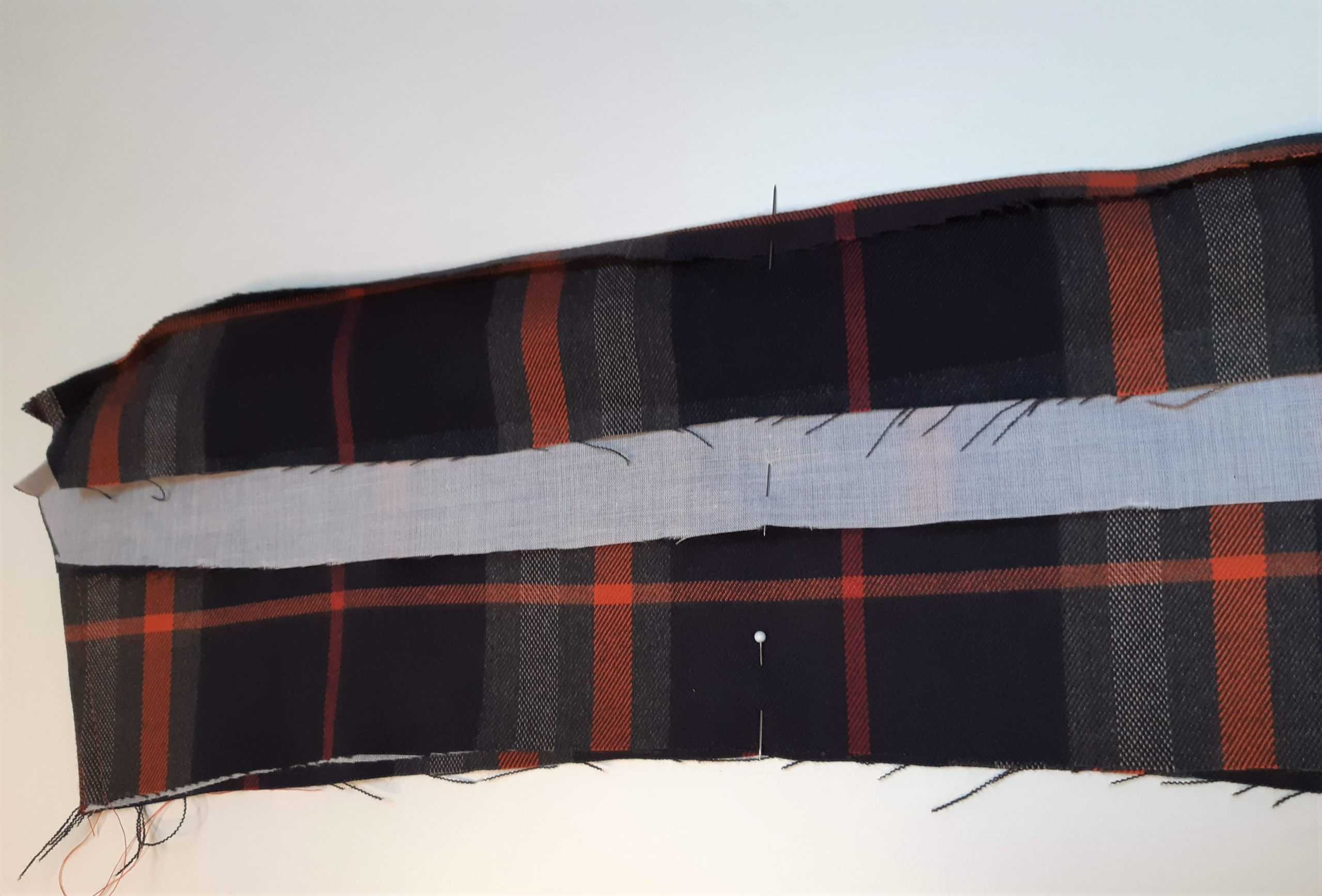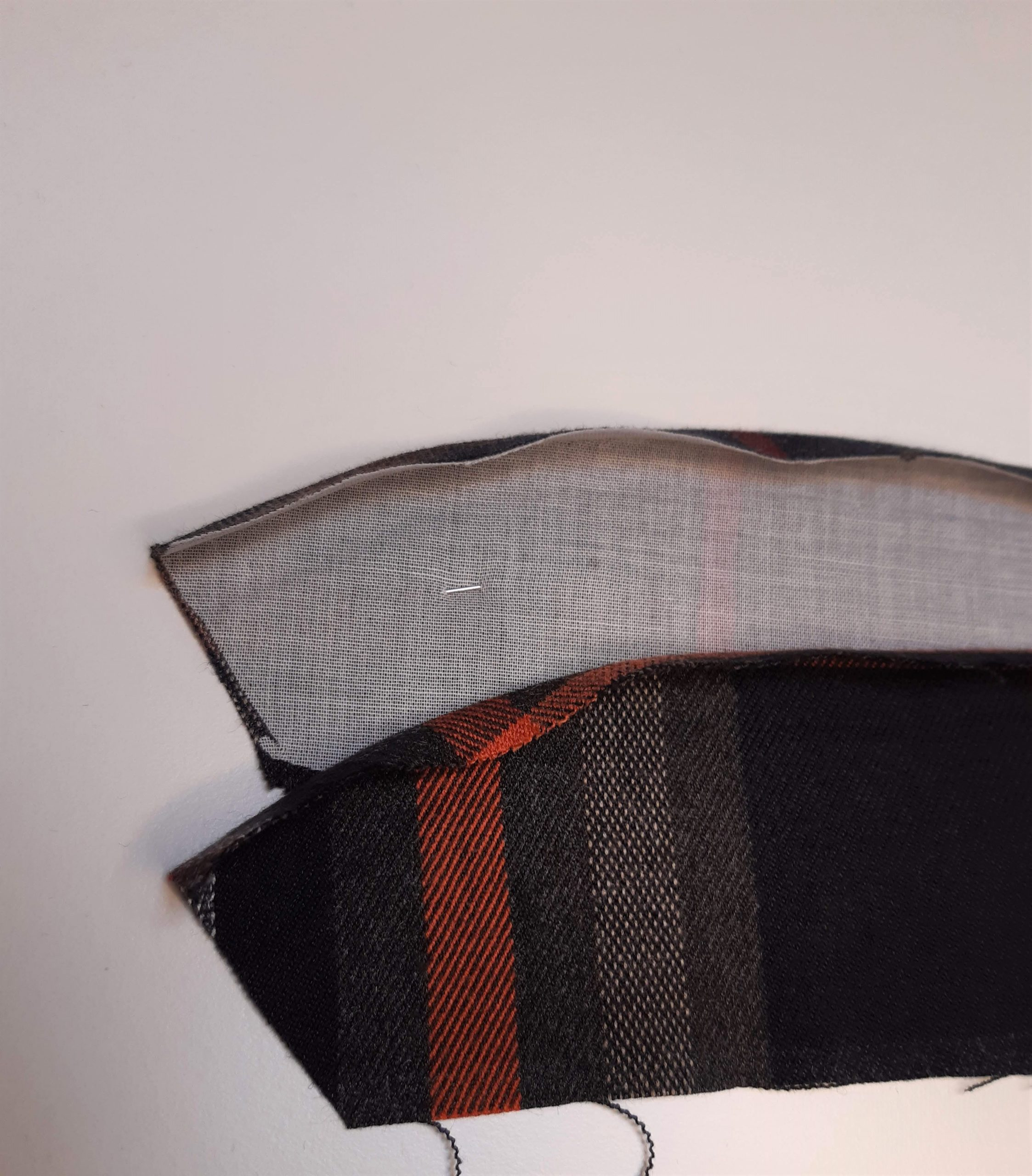 Ich habe mir jeweils nur ein Kragenschnittteil und ein Kragenstegschnittteil verstärkt, da mein Stoff an sich schon etwas dicker ist.