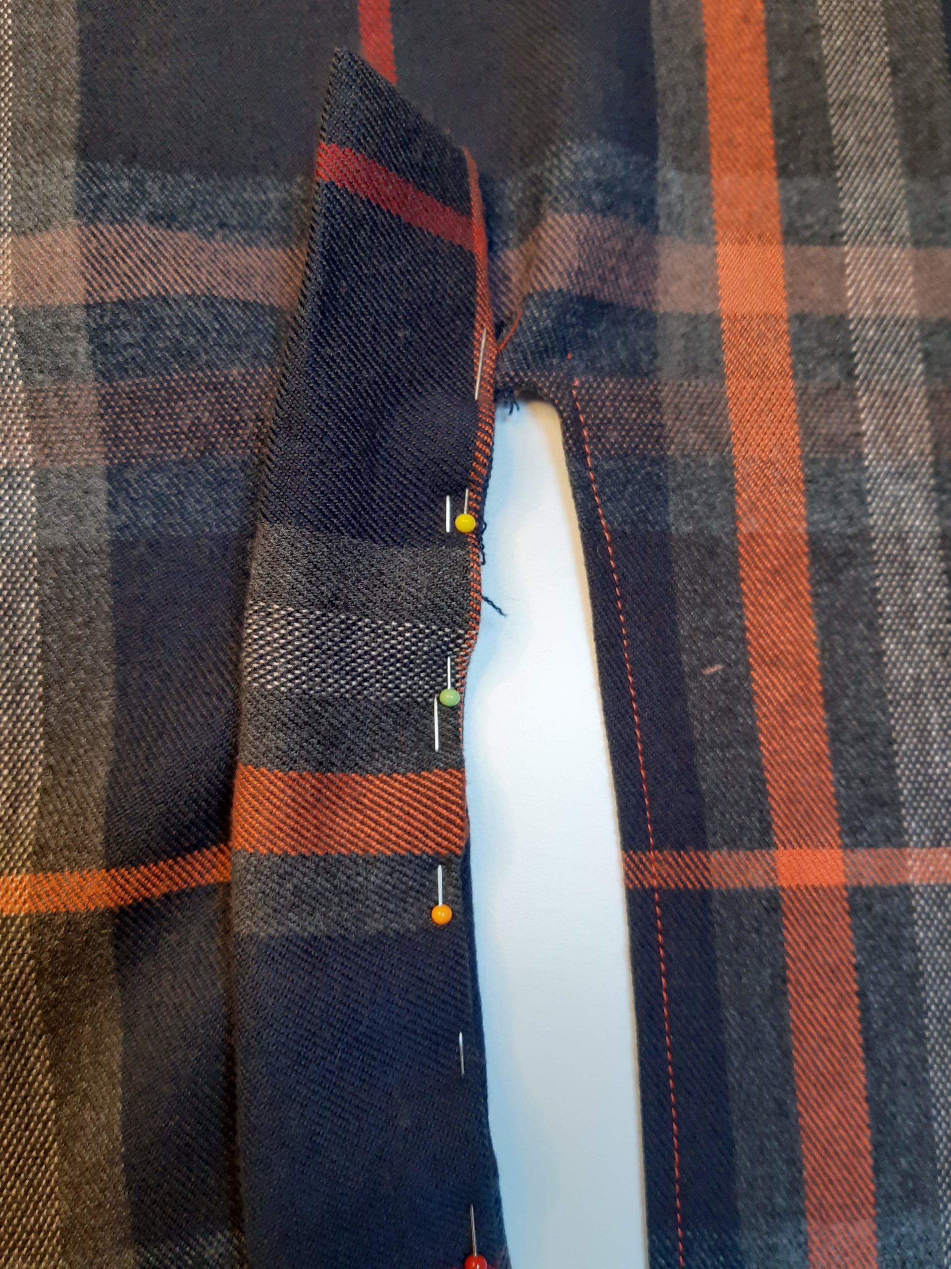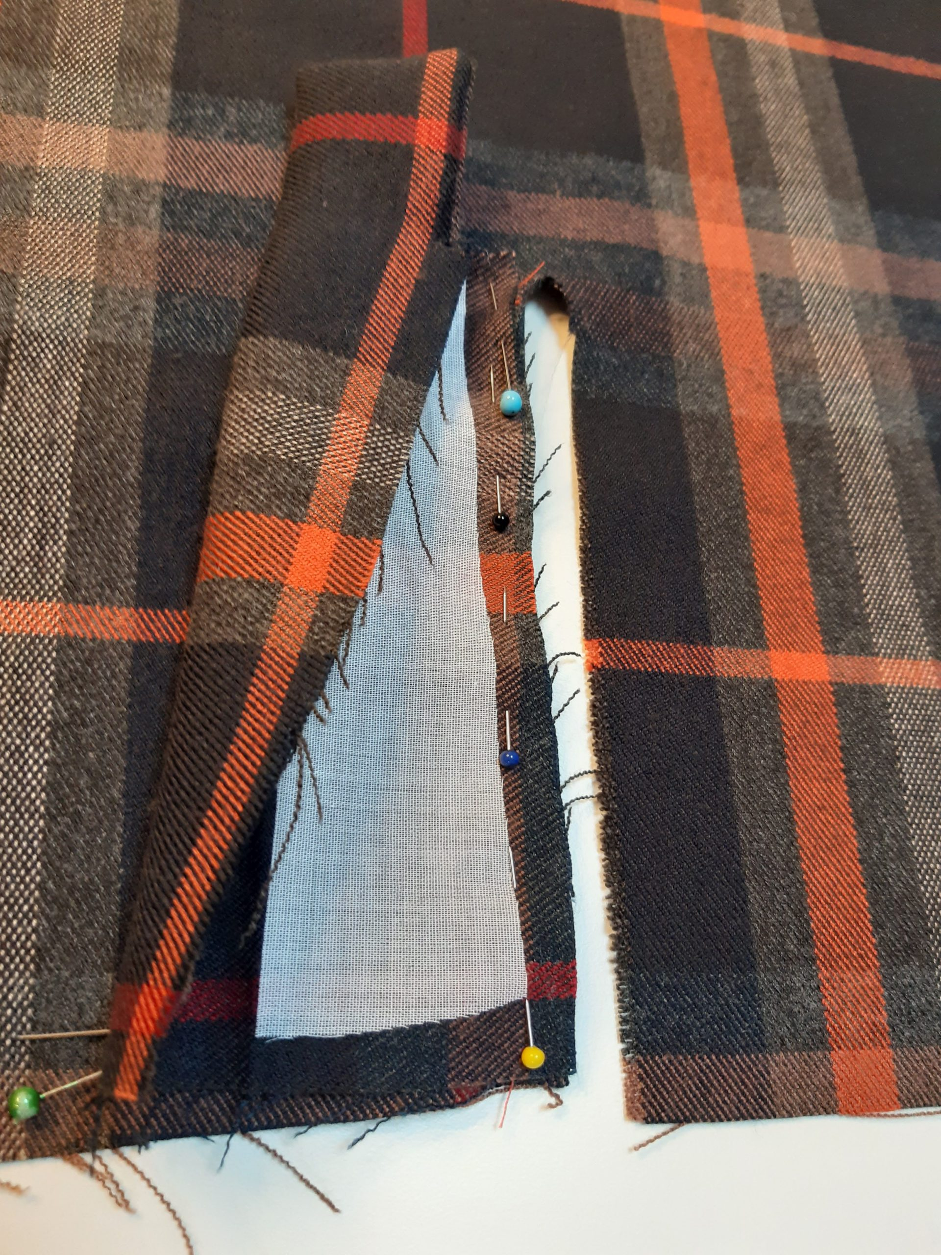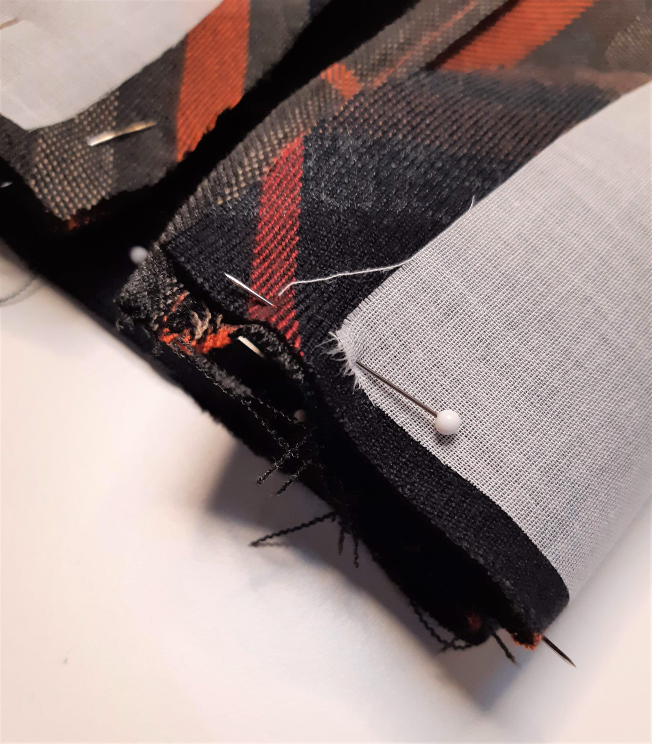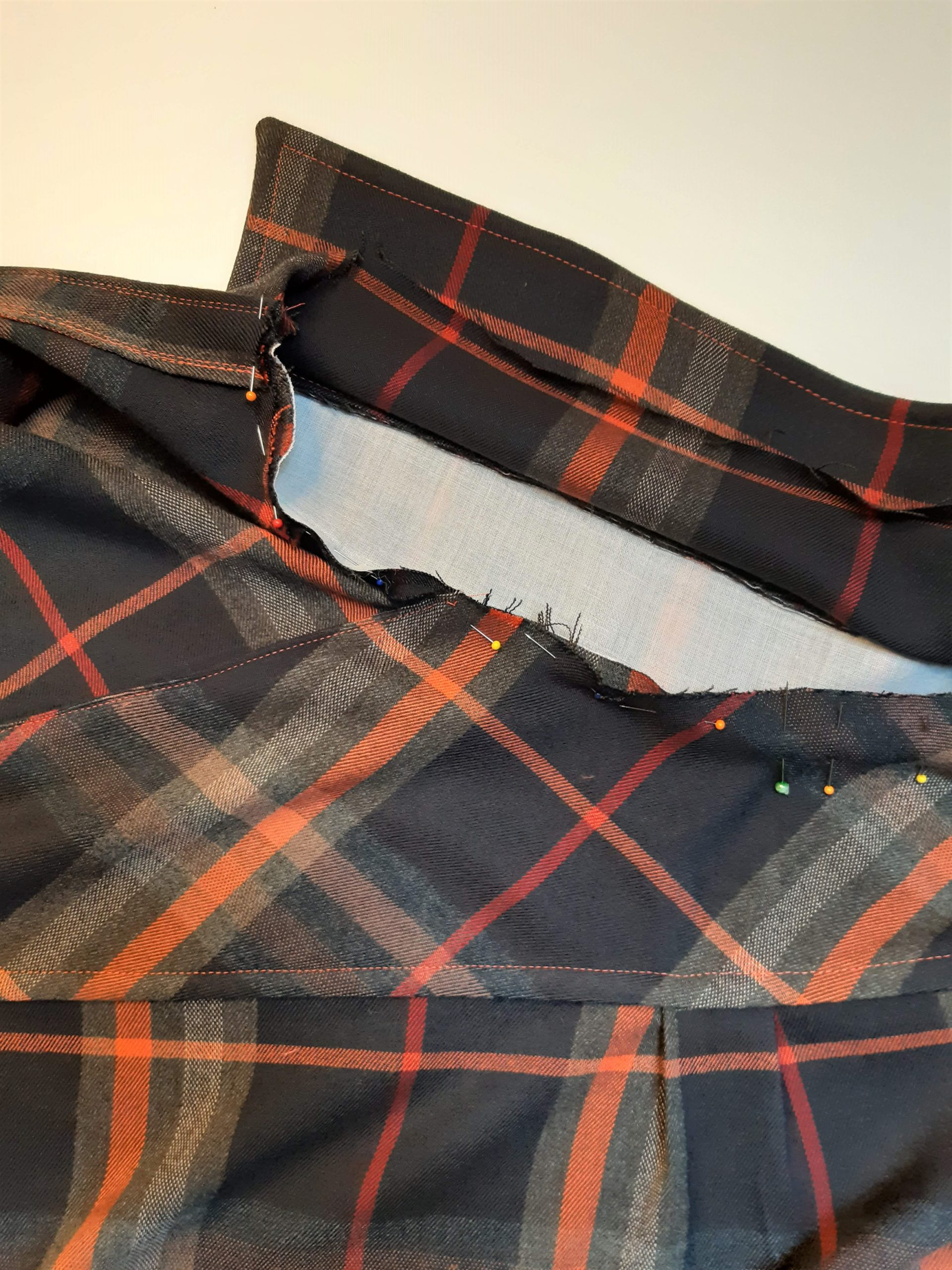 Ich habe mir jeweils nur ein Kragenschnittteil und ein Kragenstegschnittteil verstärkt, da mein Stoff an sich schon etwas dicker ist.