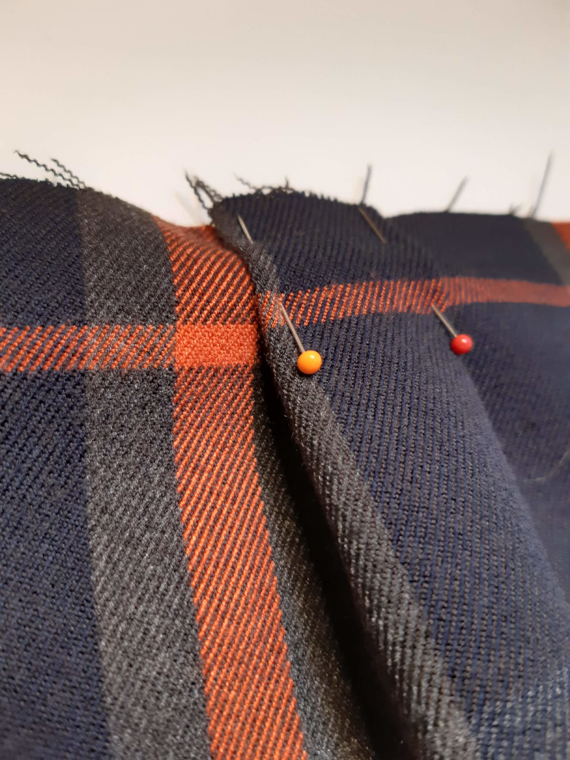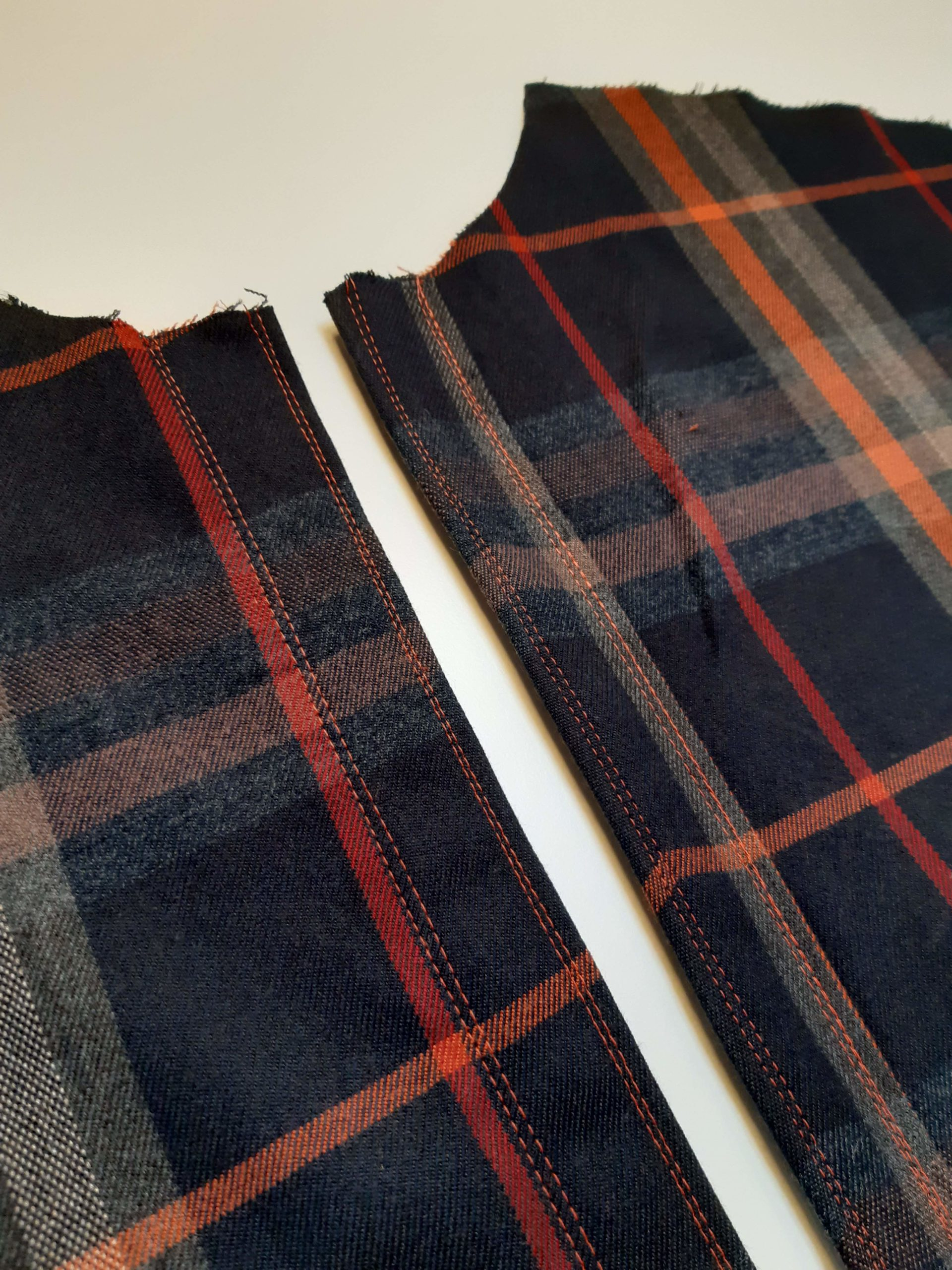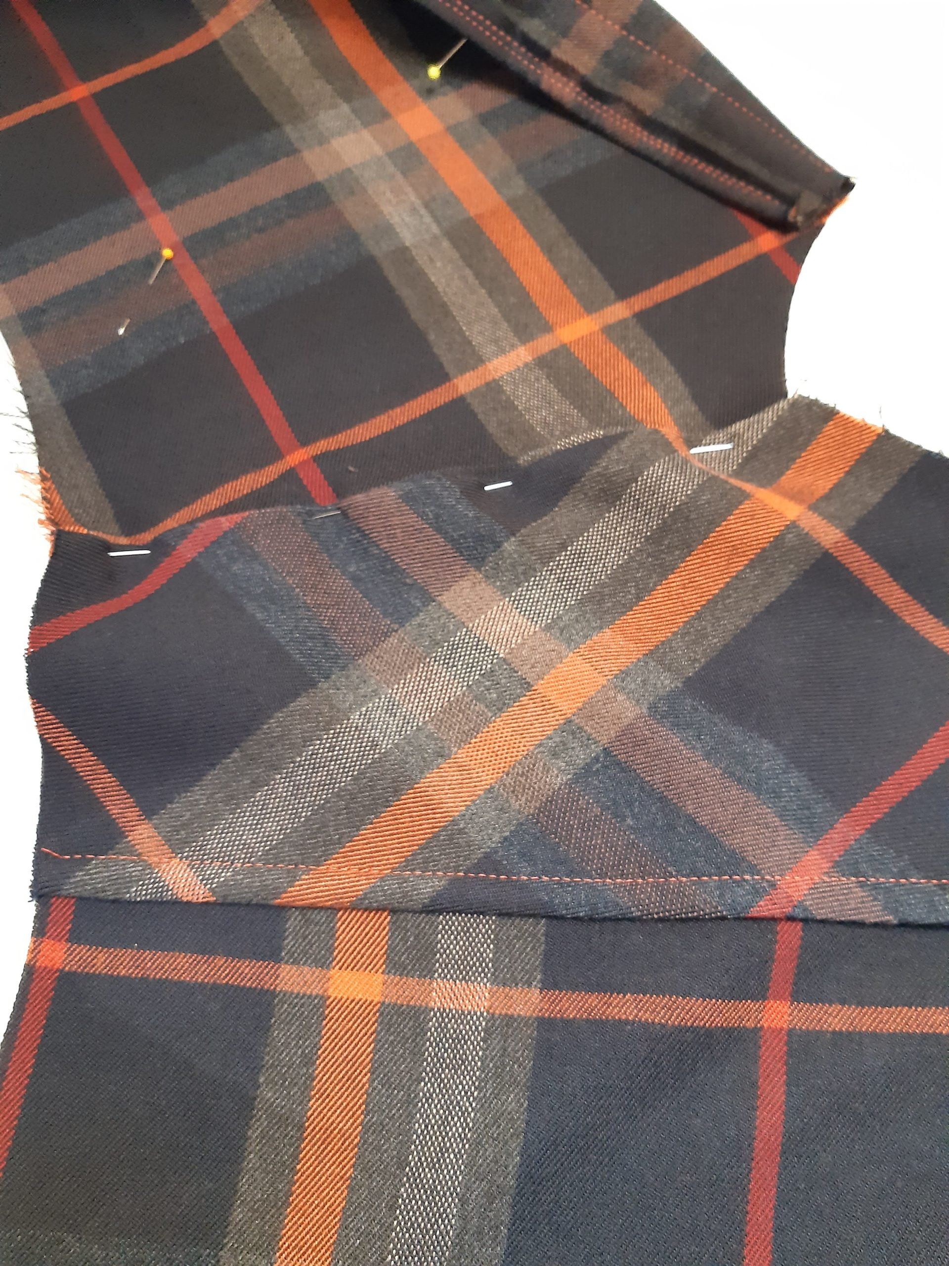 Wenn du für dein Nähprojekt auch einen Karostoff verwendest, nehme dir Zeit für den Zuschnitt und achte auf Längs- und Querstreifen um später einen harmonischen Musterverlauf zu erhalten.