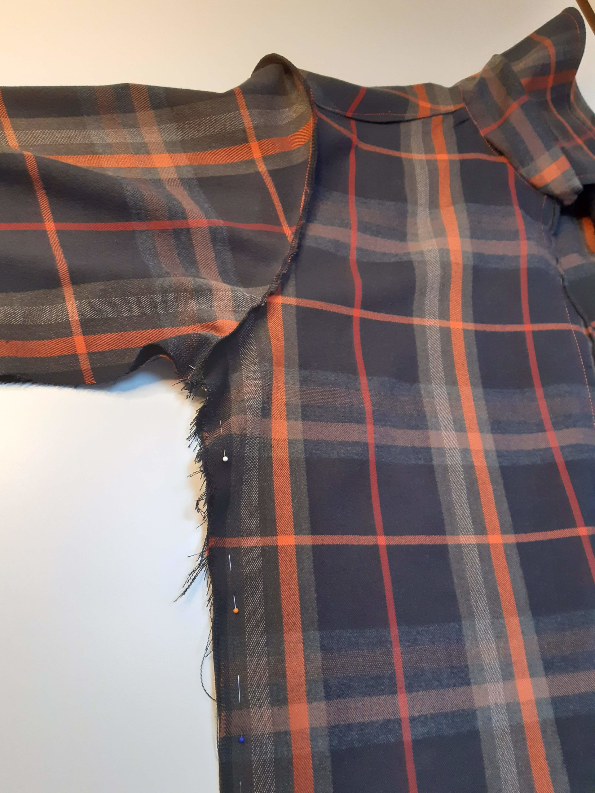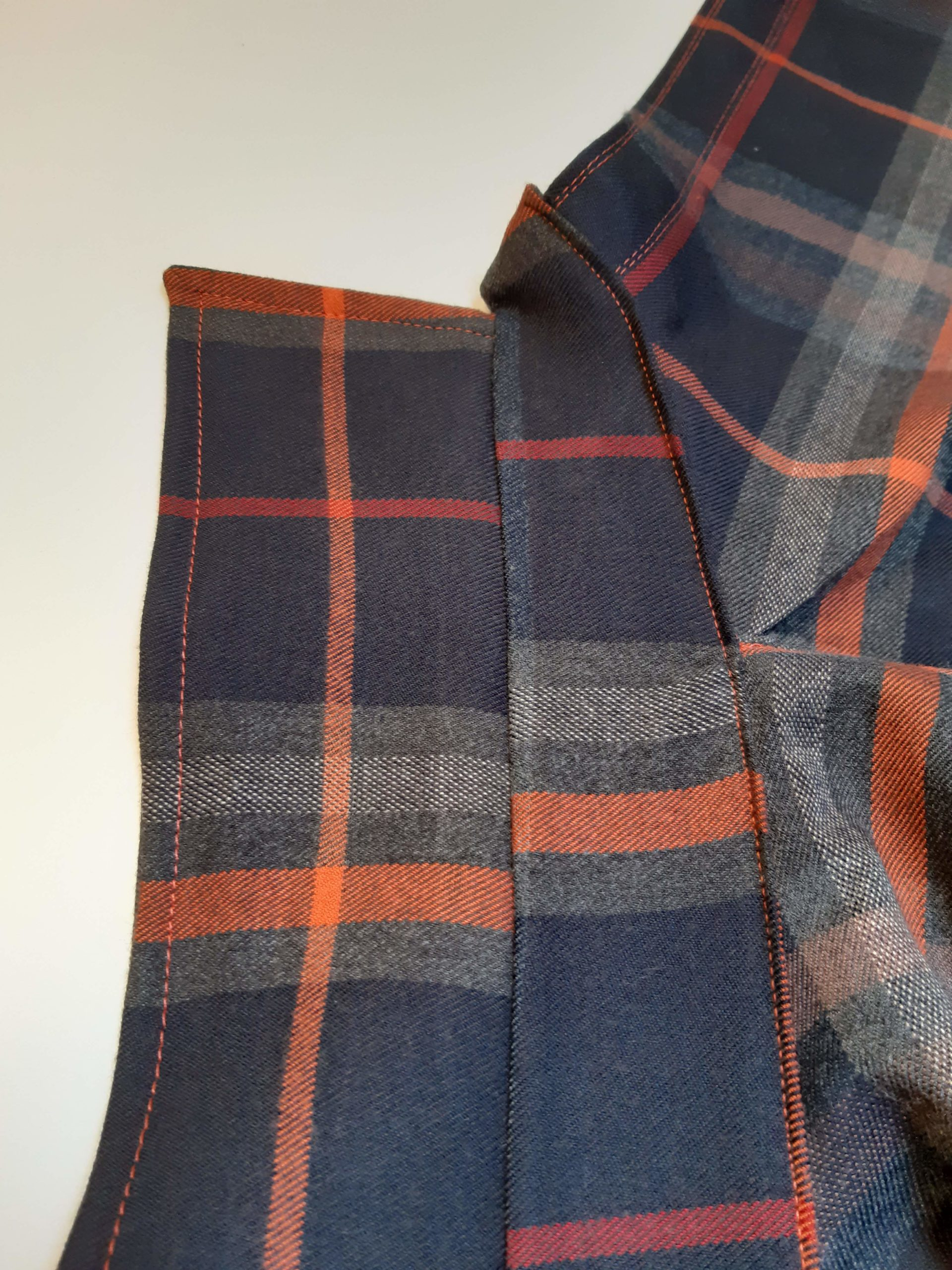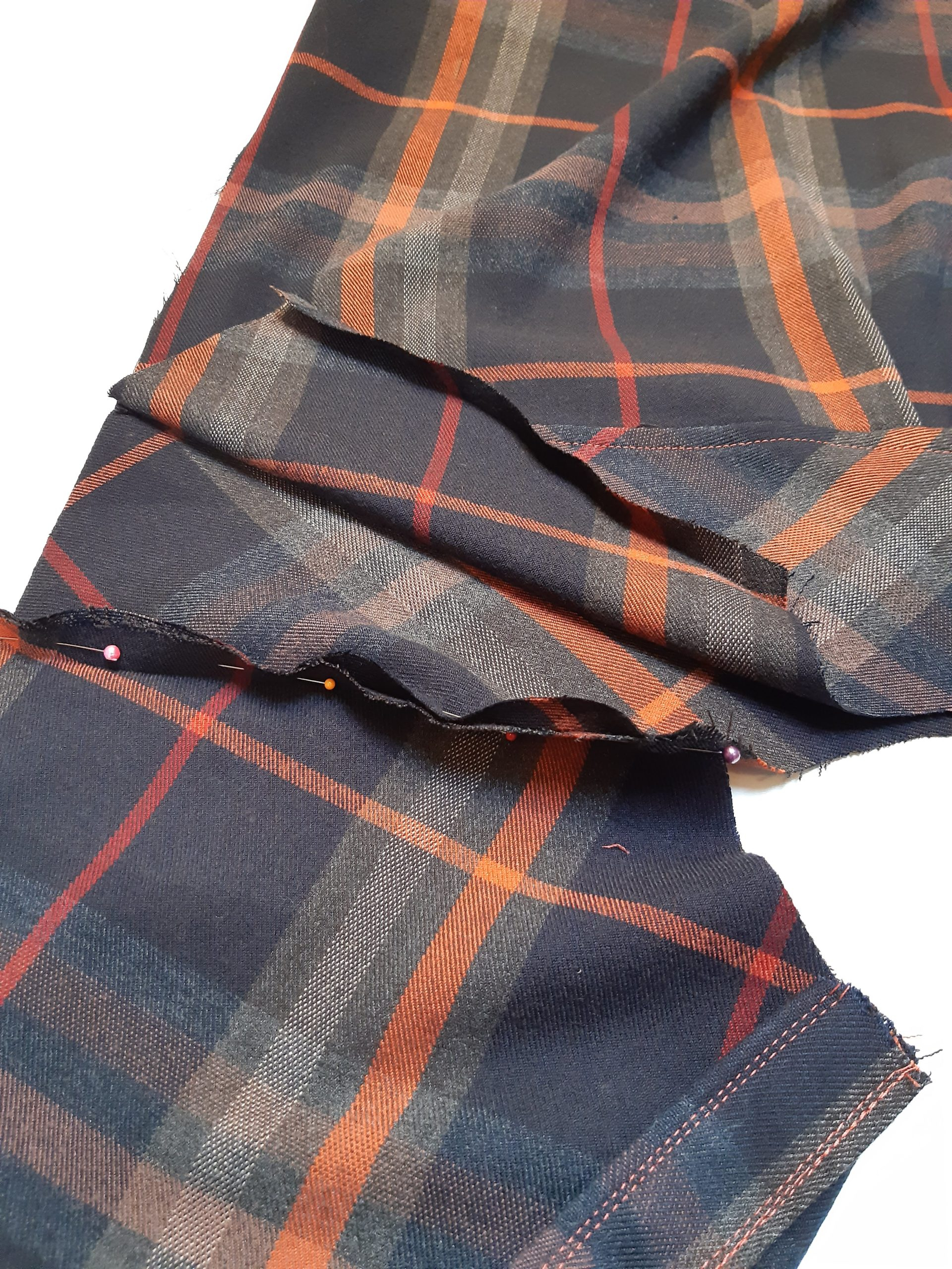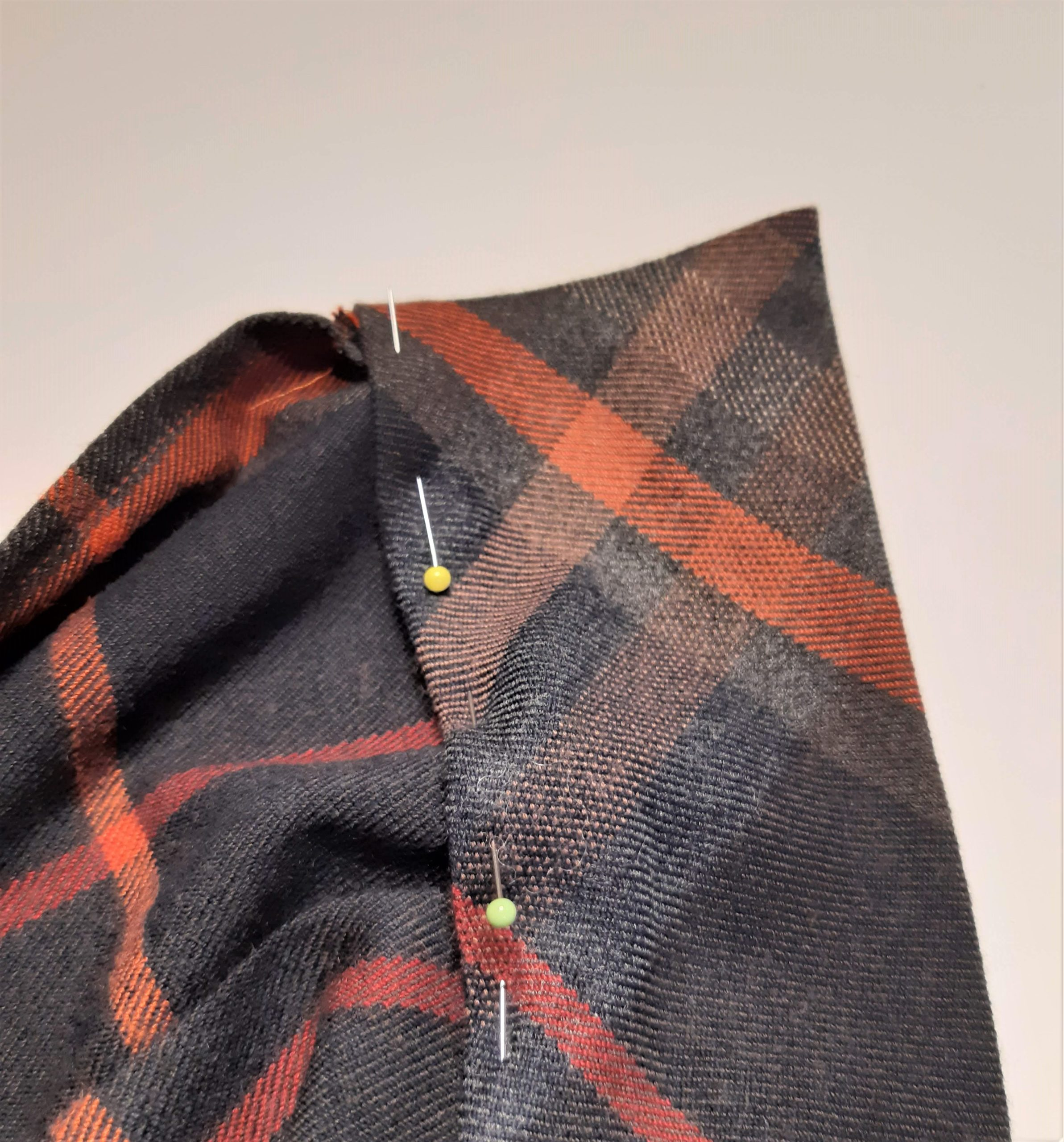 Wenn du für dein Nähprojekt auch einen Karostoff verwendest, nehme dir Zeit für den Zuschnitt und achte auf Längs- und Querstreifen um später einen harmonischen Musterverlauf zu erhalten.