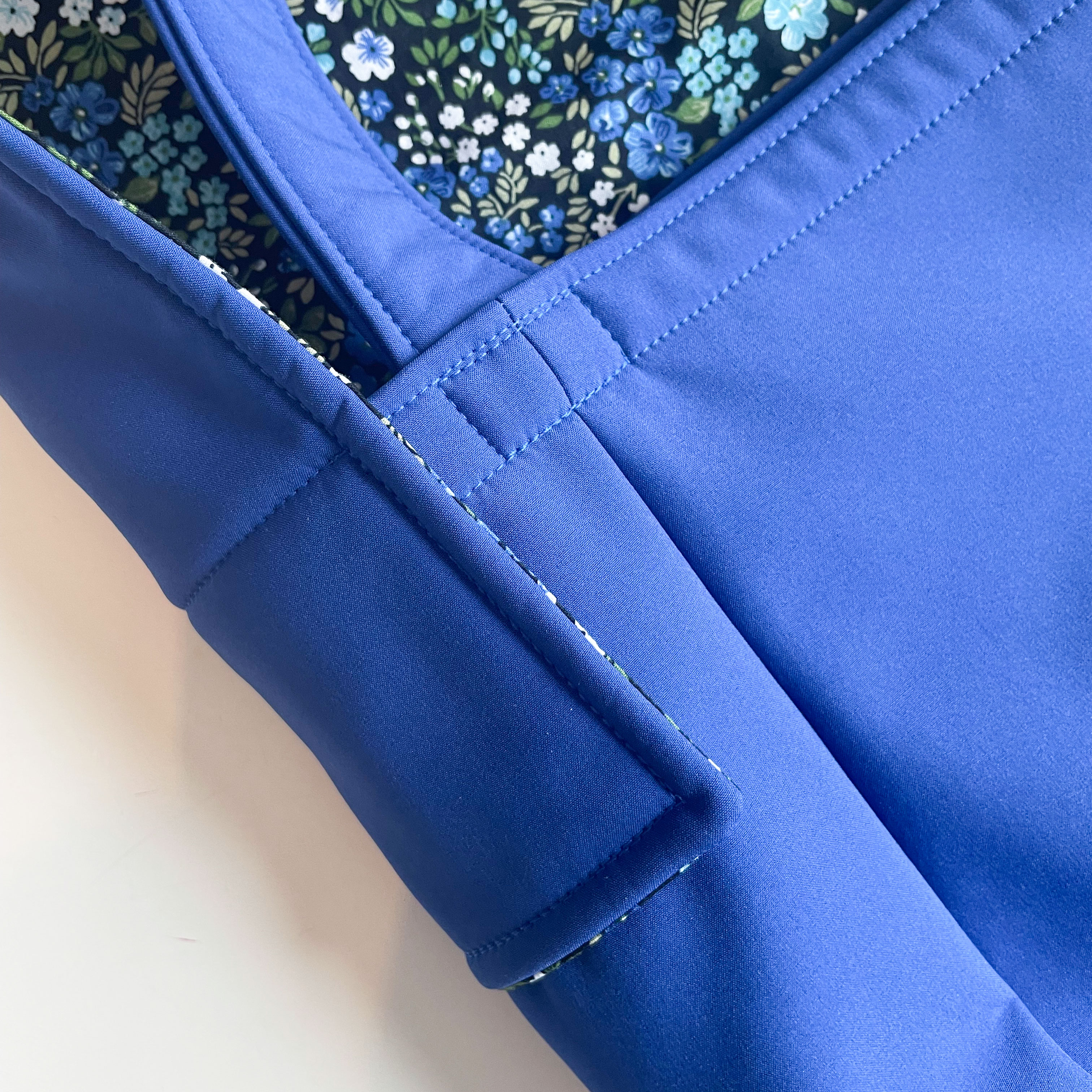 Warum Softshell? Ich nähe die Klappentasche EMILIA aus Softshell, da diese Stoffqualität bereits an sich eine hohe Standfestigkeit mit sich bringt und somit ohne extra Verstärkung in Form einer Einlage auskommt. Zudem hat sie eine schöne Rückseite aus Fleece und die Stoffkanten fransen nicht aus.