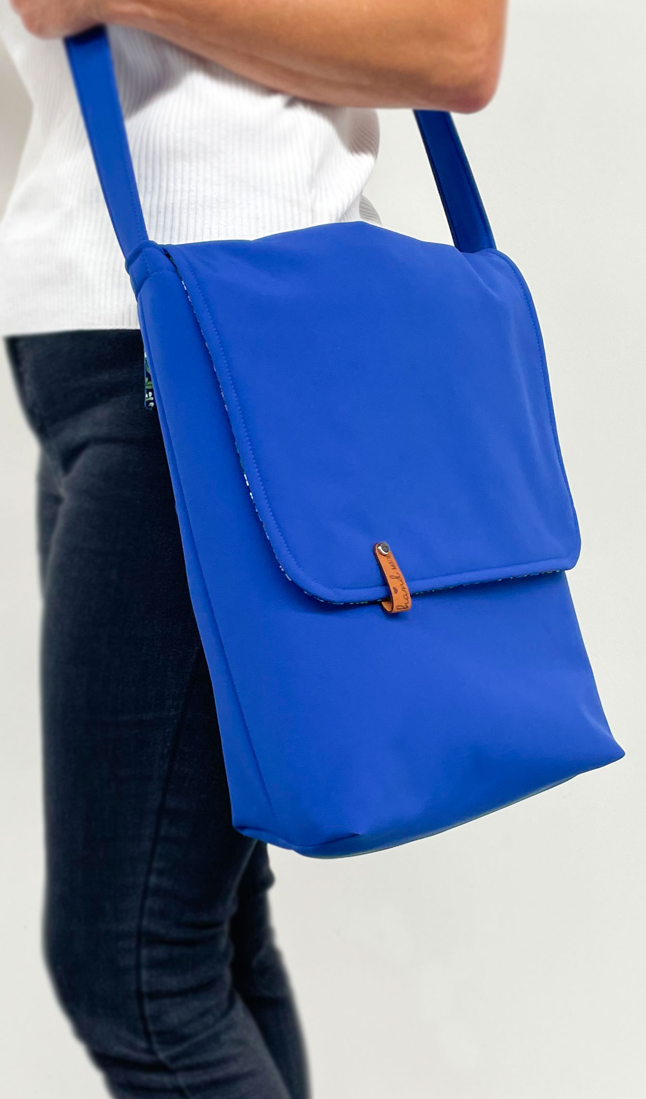 Die Softshell-Klappentasche EMILIA wird in ca. 2 Stunden ohne Innenfutter genäht. Sie hat eine Taschenklappe, die ohne einen weiteren Verschluss auskommt und eine kleine Innentasche, die mit Klettverschluss genäht wird. Die Schulterriemen dieser Tasche werden einfach im Innenteil der Tasche angenäht.