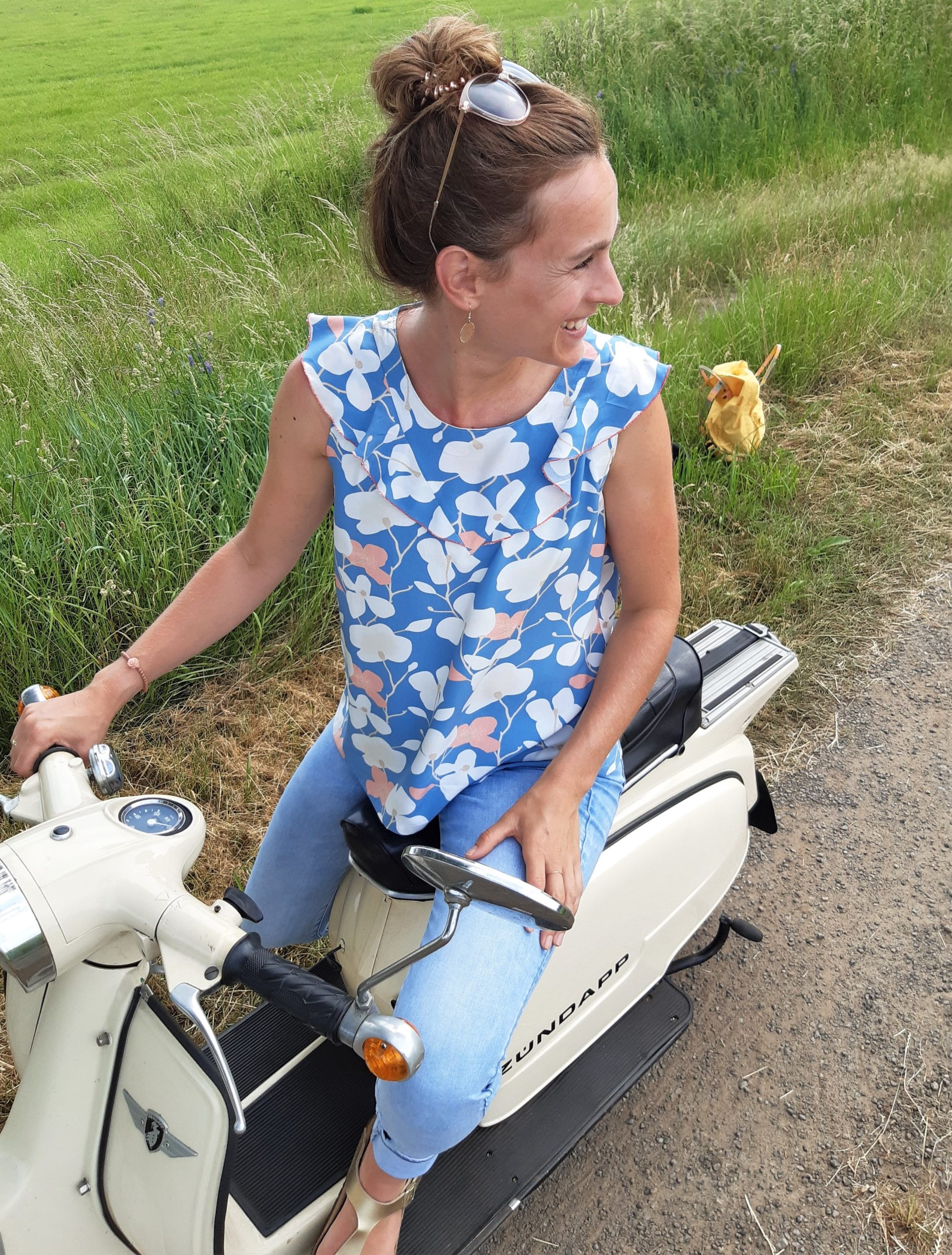 In meinem Nähbeispiel nähe ich die Karla als Top aus einem Viskosestoff in Größe 38.