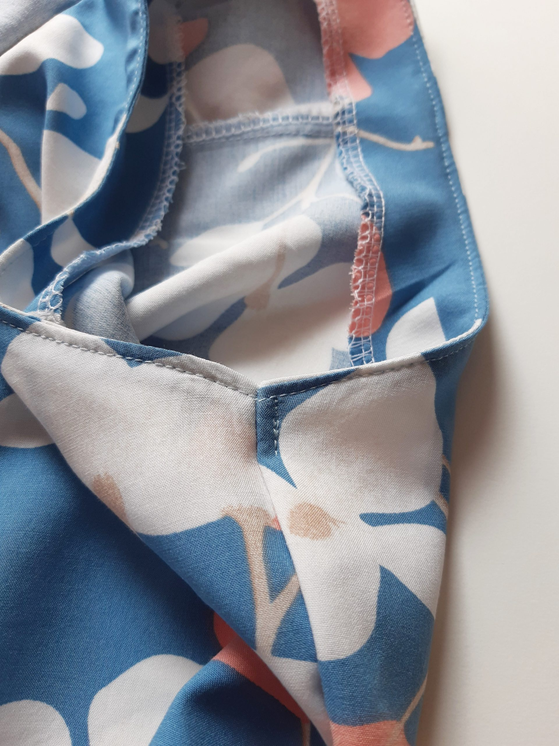 3. Falte die Nahtzugaben unter den Armen Richtung Rückteil und nähe diese ein kleines Stück ab.