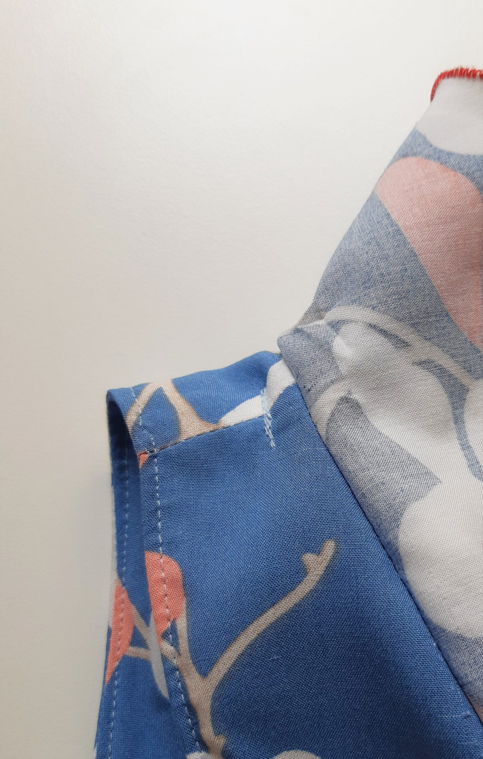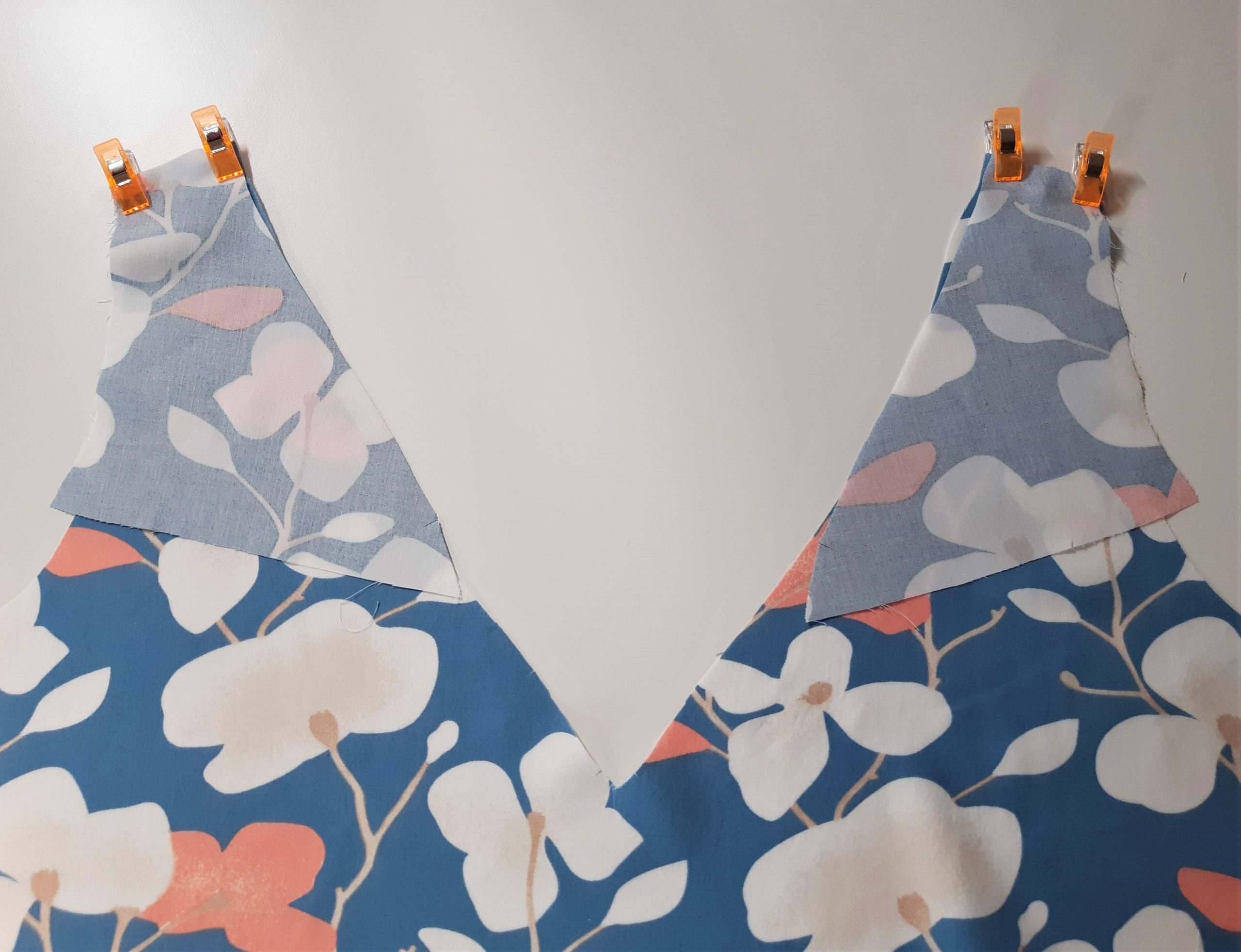 2. Lege den vorderen Beleg rechts auf rechts auf den hinteren Beleg und schließe die Schulternähte.