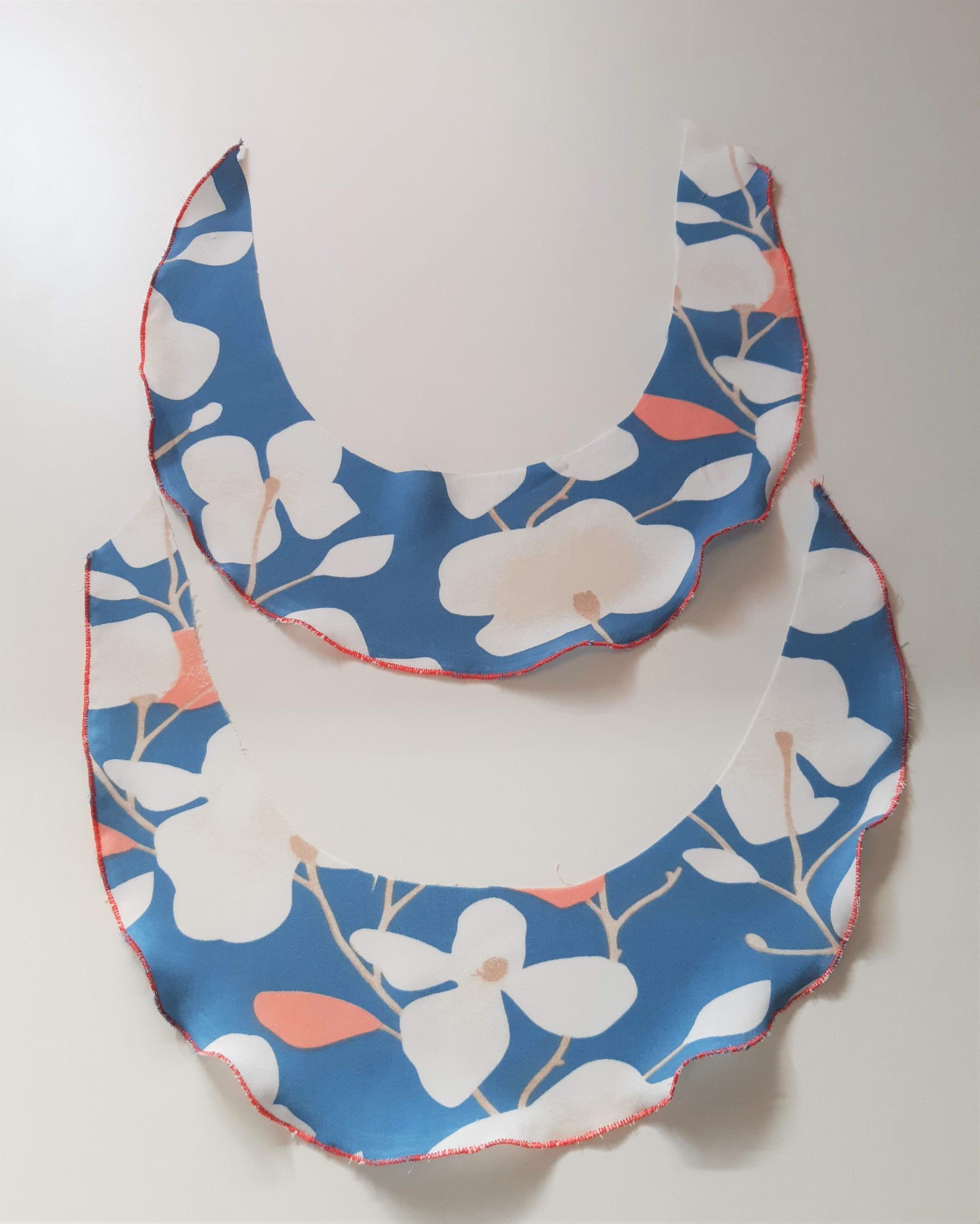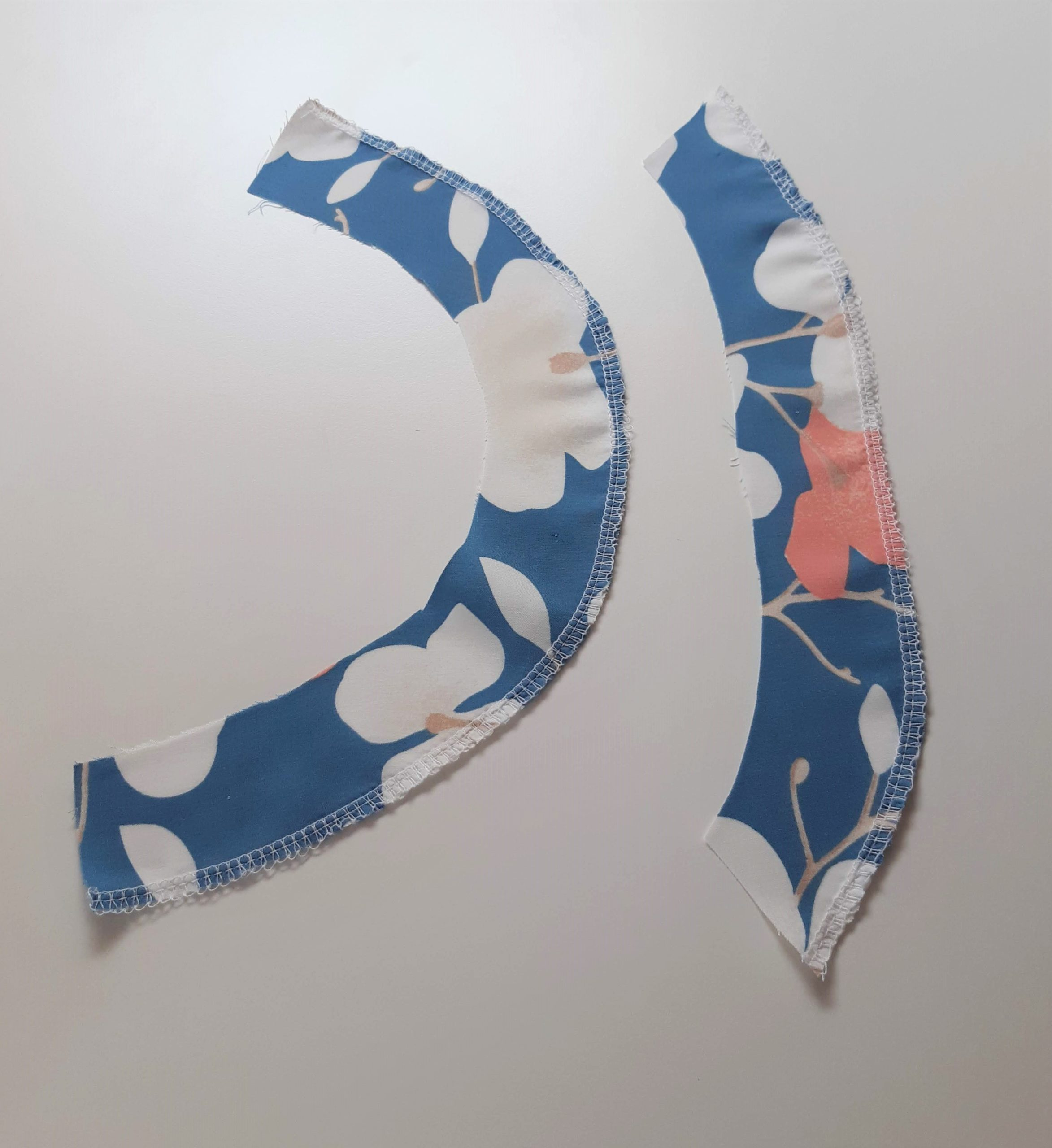 1. Versäubere die Außenkanten der Belege mit einem Versäuberungsstich einer Nähmaschine oder mit einer Overlock.