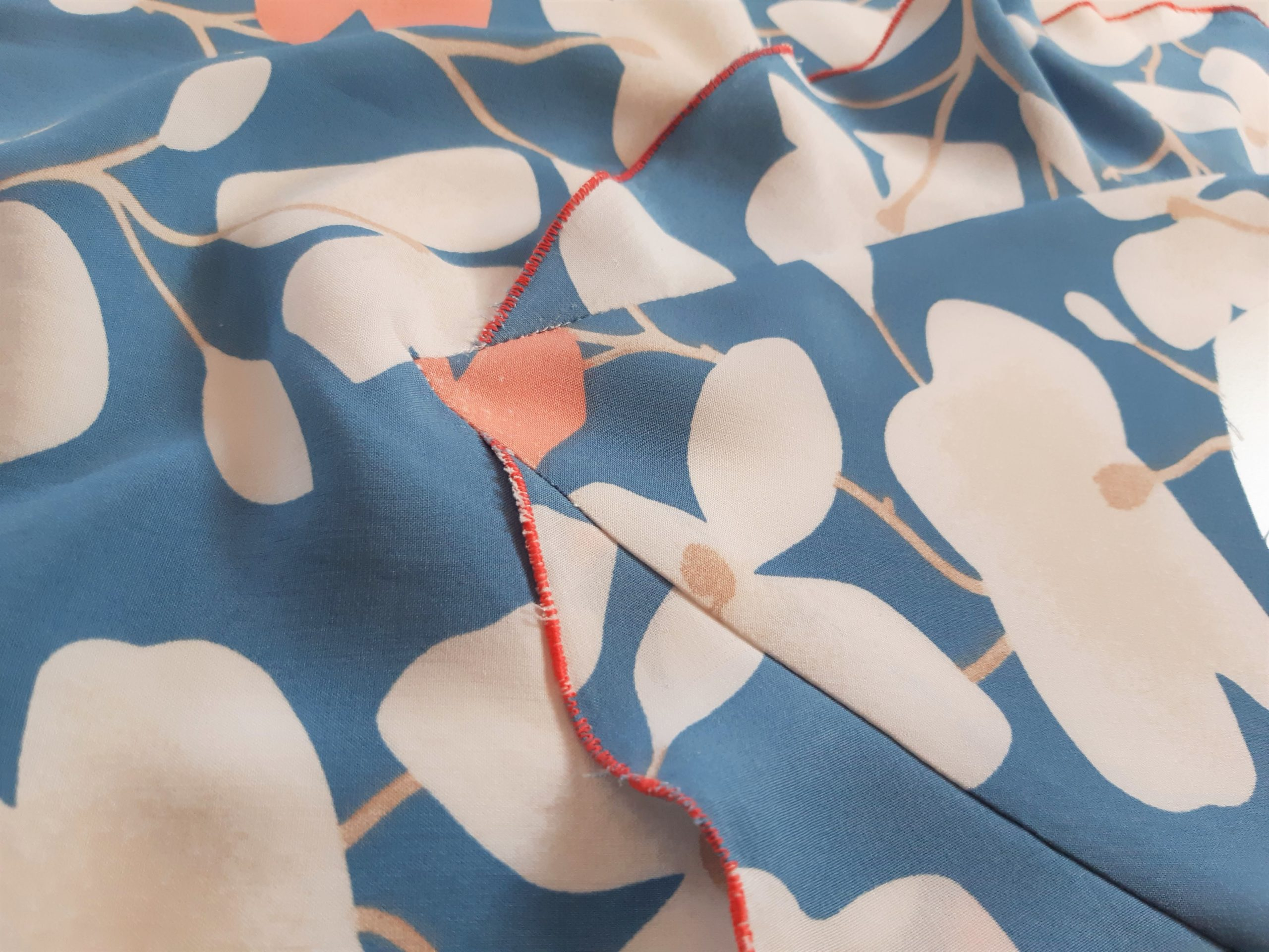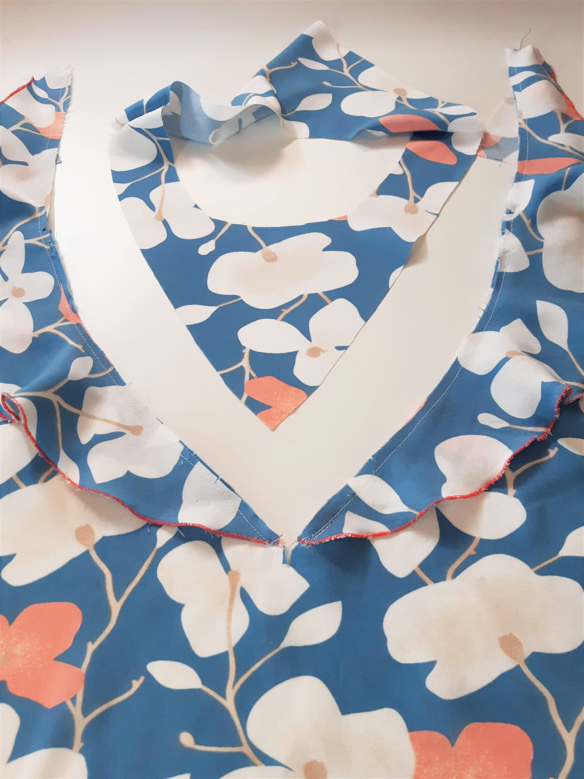Der Ausschnitt kann noch knappkantig von rechts abgesteppt werden.