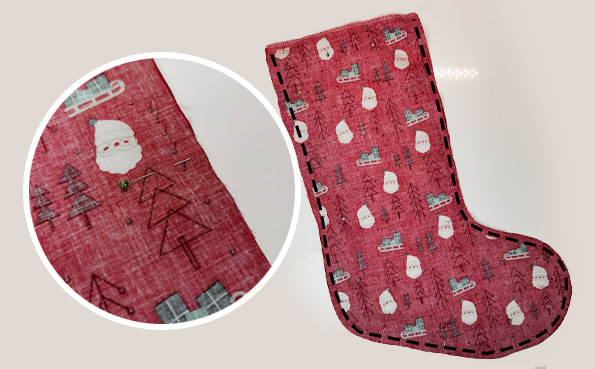 Jetzt legst Du die beide Sockenteile rechts auf rechts aufeinander, steckst alles fest und nähst die Socke zusammen. Anschließend die Rundungen schön ausarbeiten und abschließend einmal bügeln.