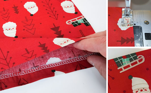 Zum Schluss musst Du nur noch den Saum nähen. Hierzu legst Du den Saum etwa 1-2 cm nach innen, bügelst diesen Falz einmal und nähst abschließend die Saumnaht (Steppstich) auf der rechten Seite des Stoffes – fertig!