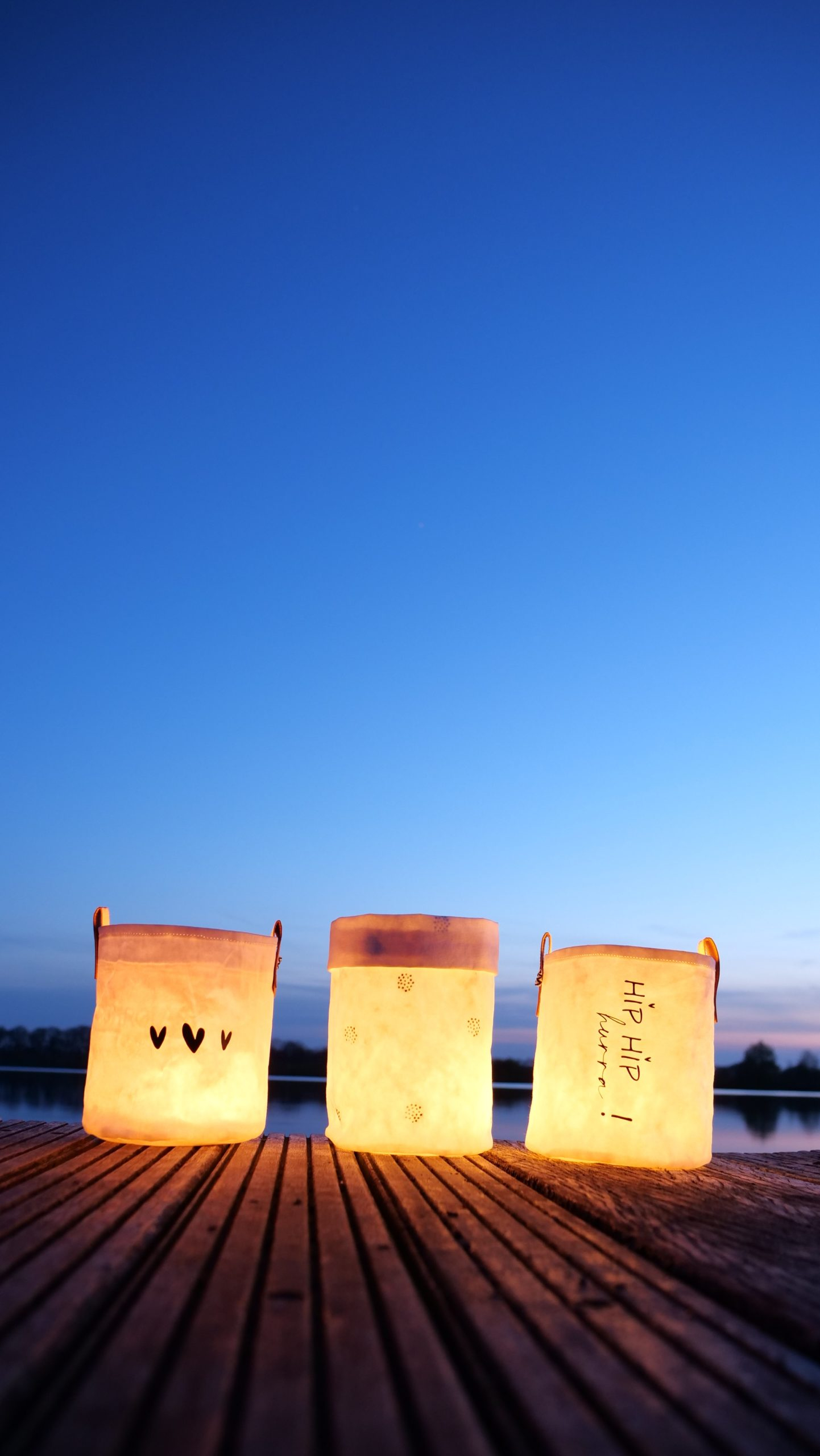 Wenn du dein Windlicht mit einem Plot versehen möchtest, empfehle ich Bügelfolie zu verwenden und den Plot vor dem Wasserbad aufzubügeln. Alternativ kannst du auch wasserfeste Stempelfarbe oder Stifte verwenden.