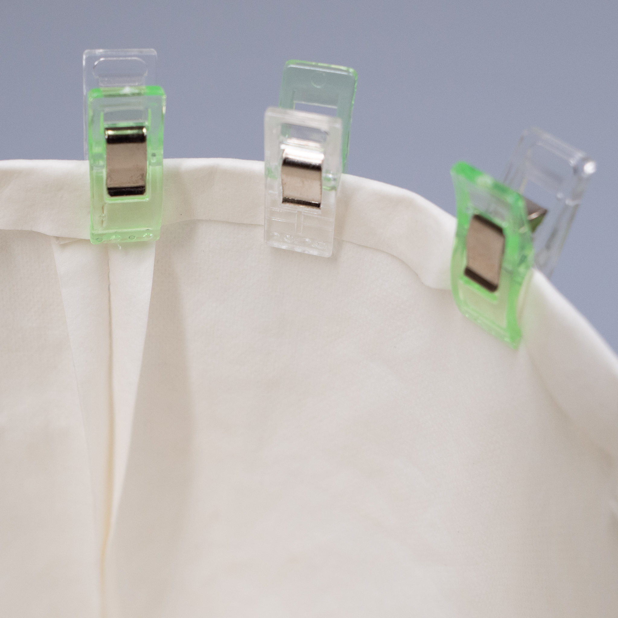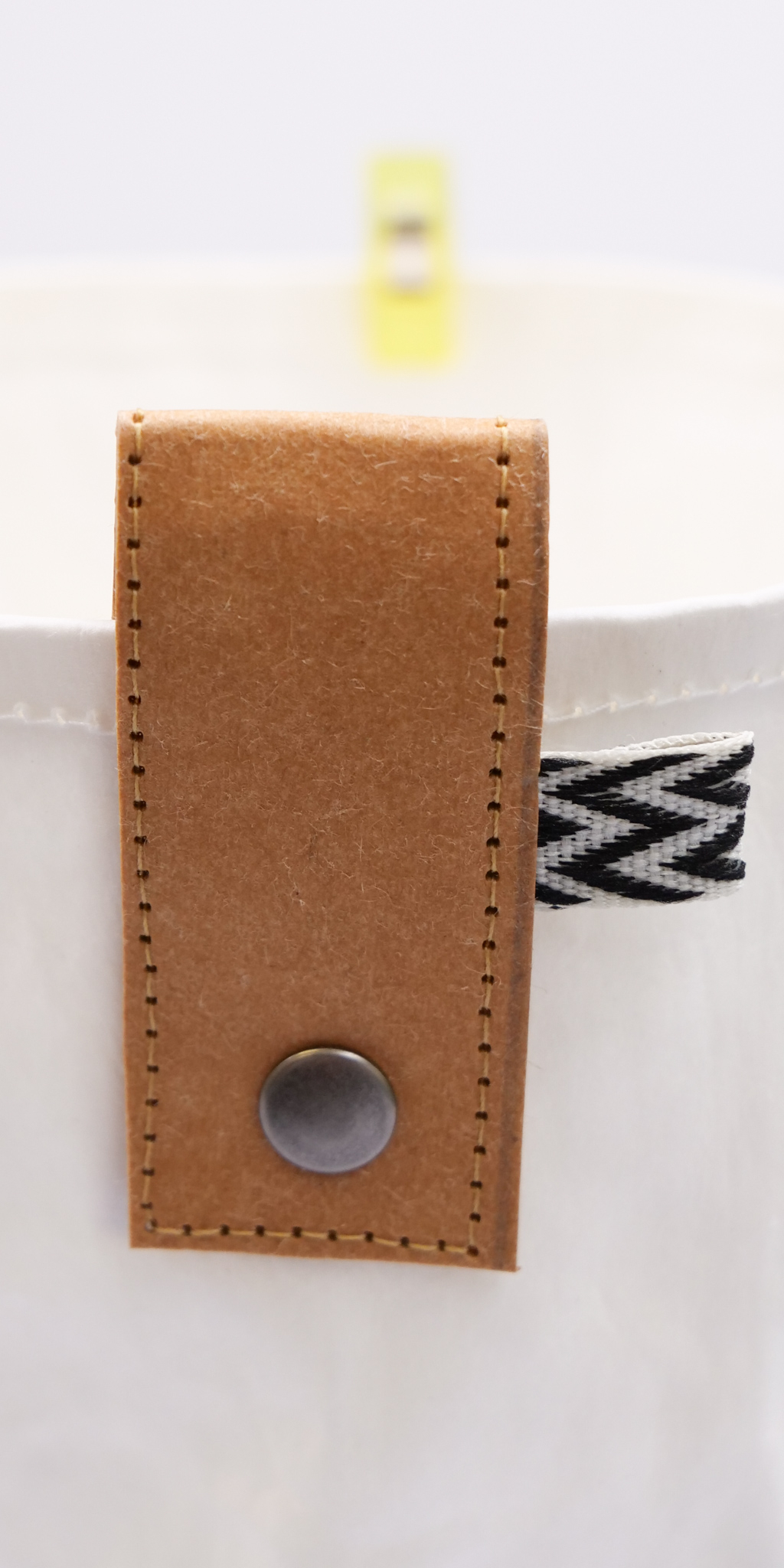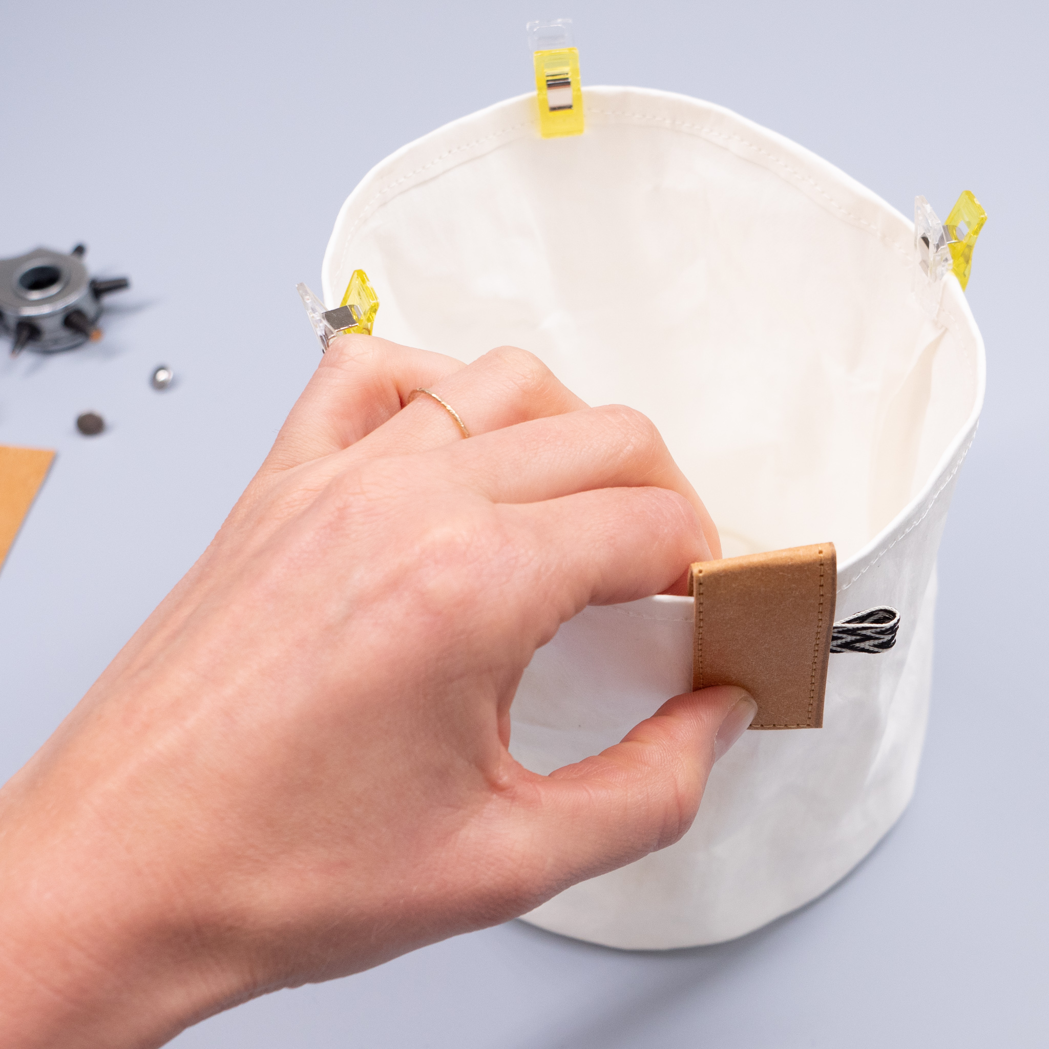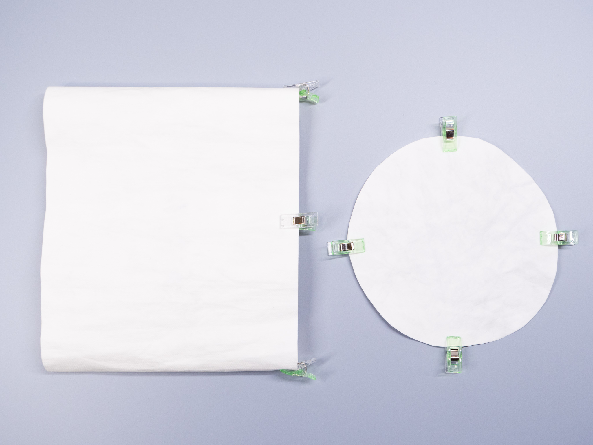 In meiner Anleitung habe ich das Seitenteil mit einer Höhe von 20 cm zugeschnitten. Den Zuschnitt habe ich vor dem Vernähen in ein Wasserbad gelegt und ordentlich geknetet, bis sie schön weich waren. Anschließend habe ich die Schnittteile mit einem Trockentuch abgetupft und im feuchten Zustand vernäht. Diese Vorbereitung lohnt sich auf jeden Fall, da sich das SnapPap so ganz wunderbar verarbeiten lässt.