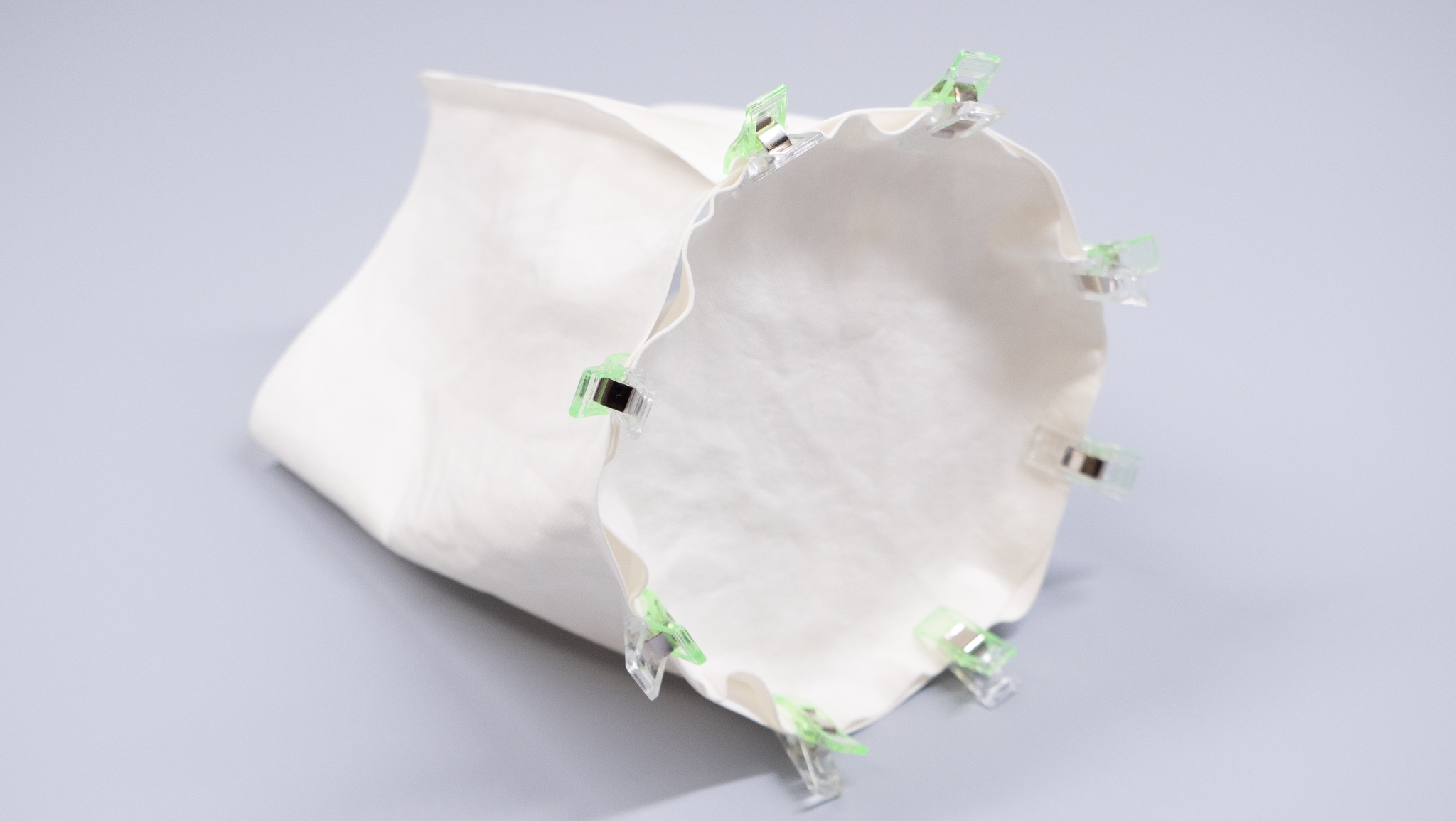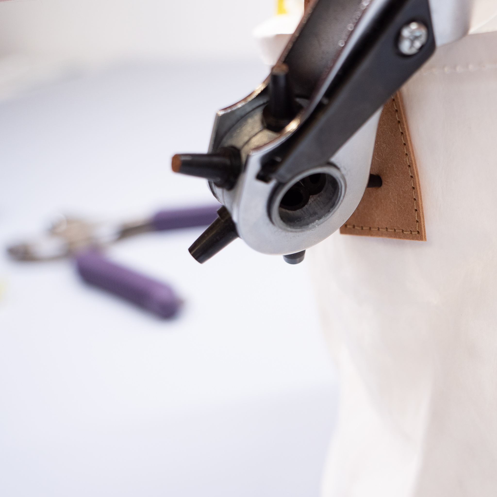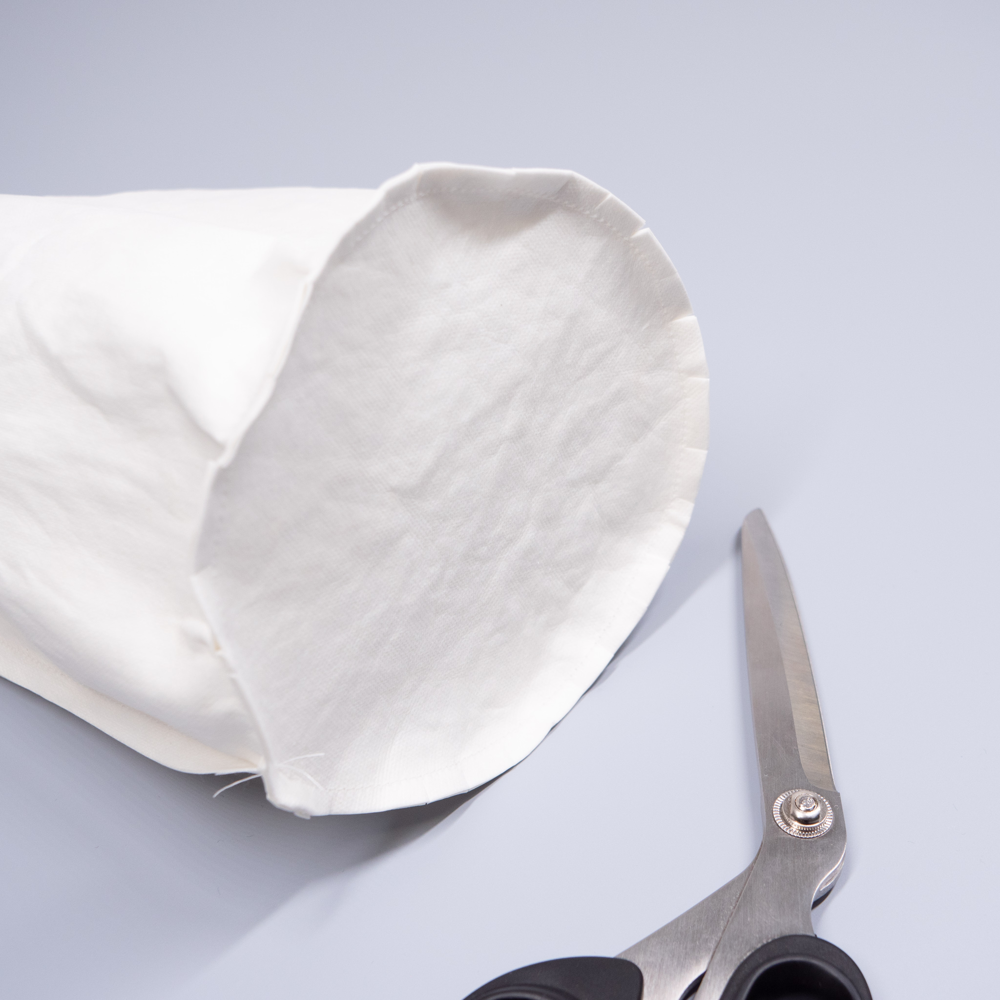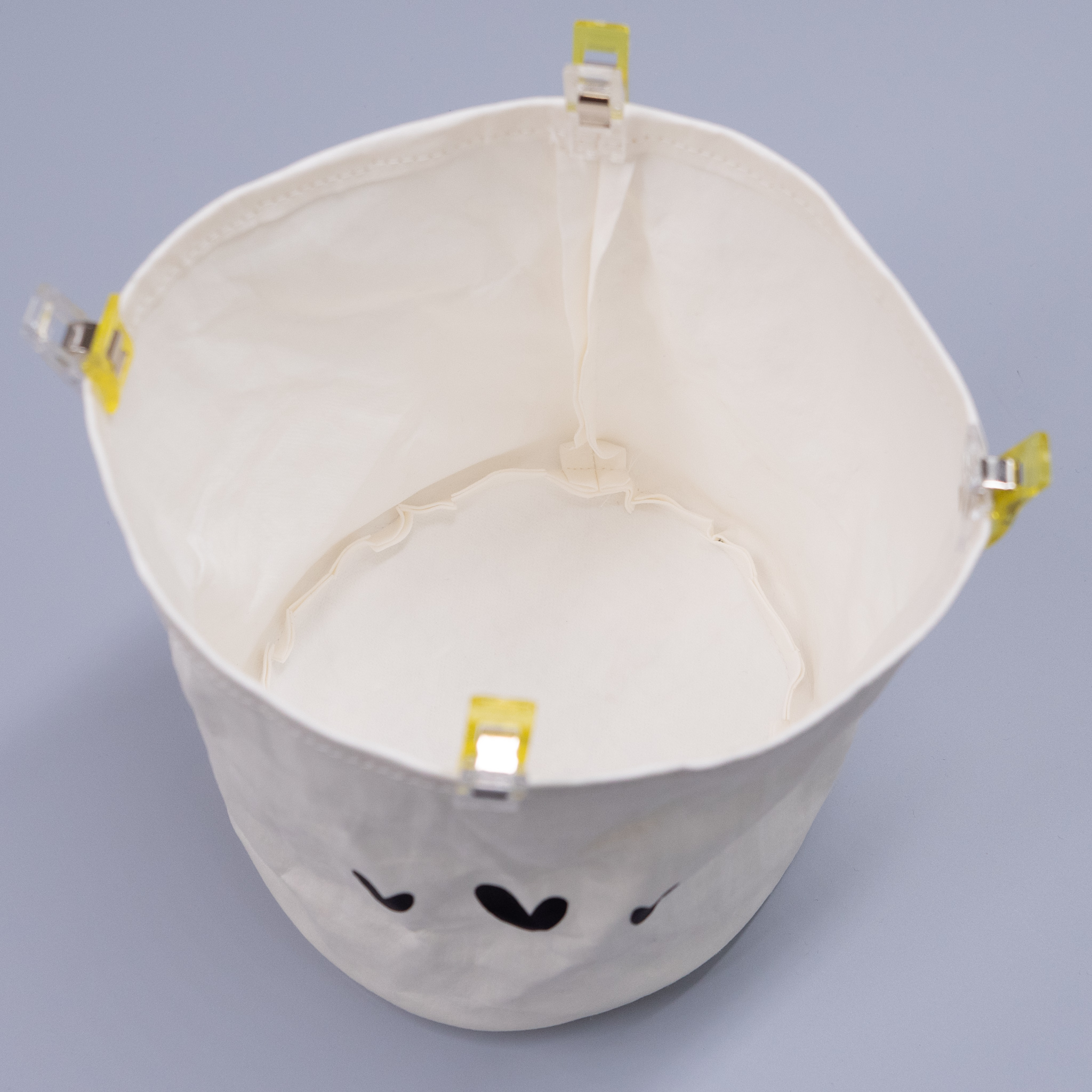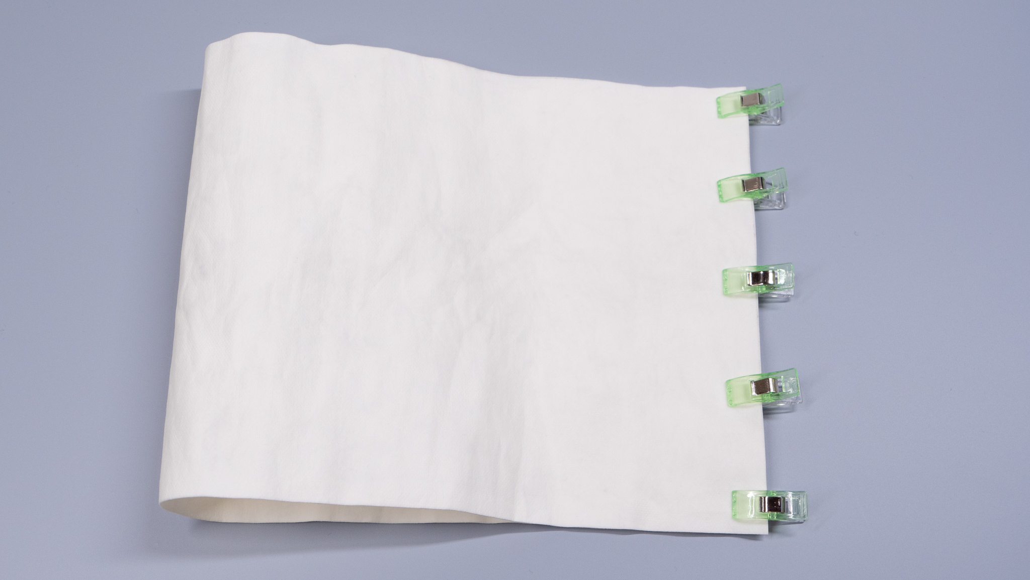 In meiner Anleitung habe ich das Seitenteil mit einer Höhe von 20 cm zugeschnitten. Den Zuschnitt habe ich vor dem Vernähen in ein Wasserbad gelegt und ordentlich geknetet, bis sie schön weich waren. Anschließend habe ich die Schnittteile mit einem Trockentuch abgetupft und im feuchten Zustand vernäht. Diese Vorbereitung lohnt sich auf jeden Fall, da sich das SnapPap so ganz wunderbar verarbeiten lässt.
