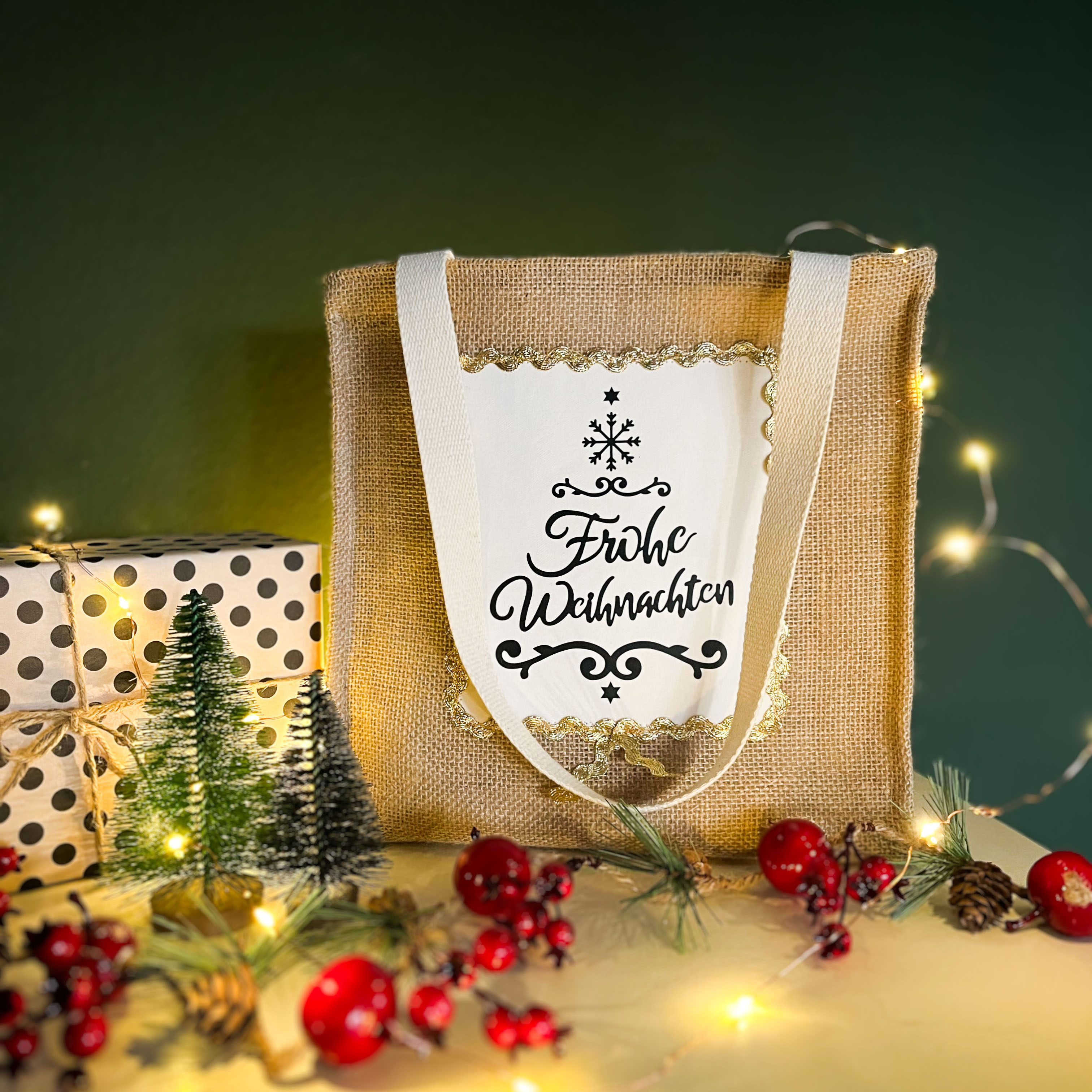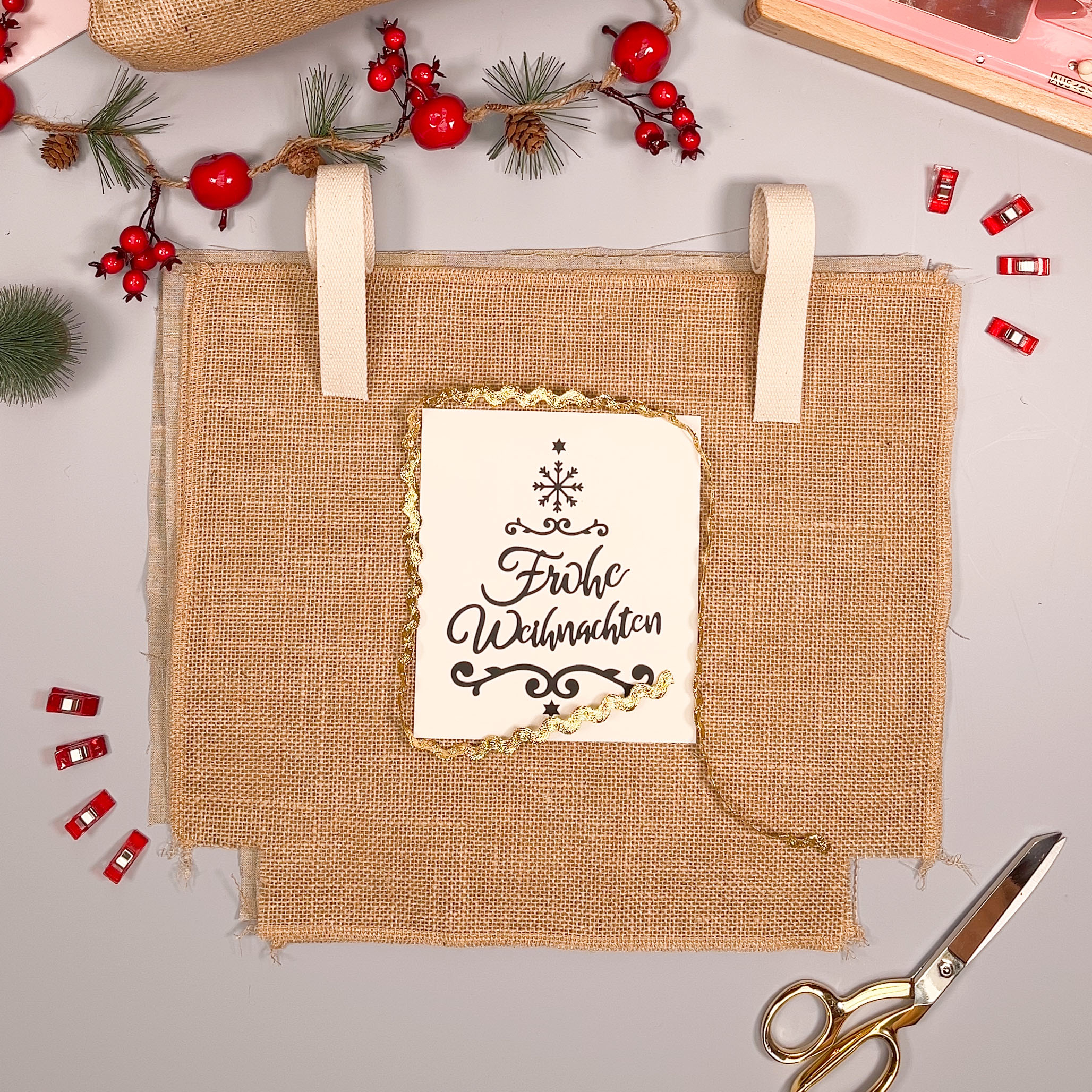In dieser Nähanleitung zeigen wir dir Schritt für Schritt, wie du eine festliche Weihnachtstasche aus robustem Jutestoff und edlem Leinen nähst – perfekt geeignet, um Weihnachtsgeschenke stilvoll zu verpacken oder sicher zu transportieren. Die Kombination der natürlichen Materialien verleiht der Tasche einen warmen, rustikalen Charme, der wunderbar zur Adventszeit passt.
